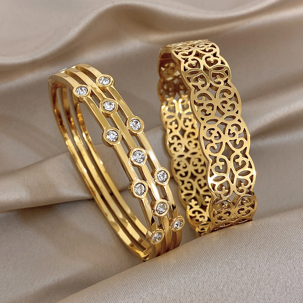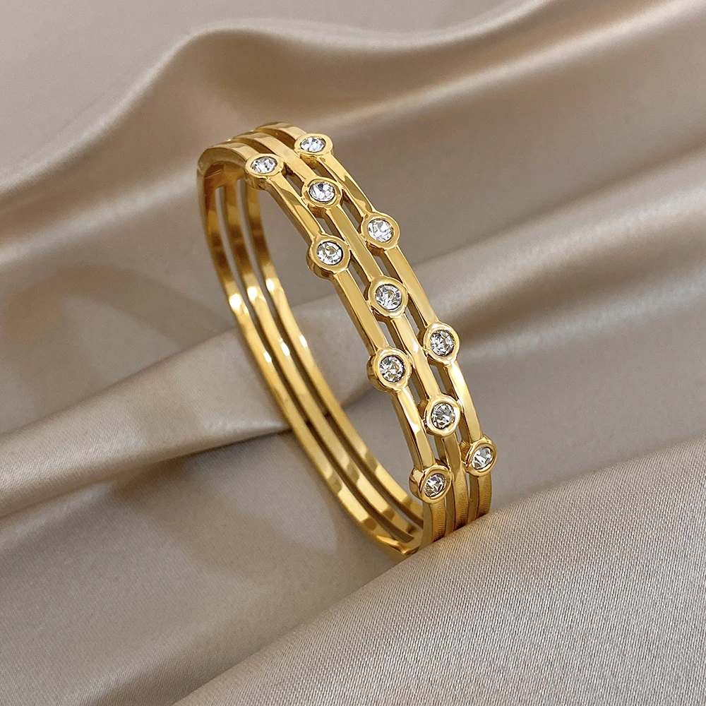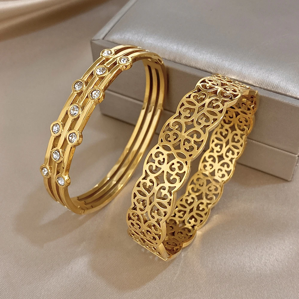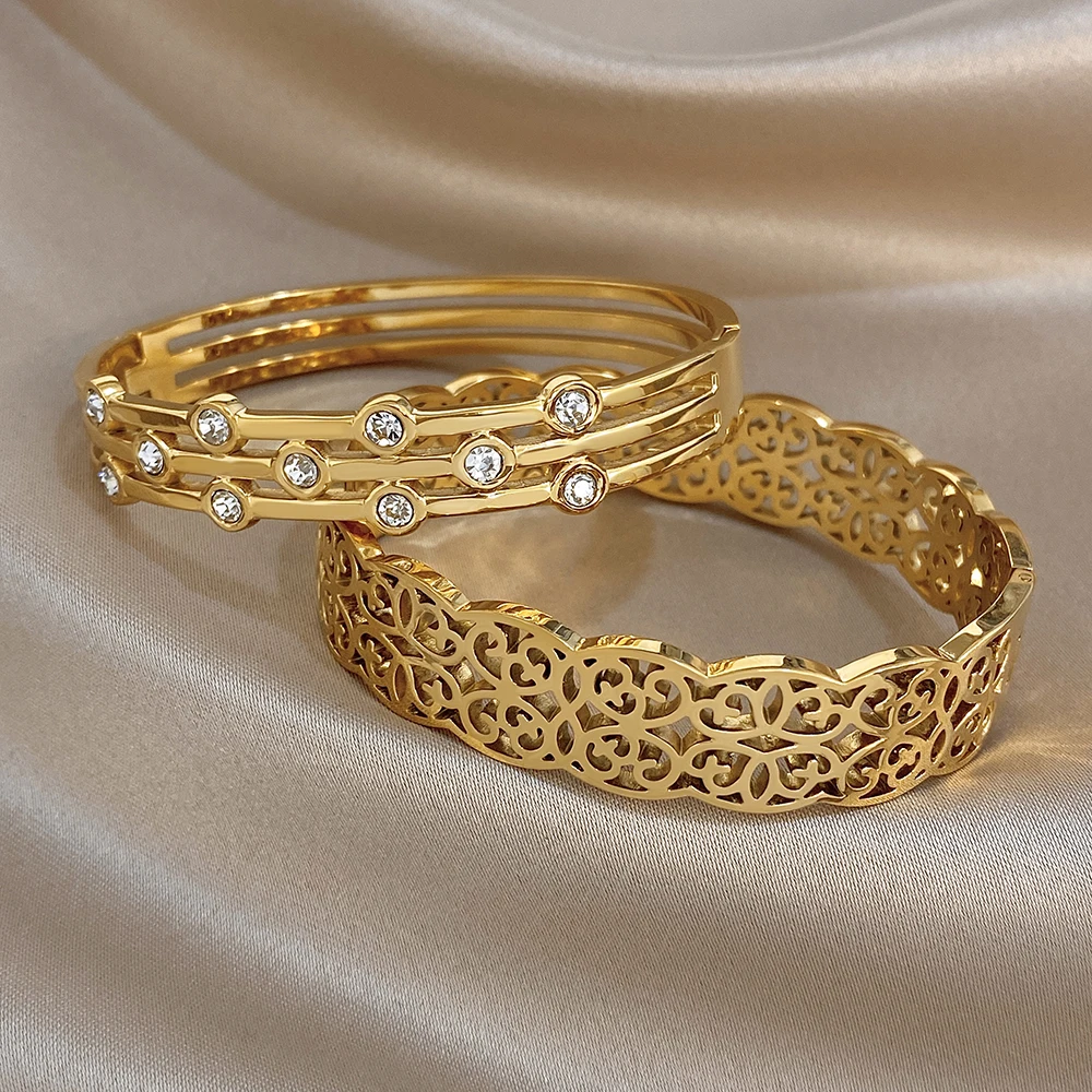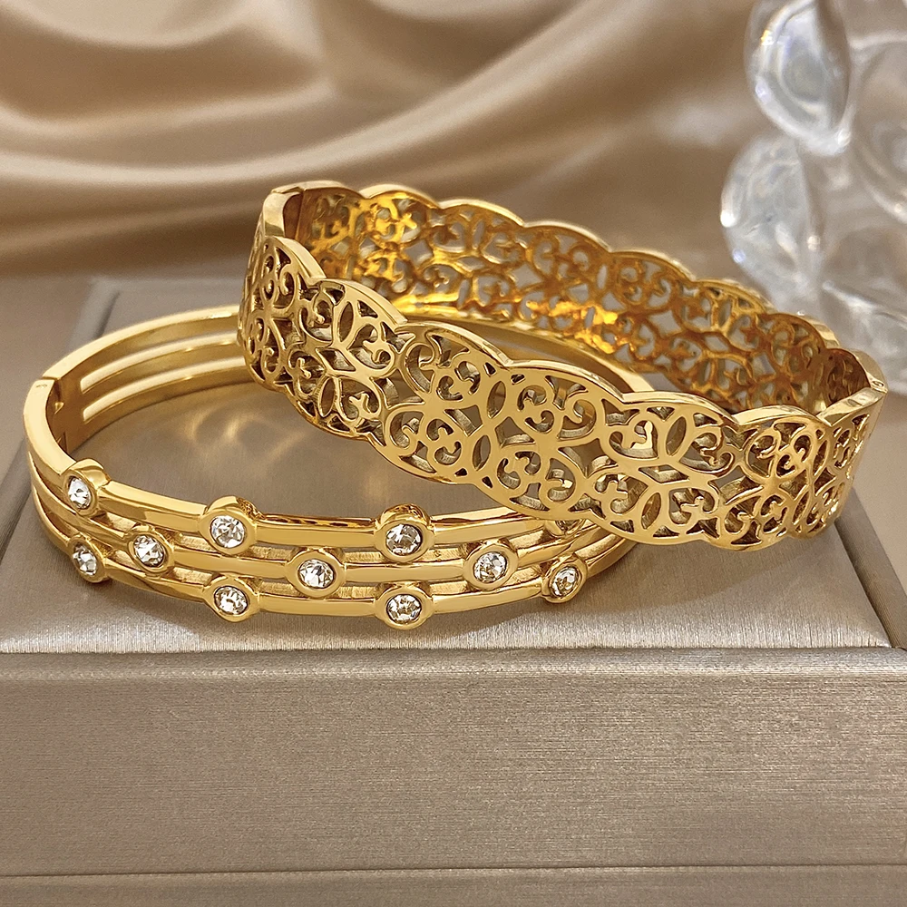 Greatera Double-track Chain Point Rhinestone Bracelet Retro Cursive Texture Hollowed-out Cuff Bangles Women Men New Style 2026