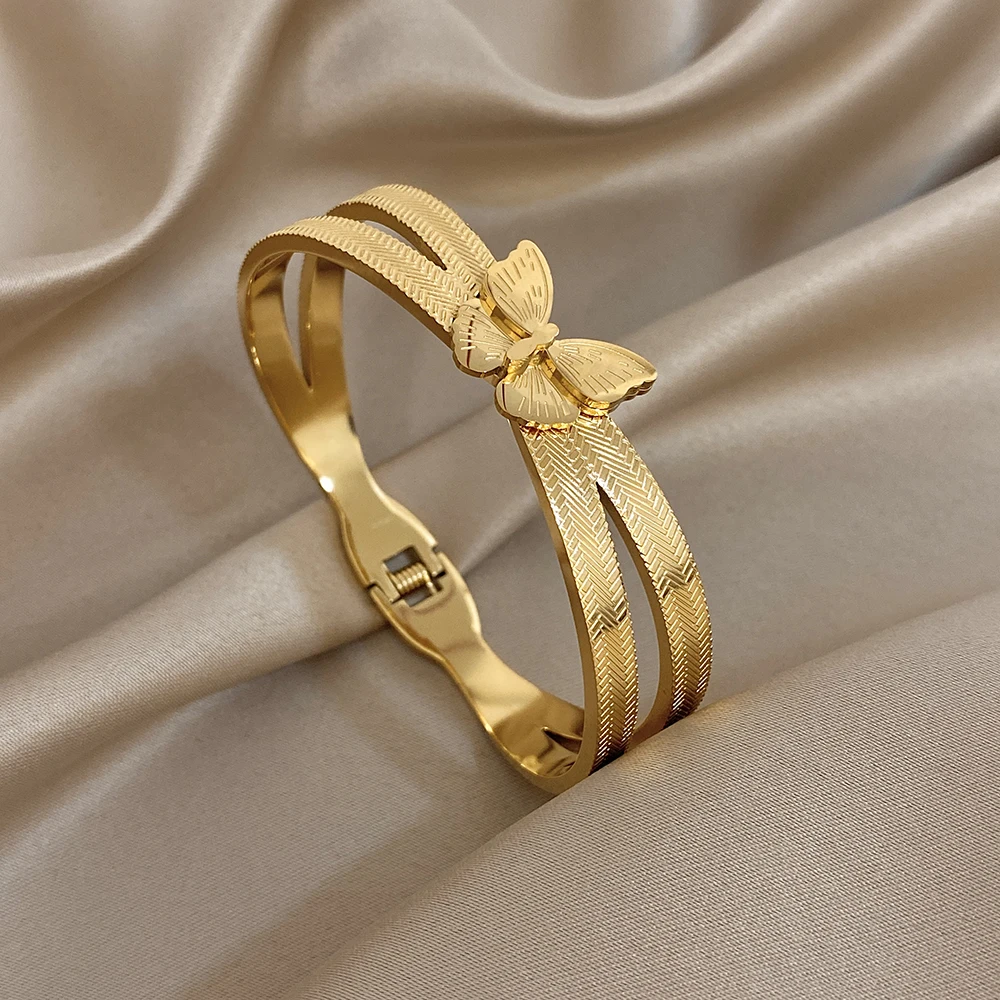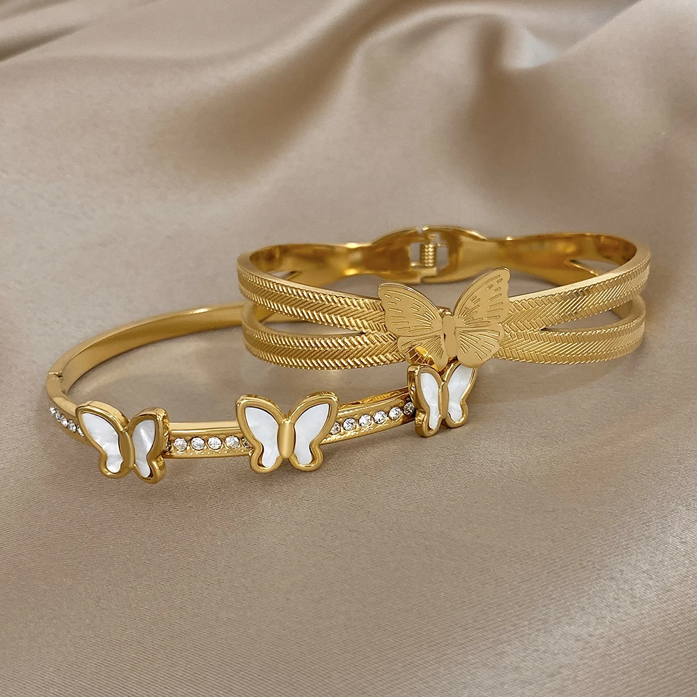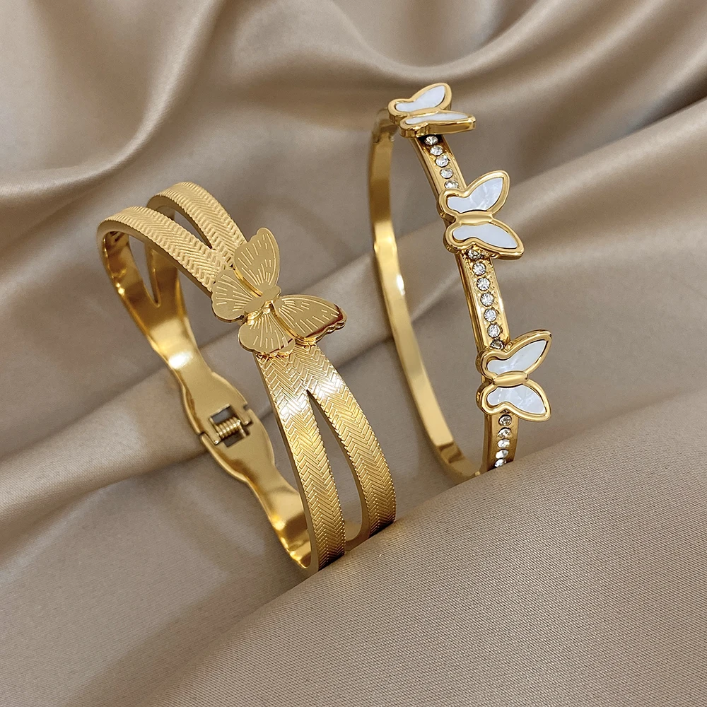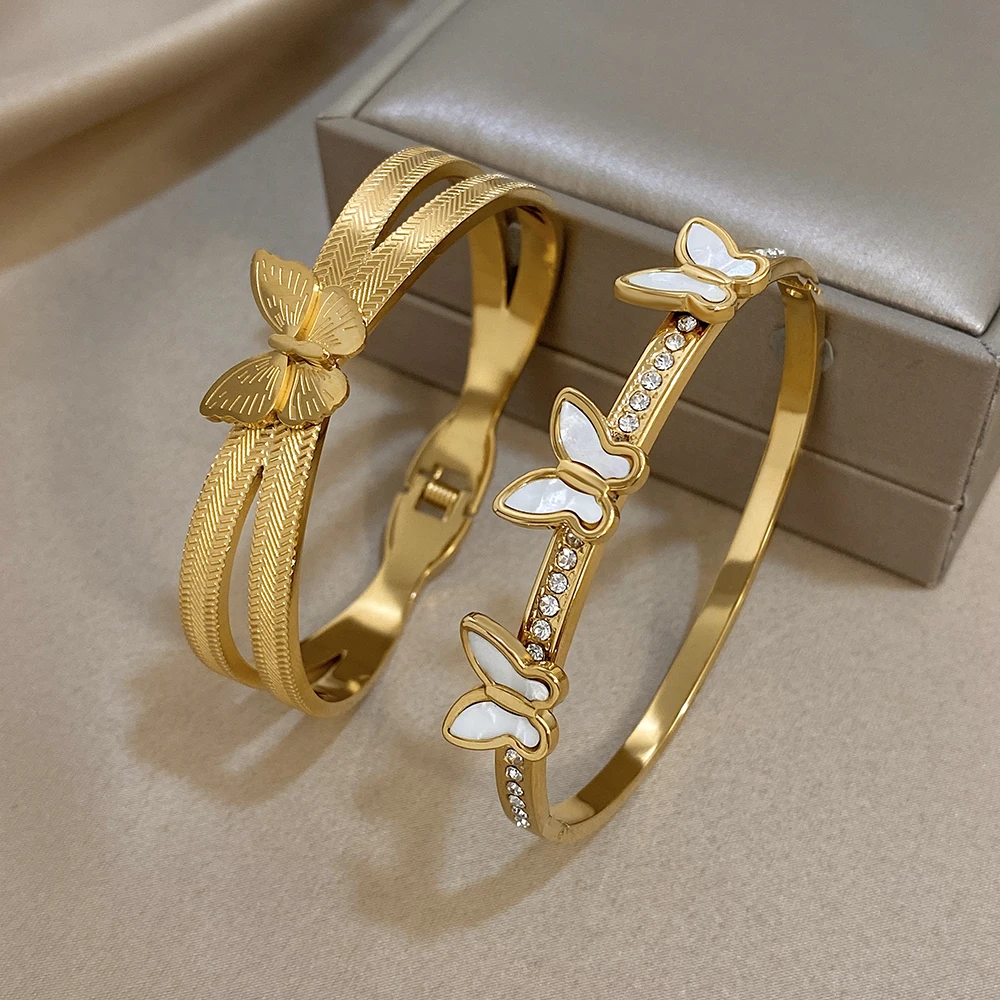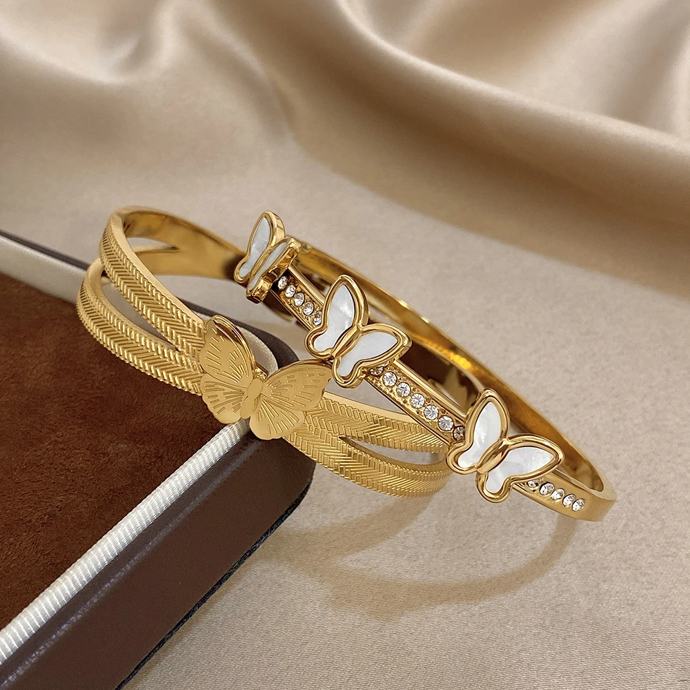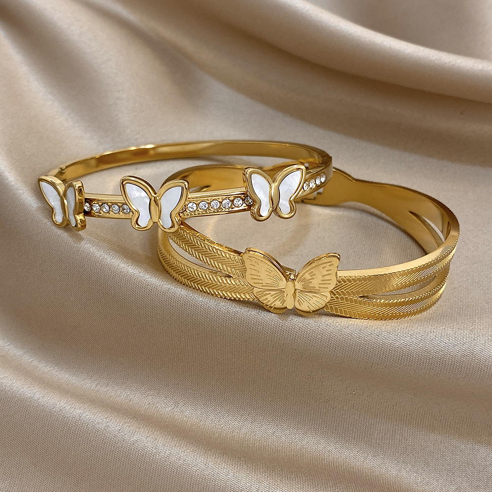 Greatera Fashion Double-layer Butterfly Stainless Steel Bracelets Oil Drop Rhinestone Inlaid Women’s High-end Bangles Jewelry
