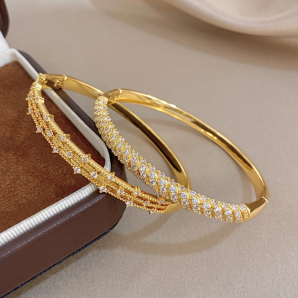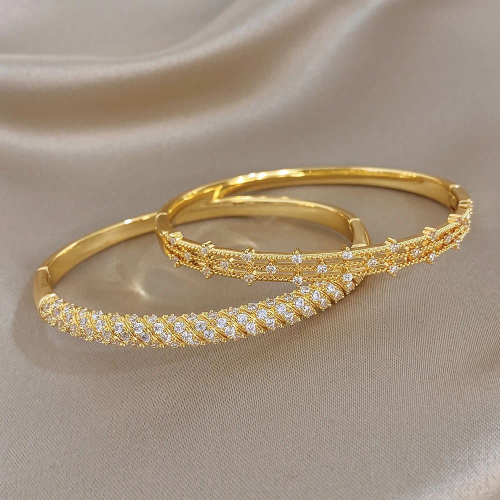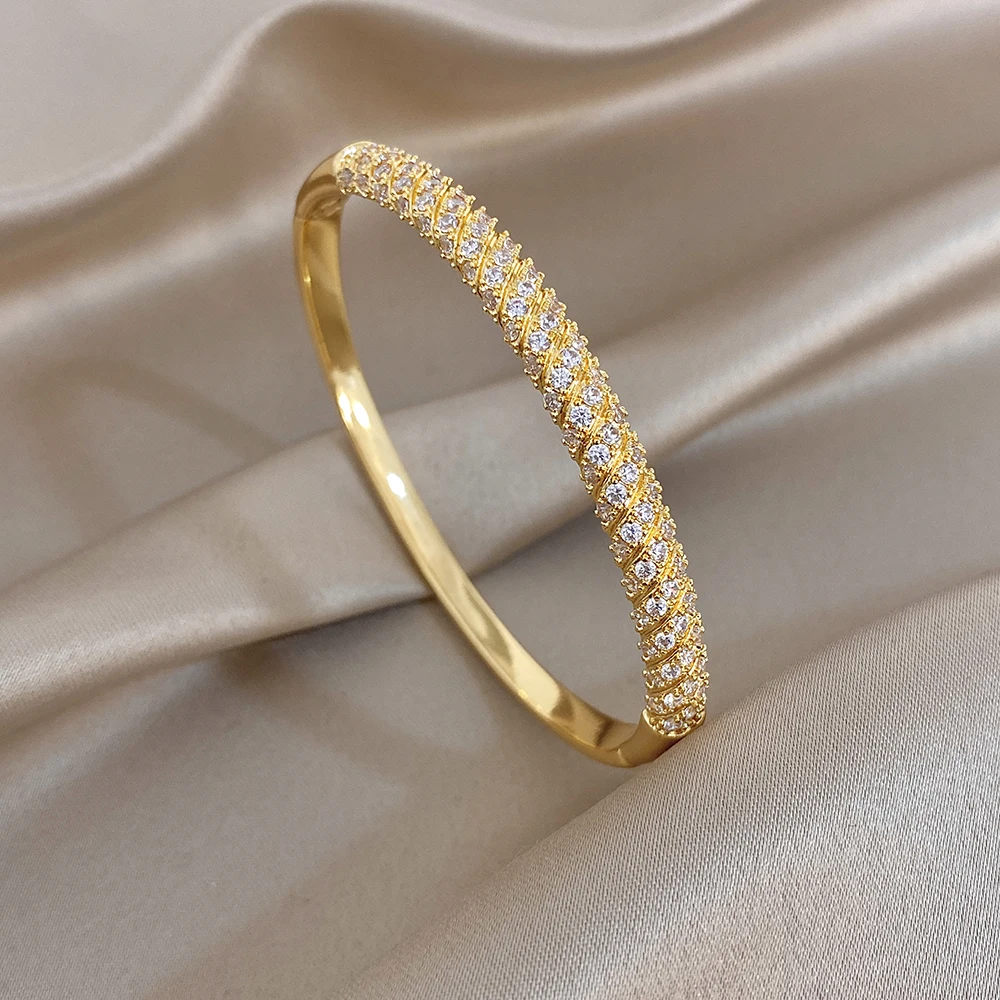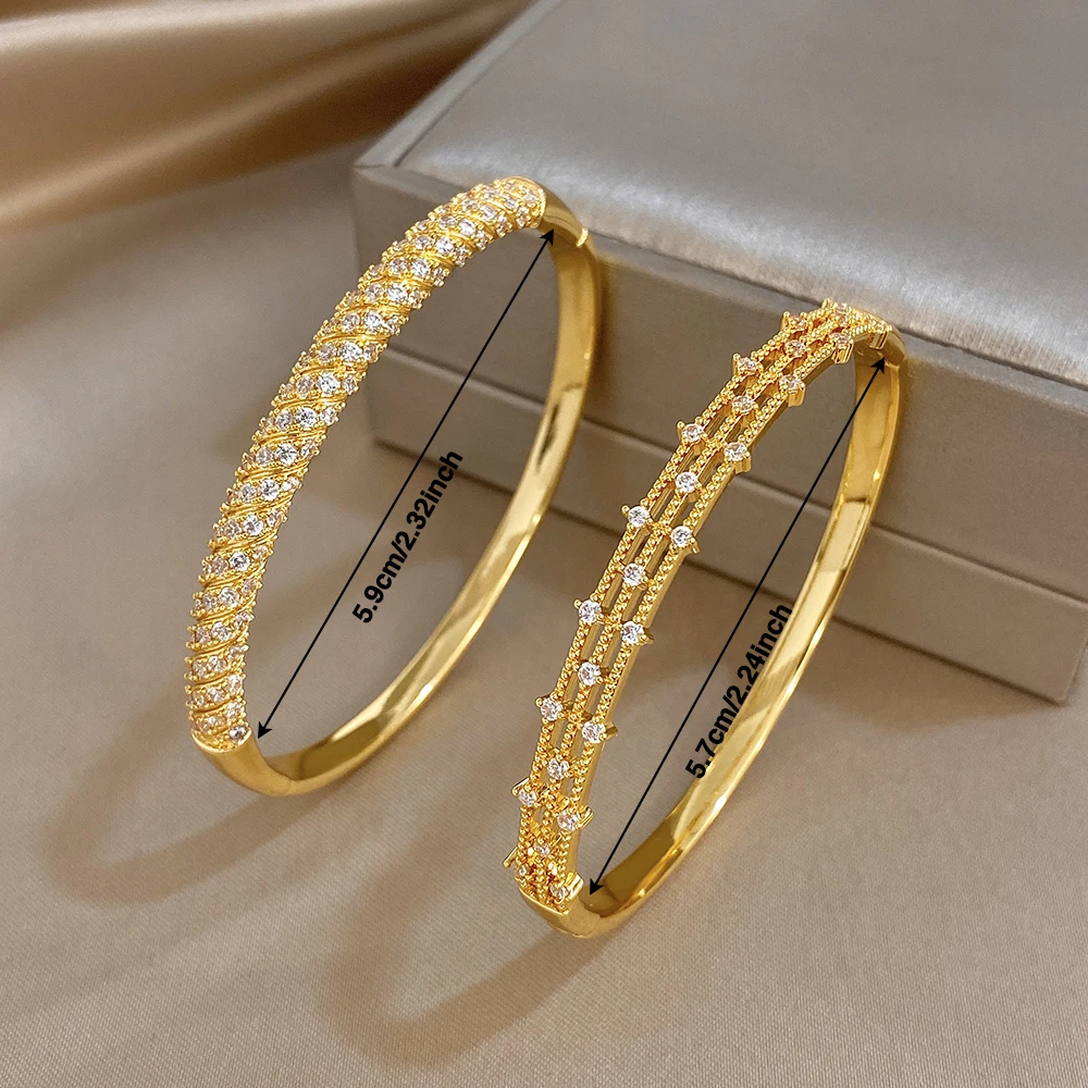 Greatera Gold Chain Dense Rhinestone Copper Bracelet Wire Wound Around Shape Design Niche Light Luxury Women’s Open Bangles Gift
