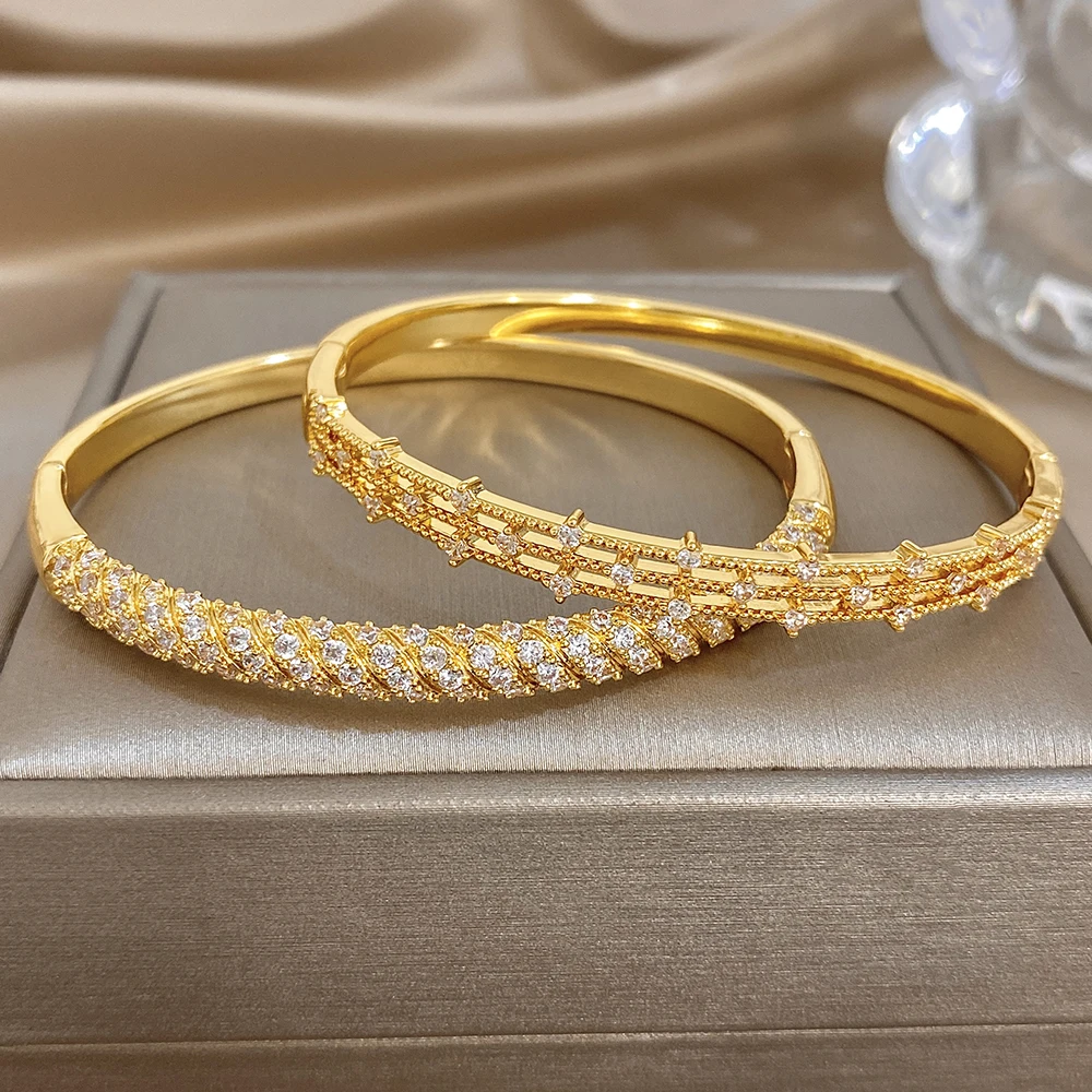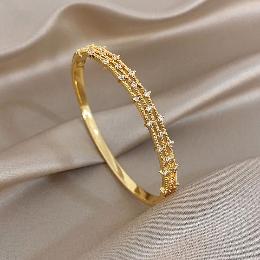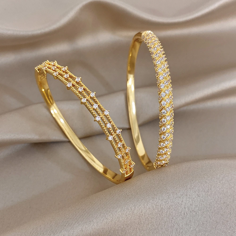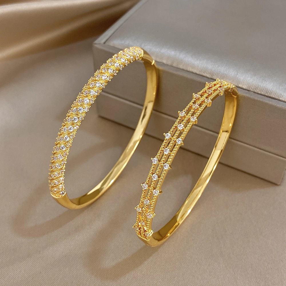 Greatera Gold Chain Dense Rhinestone Copper Bracelet Wire Wound Around Shape Design Niche Light Luxury Women’s Open Bangles Gift