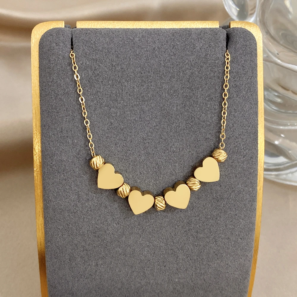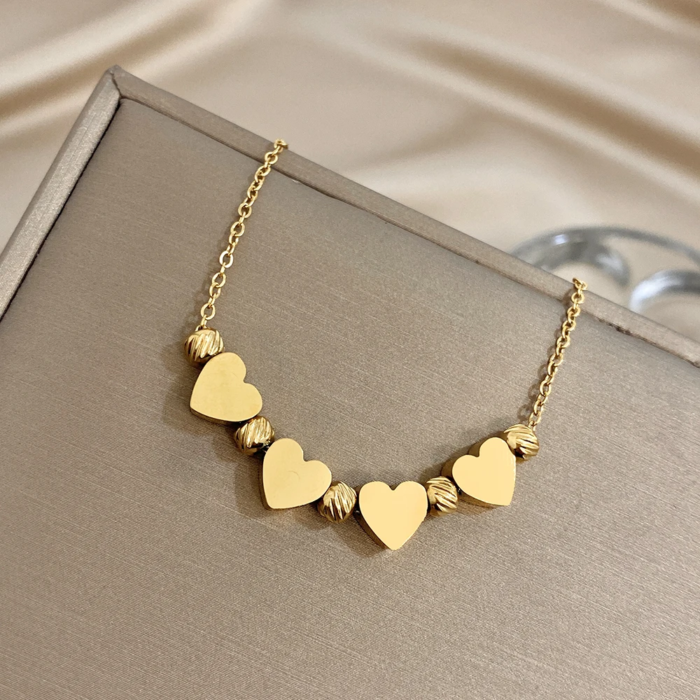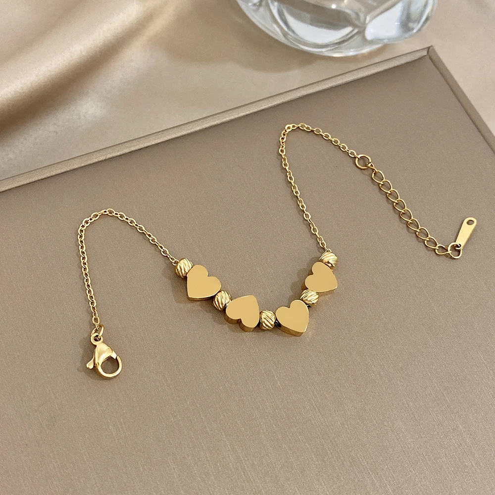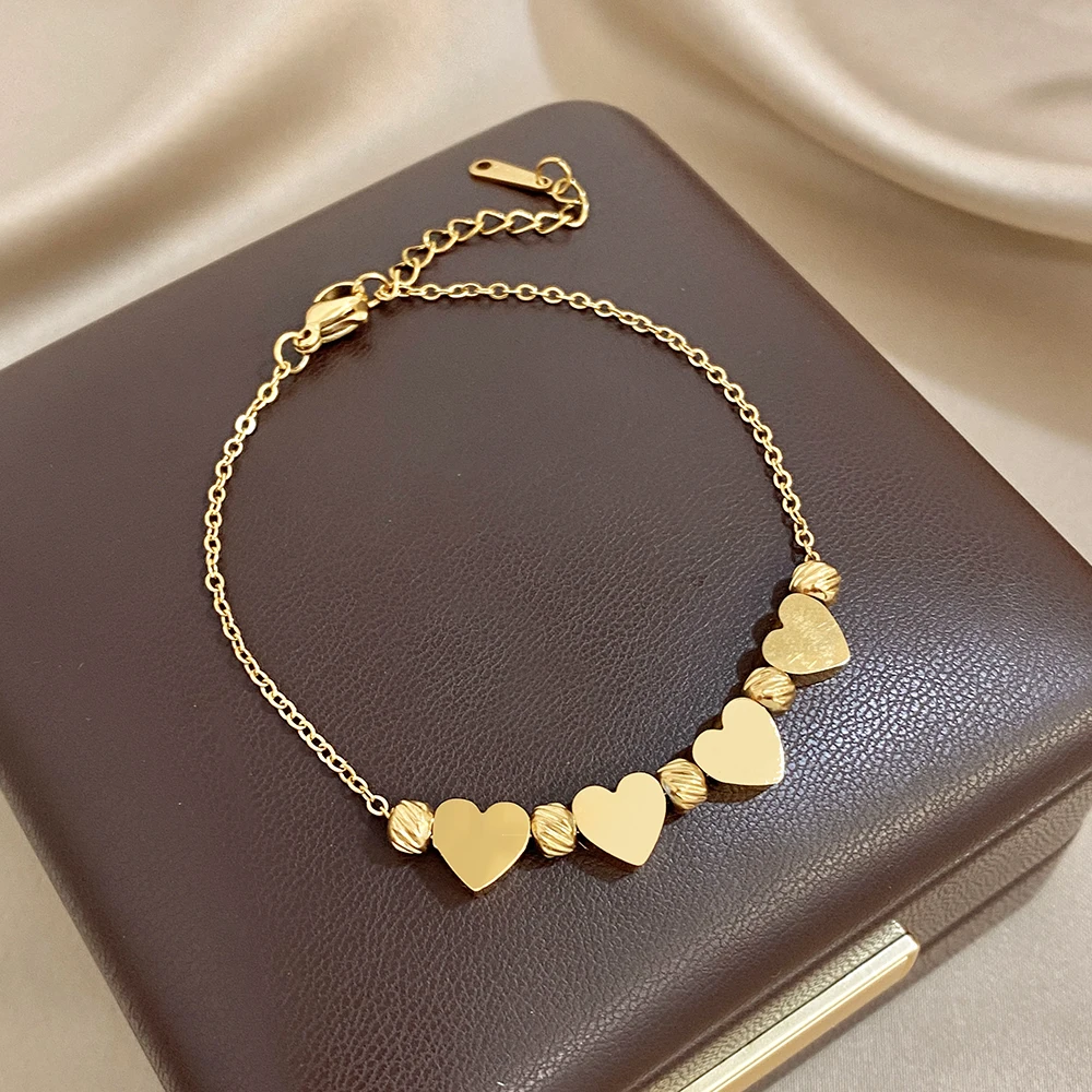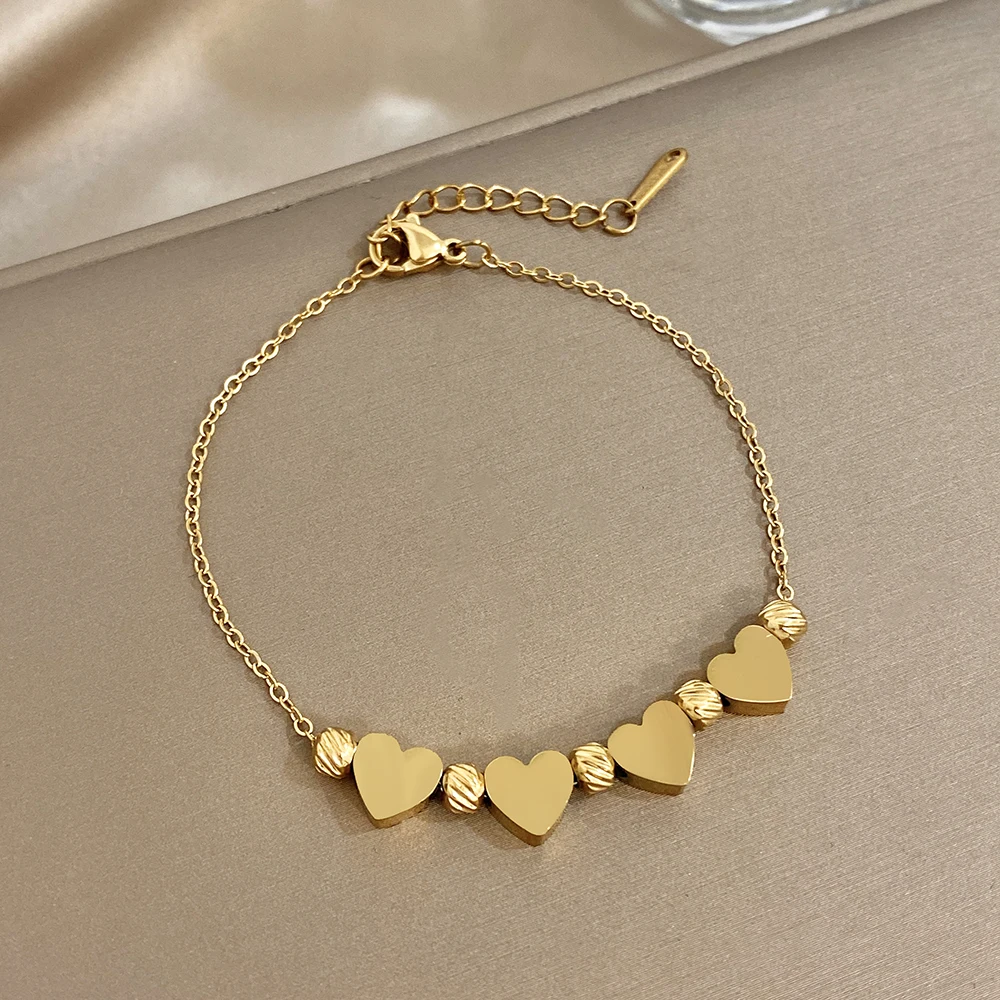Greatera Gold Color Stainless Steel Heart-shaped Striped Bead Bracelet New Fashion High-end Waterproof Chain Wrist Accessories