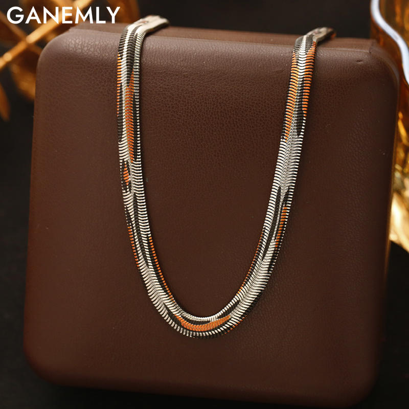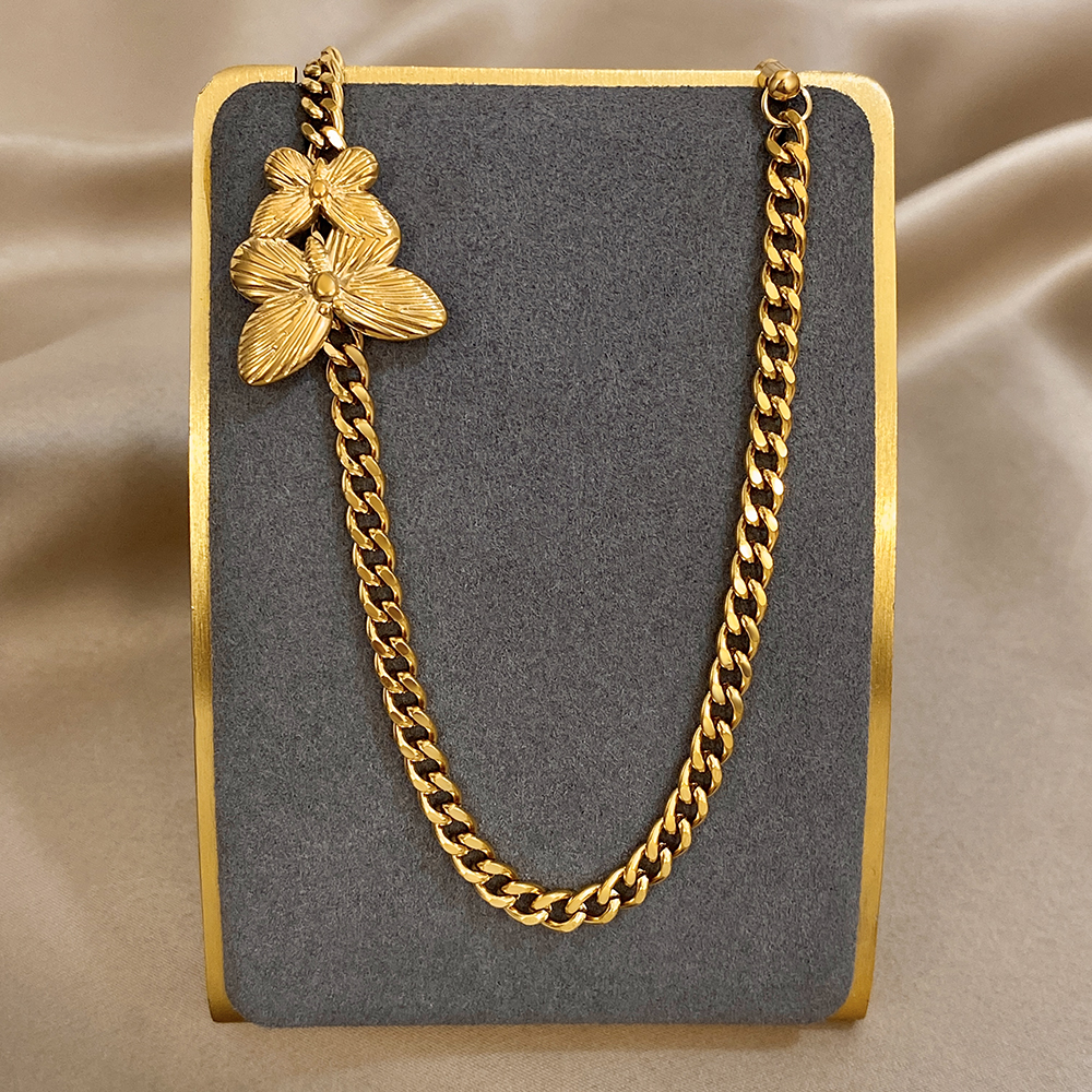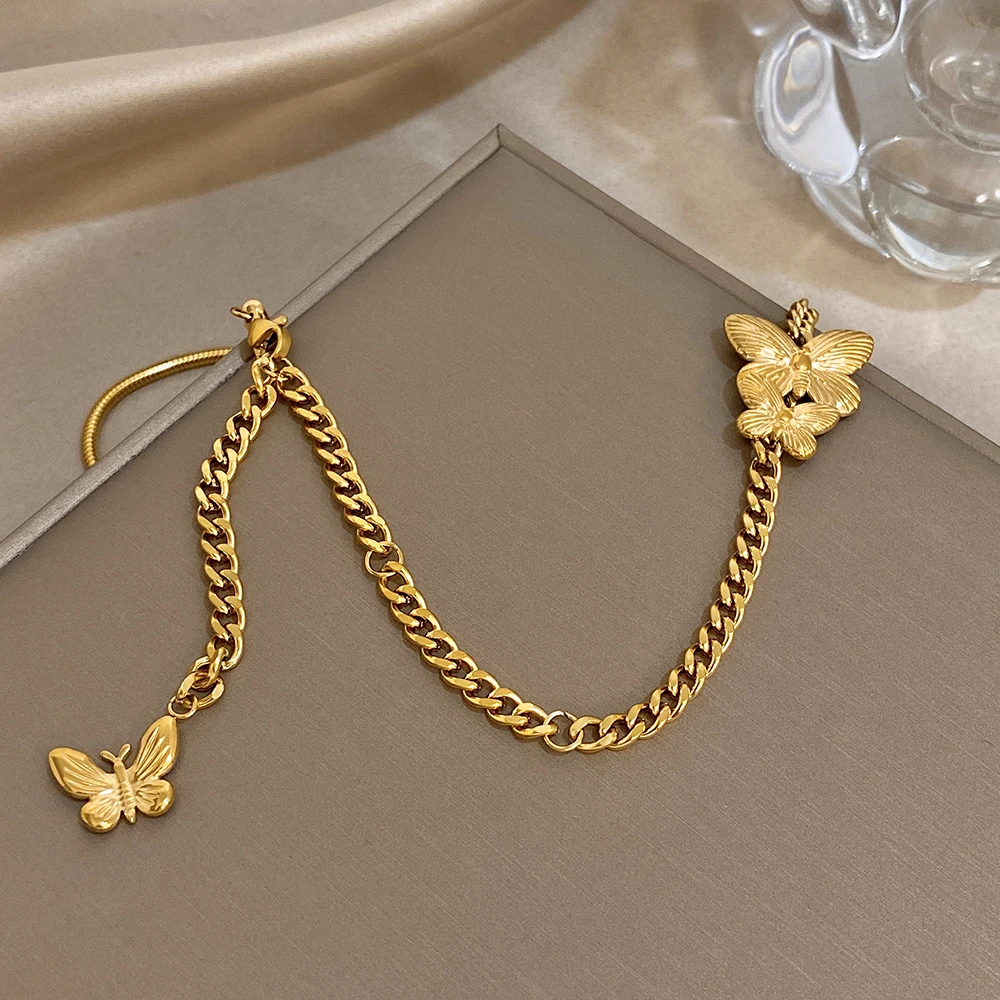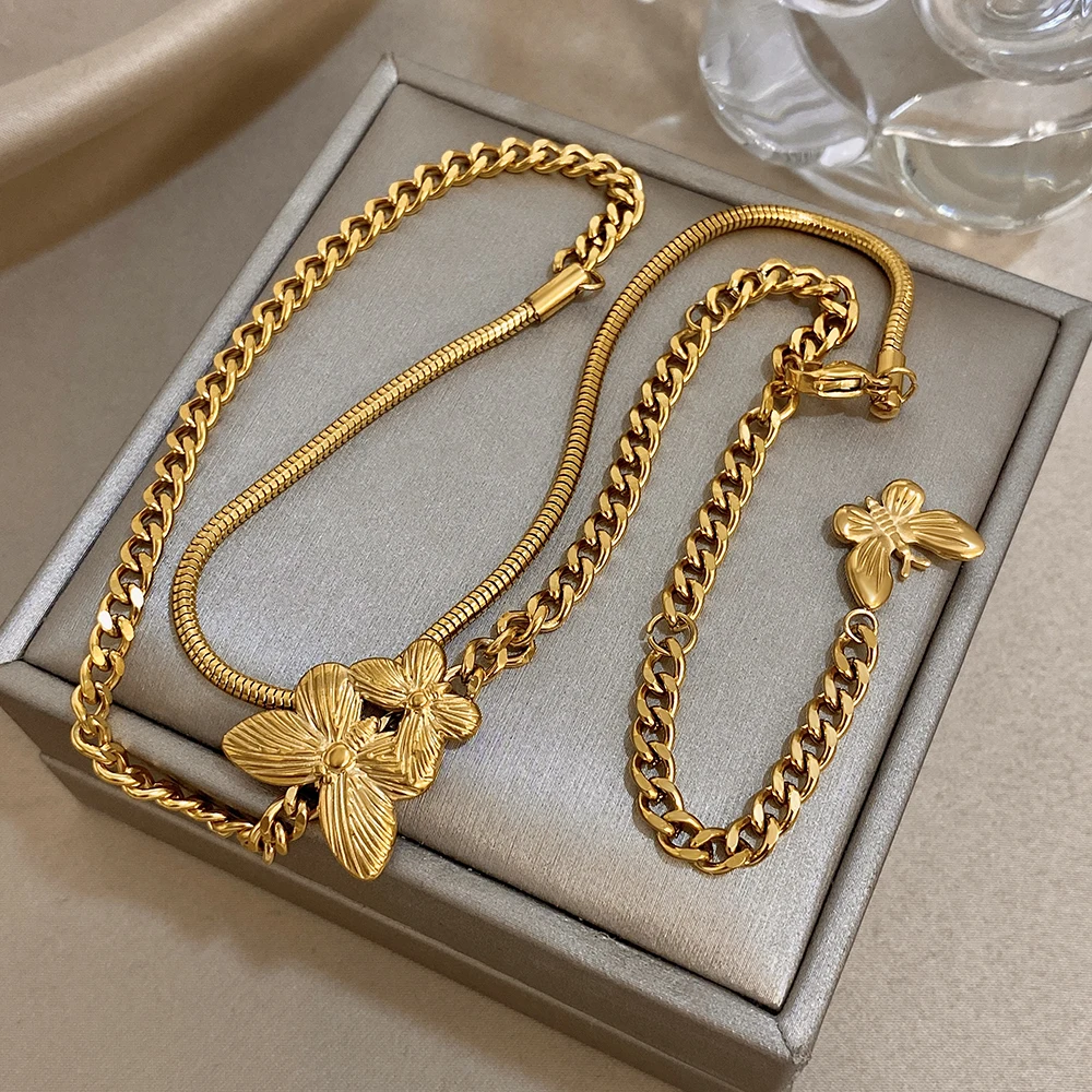 Greatera Golden Stainless Steel Double Butterfly Snake Bone Chain Necklace Niche Design Artistic Waterproof Women Jewelry Party
