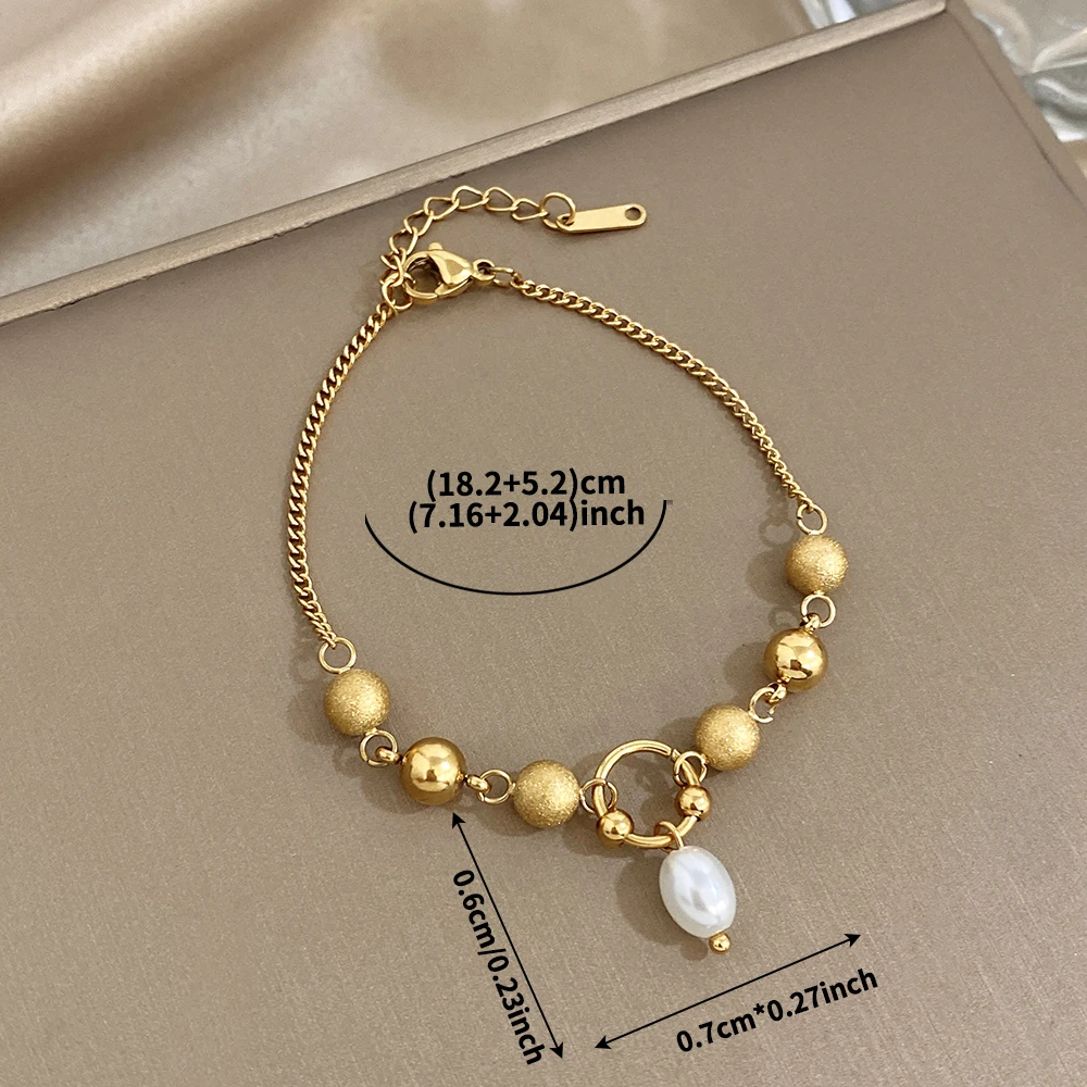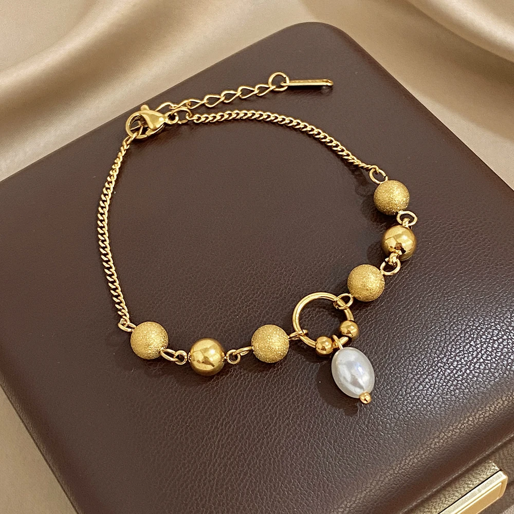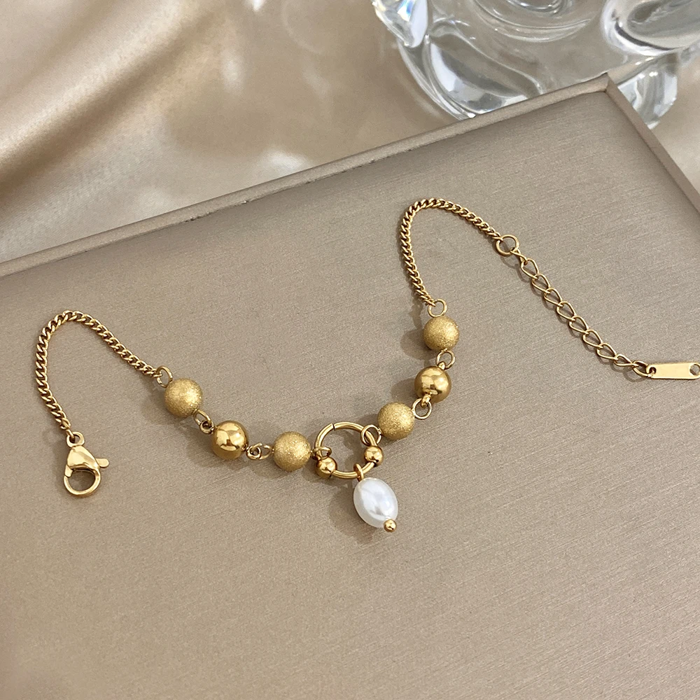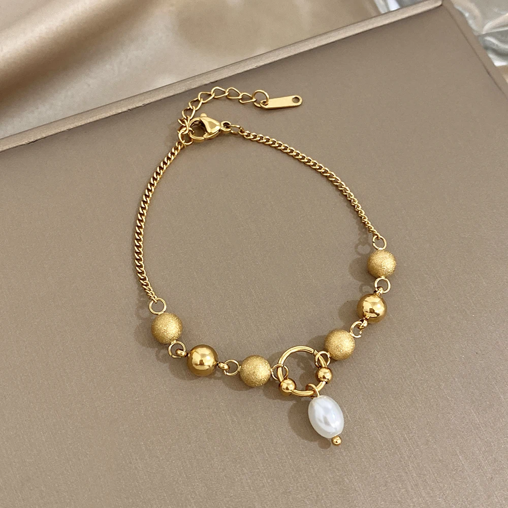 Greatera Matte Round Bead Bracelet Niche Design Pearl Pendant Colorfast Stainless Steel Plated Gold Men Women’s Popular Jewelry