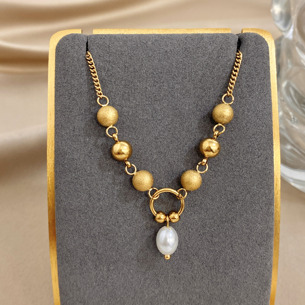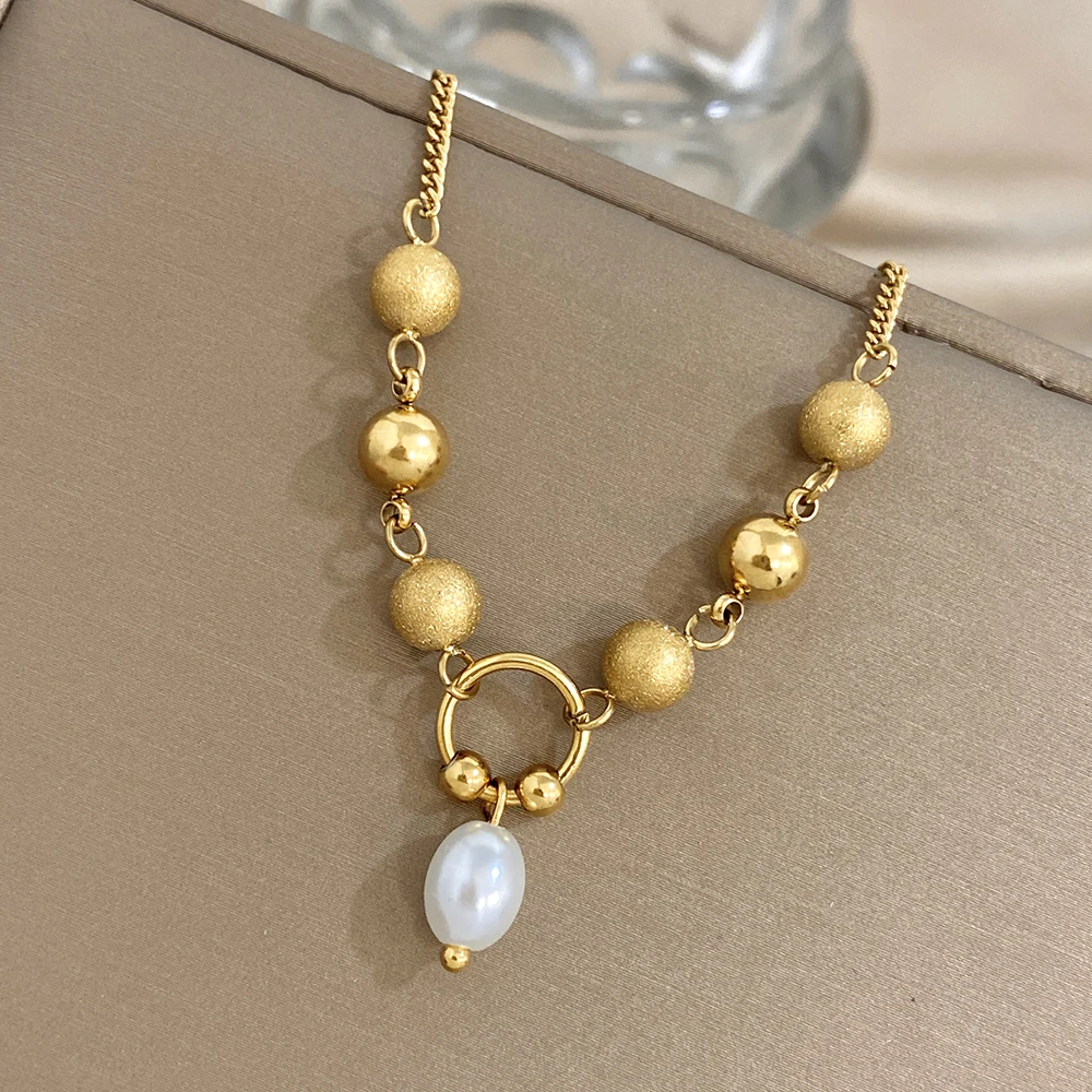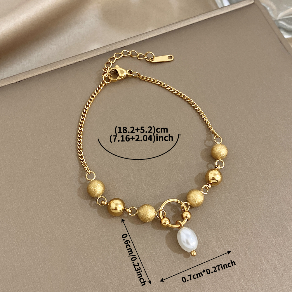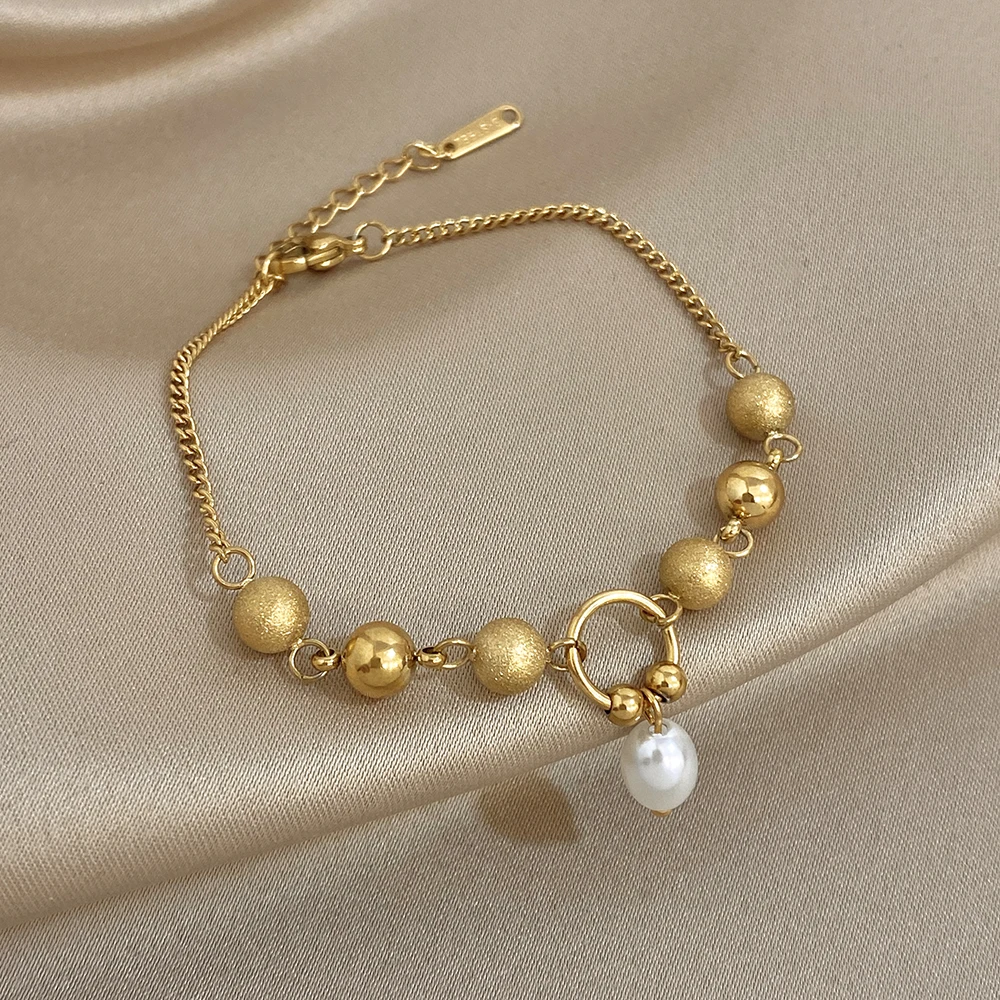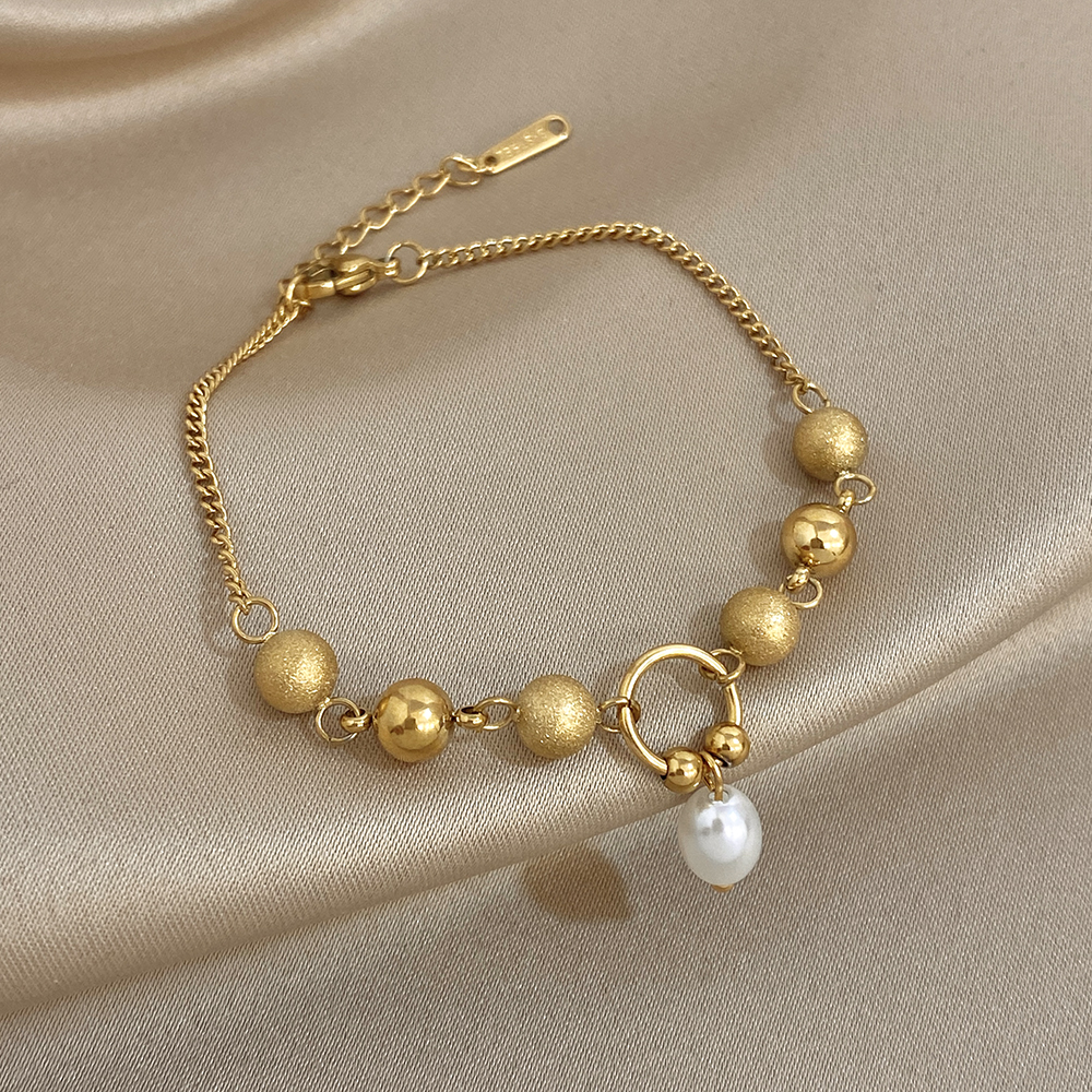 Greatera Matte Round Bead Bracelet Niche Design Pearl Pendant Colorfast Stainless Steel Plated Gold Men Women’s Popular Jewelry