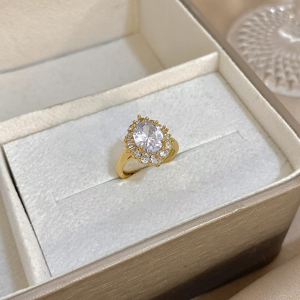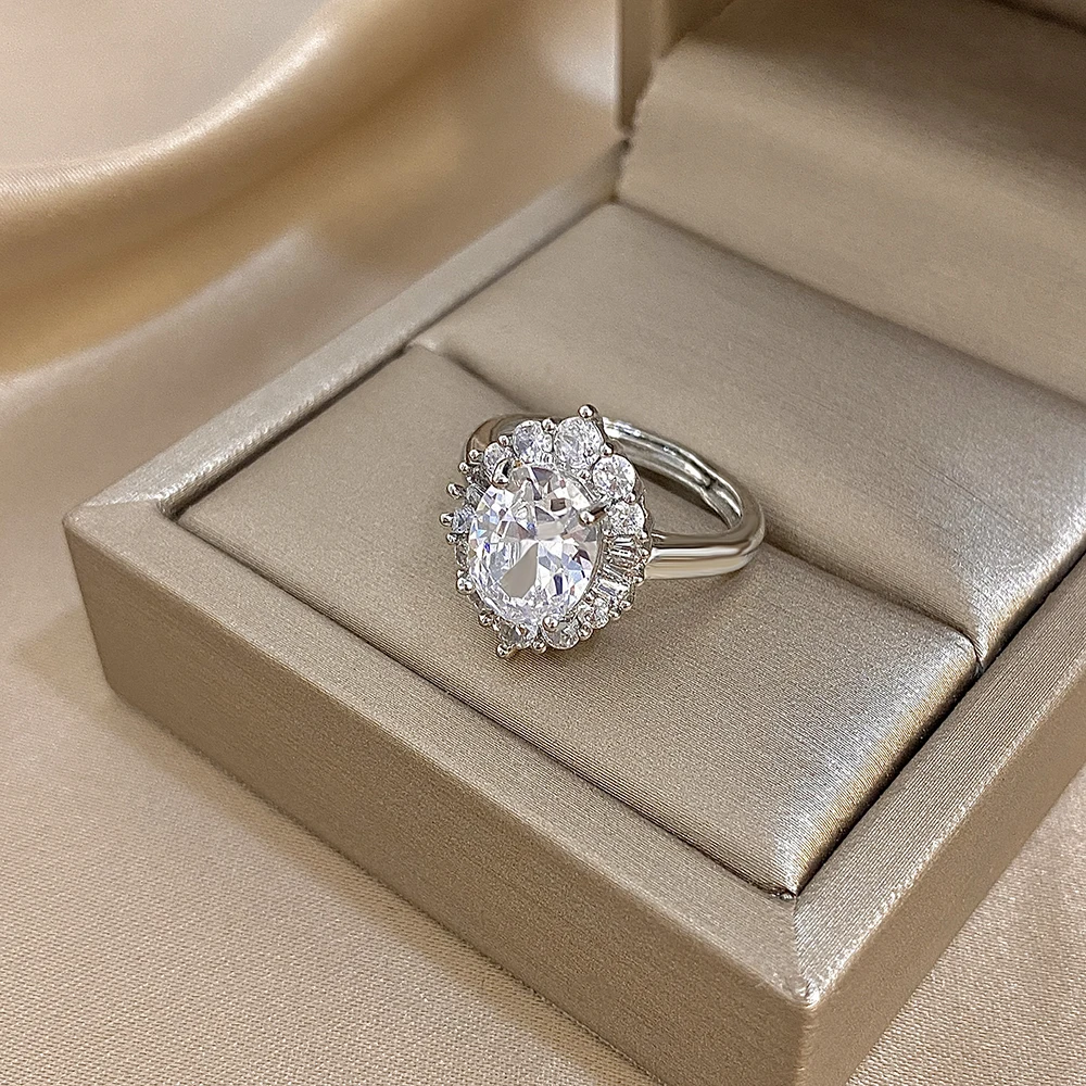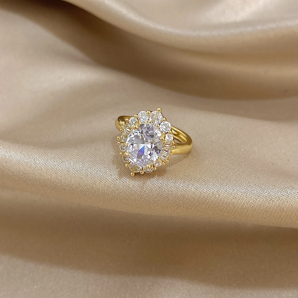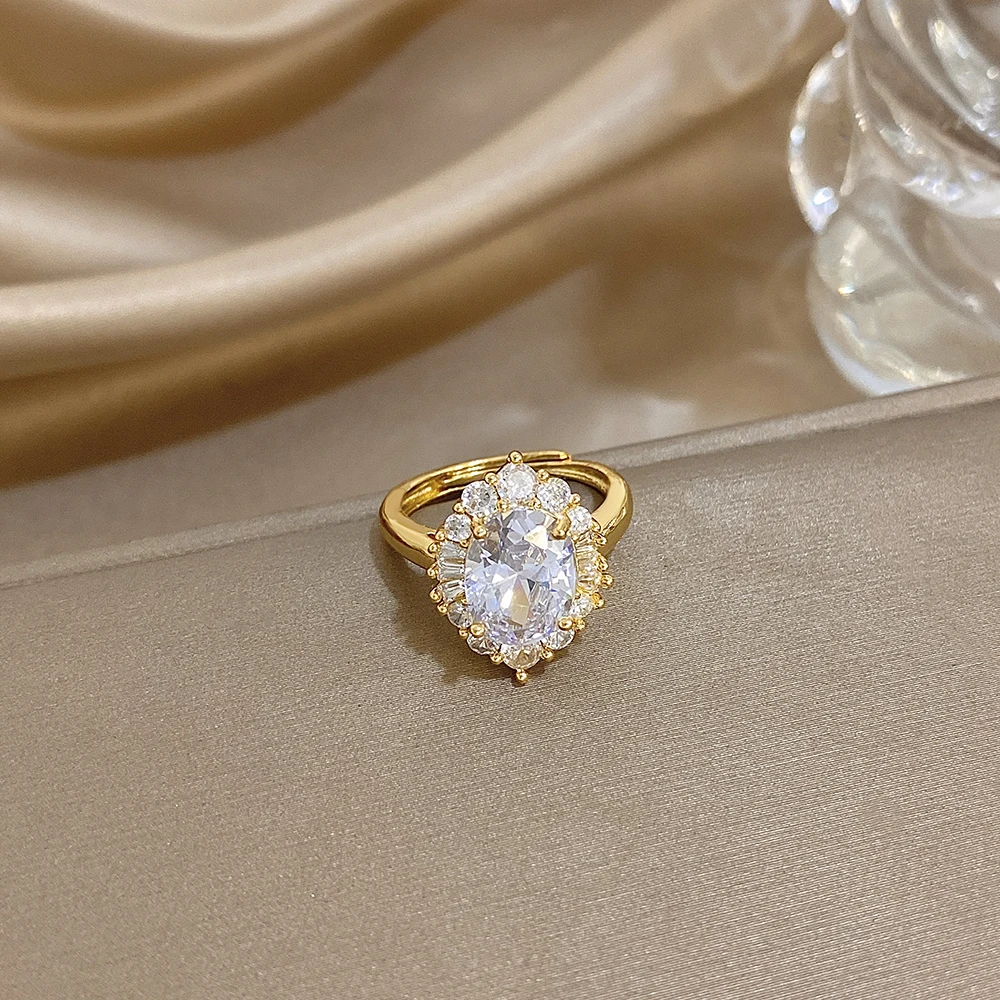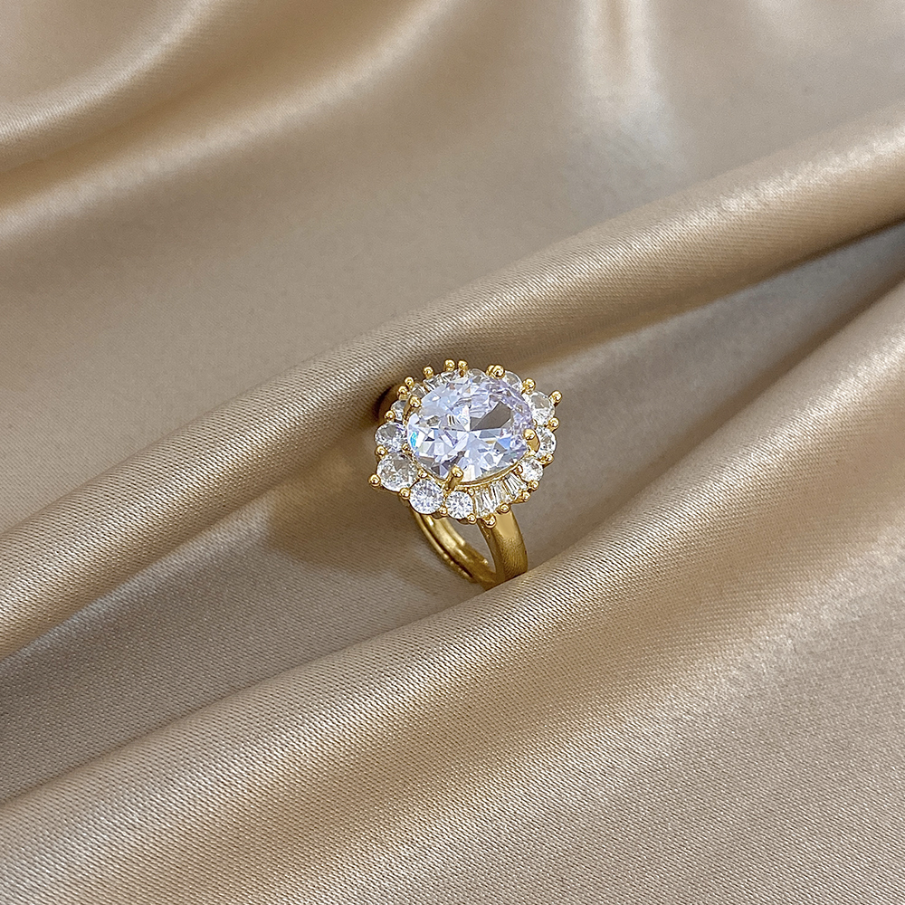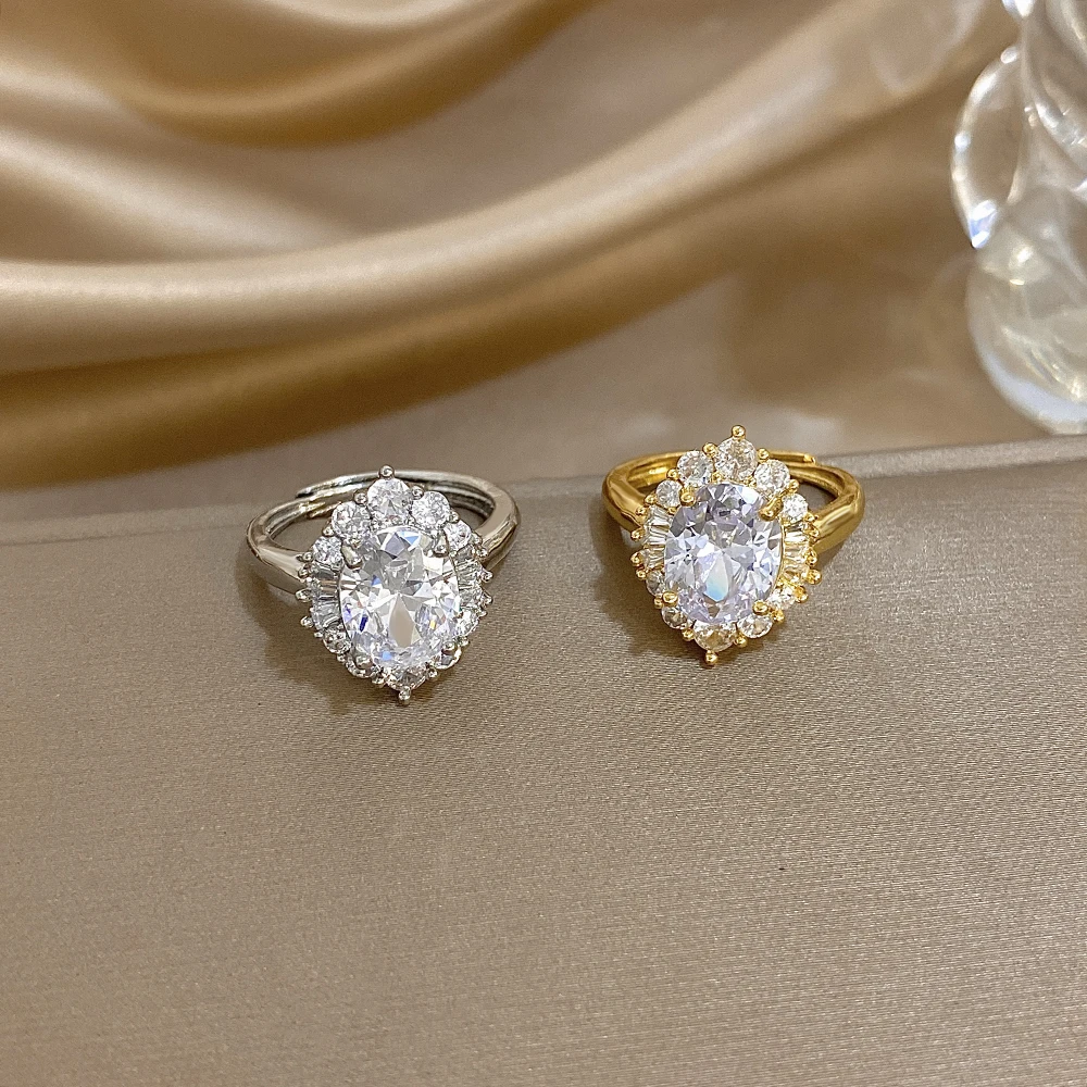Greatera New Personalized Exquisite Diamond-encrusted Wide Ring Fashion Temperament Gold/Sliver Color Simple Popular Jewelry