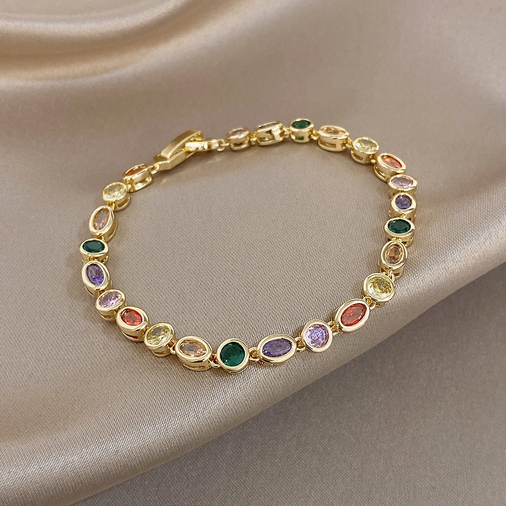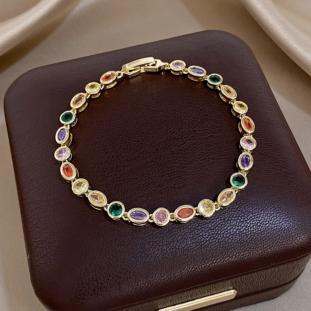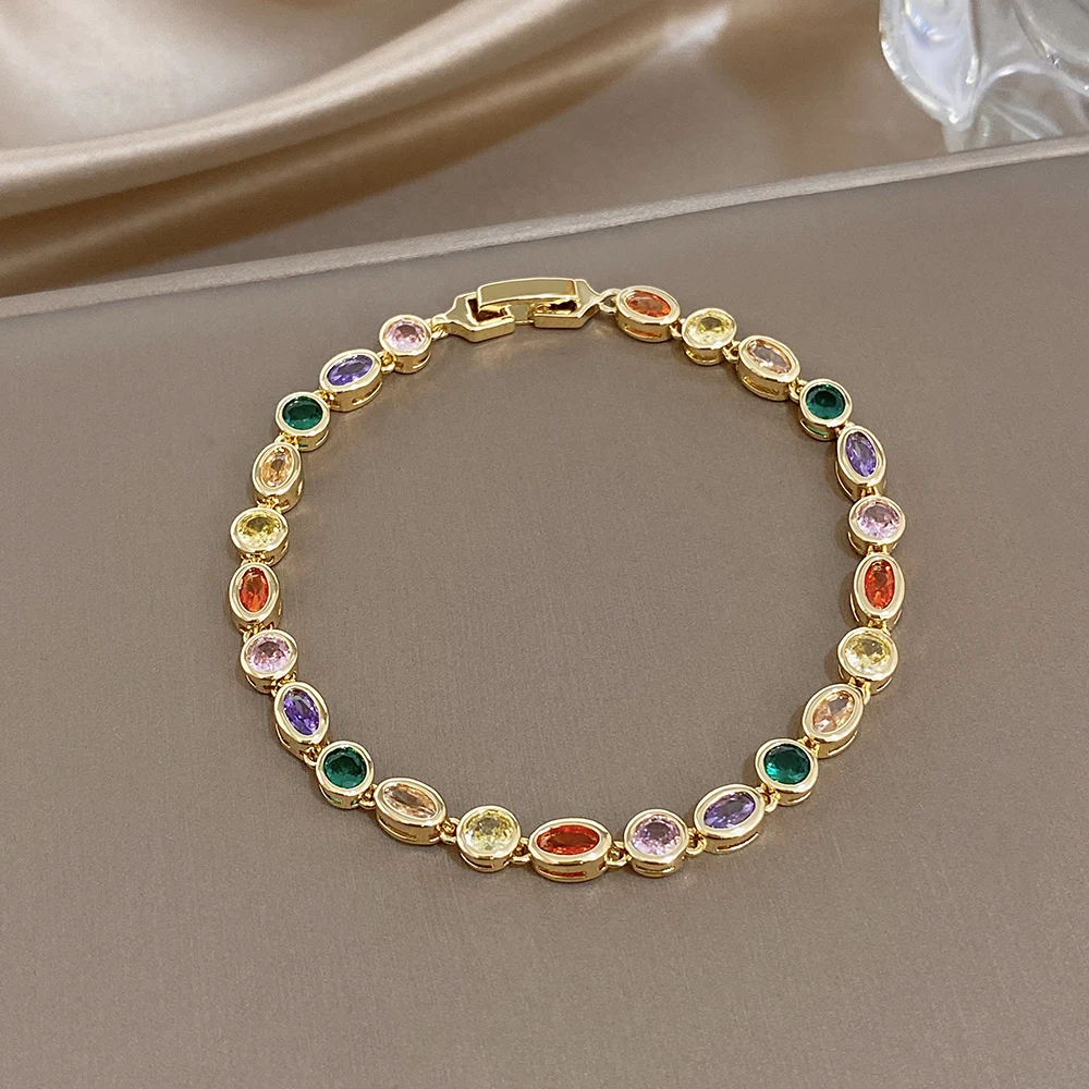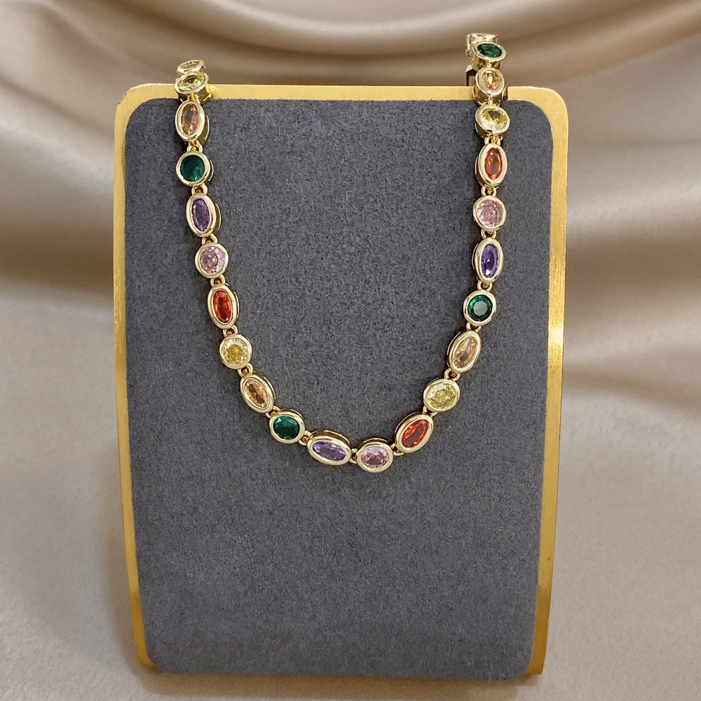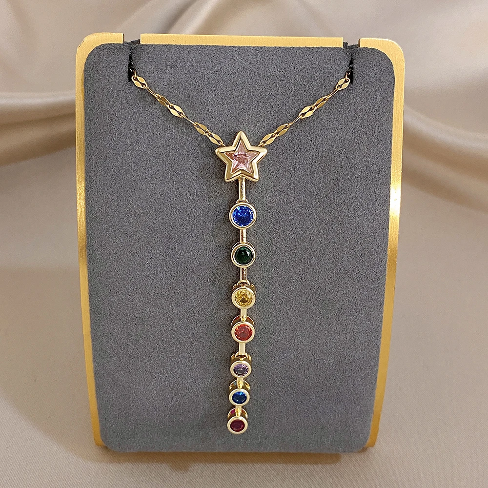 Greatera Oval Spliced Bracelet Five-pointed Star Colorful Zirconium Pendant Necklace Fashion Y-shaped Long Tassel Jewelry Party