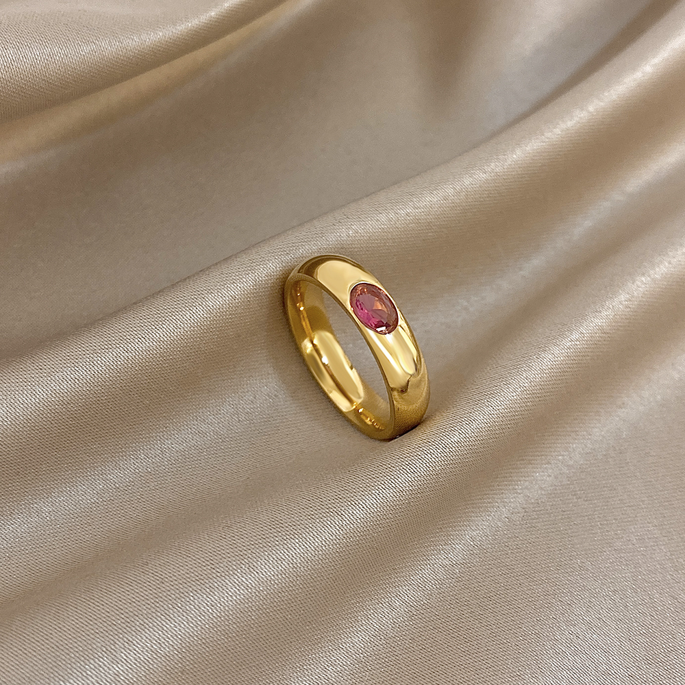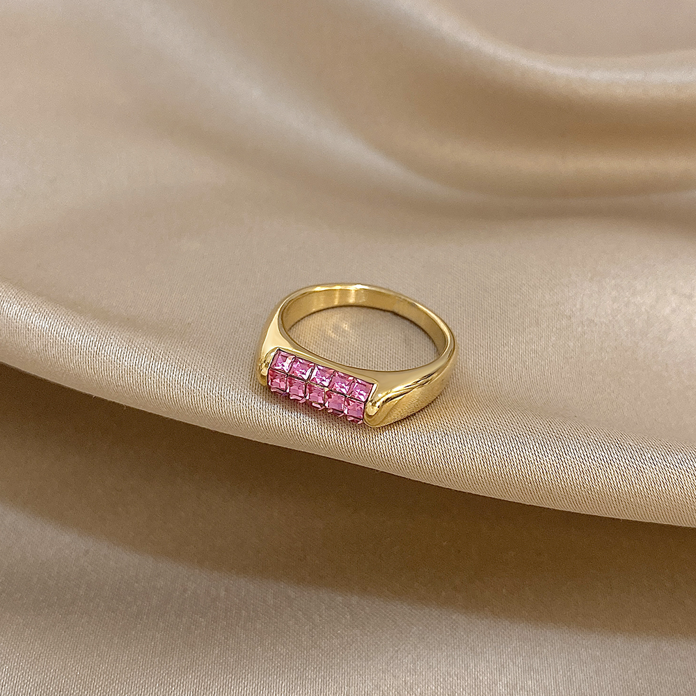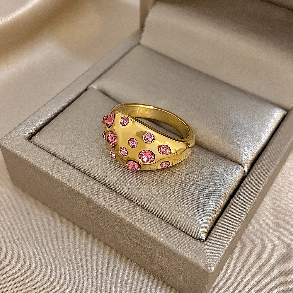Greatera Pink Rhinestone Decoration Ring Simple Stainless Steel Waterproof Outdoor Wear Jewelry Accessories European American
