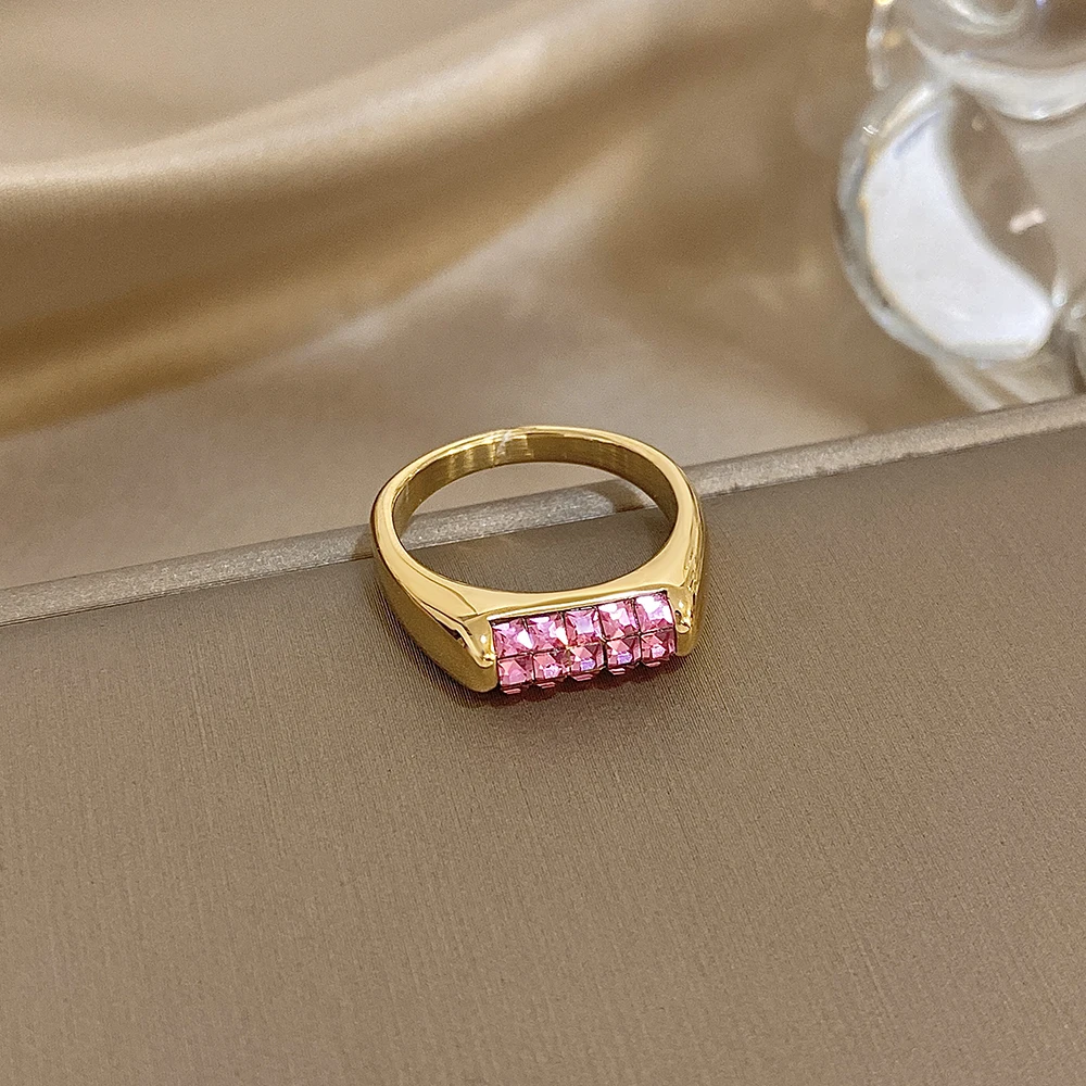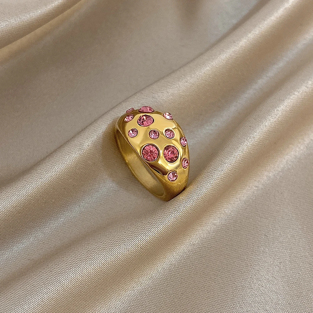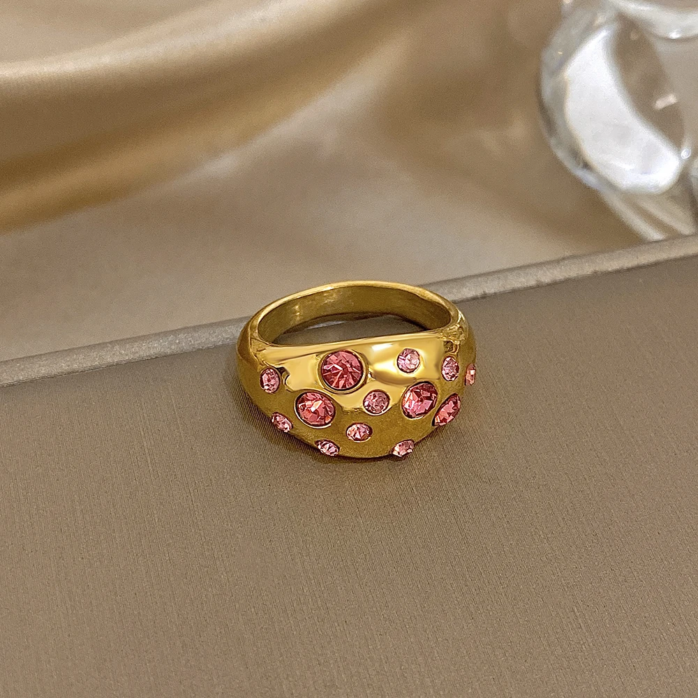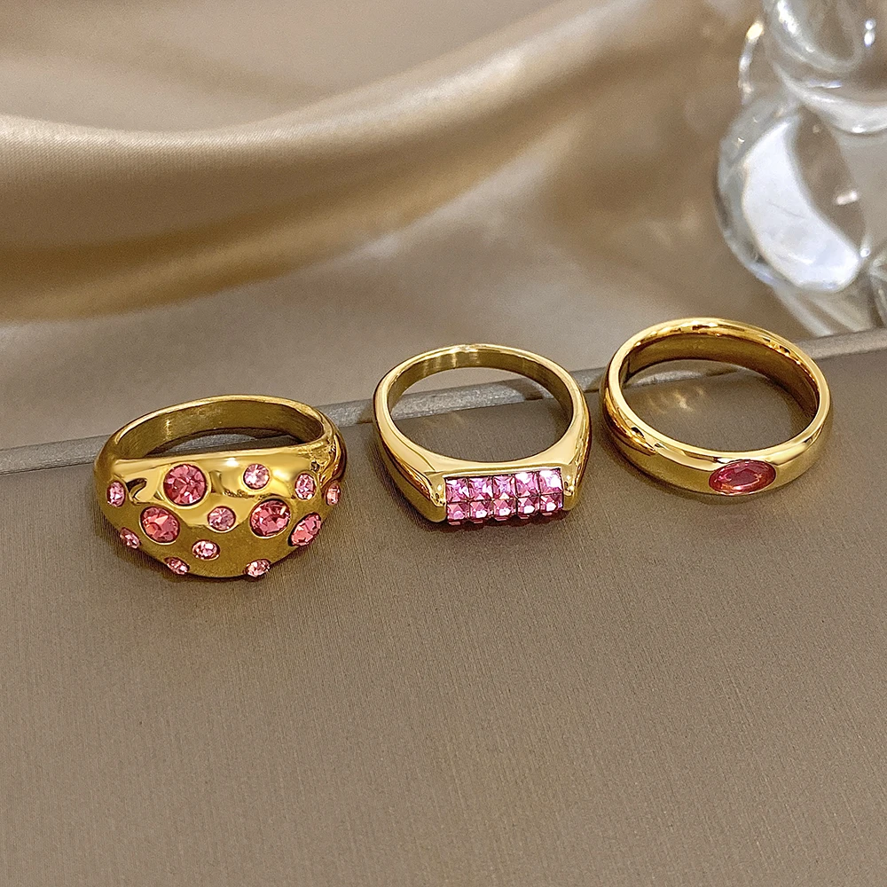 Greatera Pink Rhinestone Decoration Ring Simple Stainless Steel Waterproof Outdoor Wear Jewelry Accessories European American