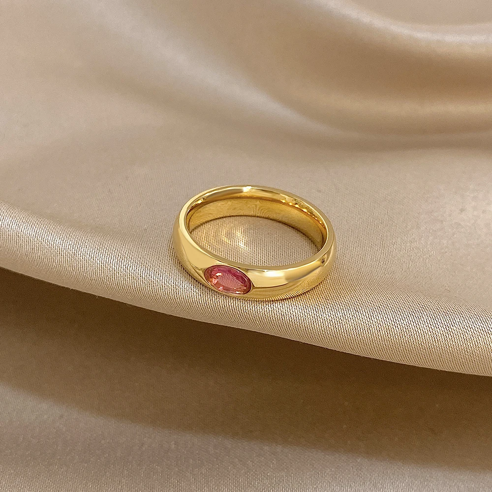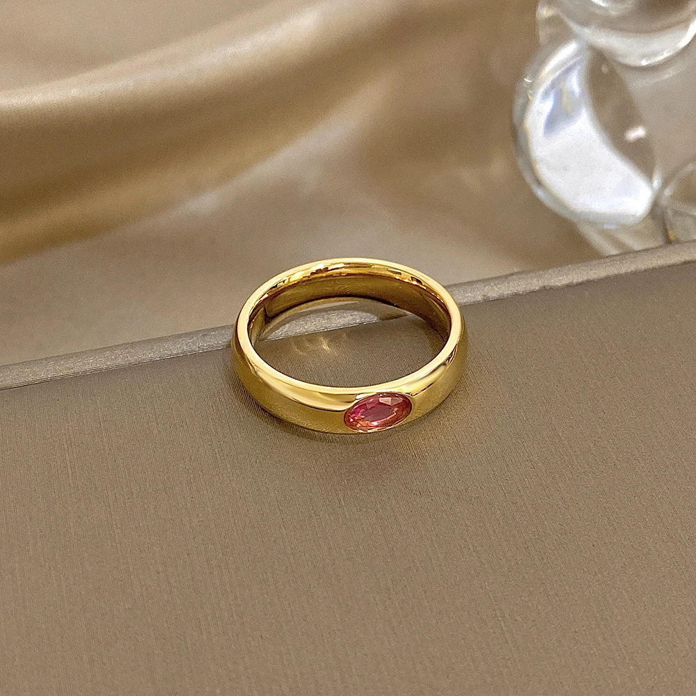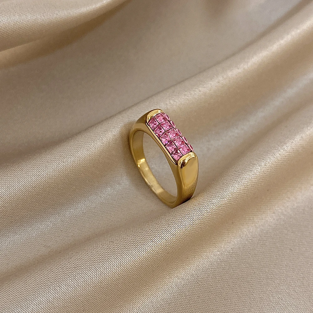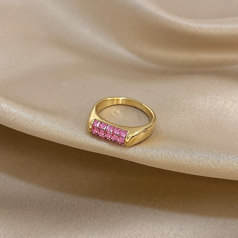 Greatera Pink Rhinestone Decoration Ring Simple Stainless Steel Waterproof Outdoor Wear Jewelry Accessories European American