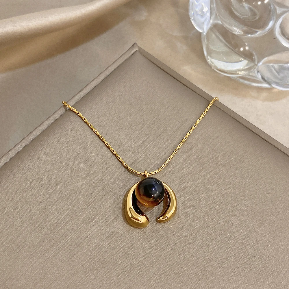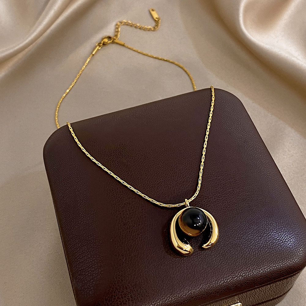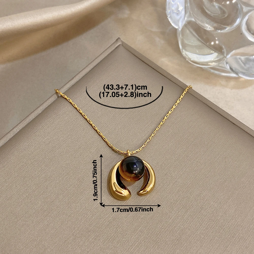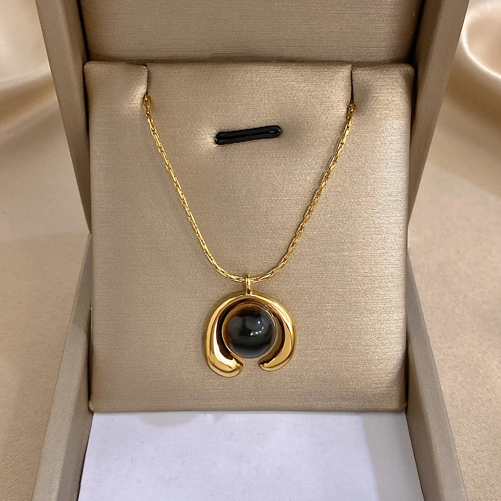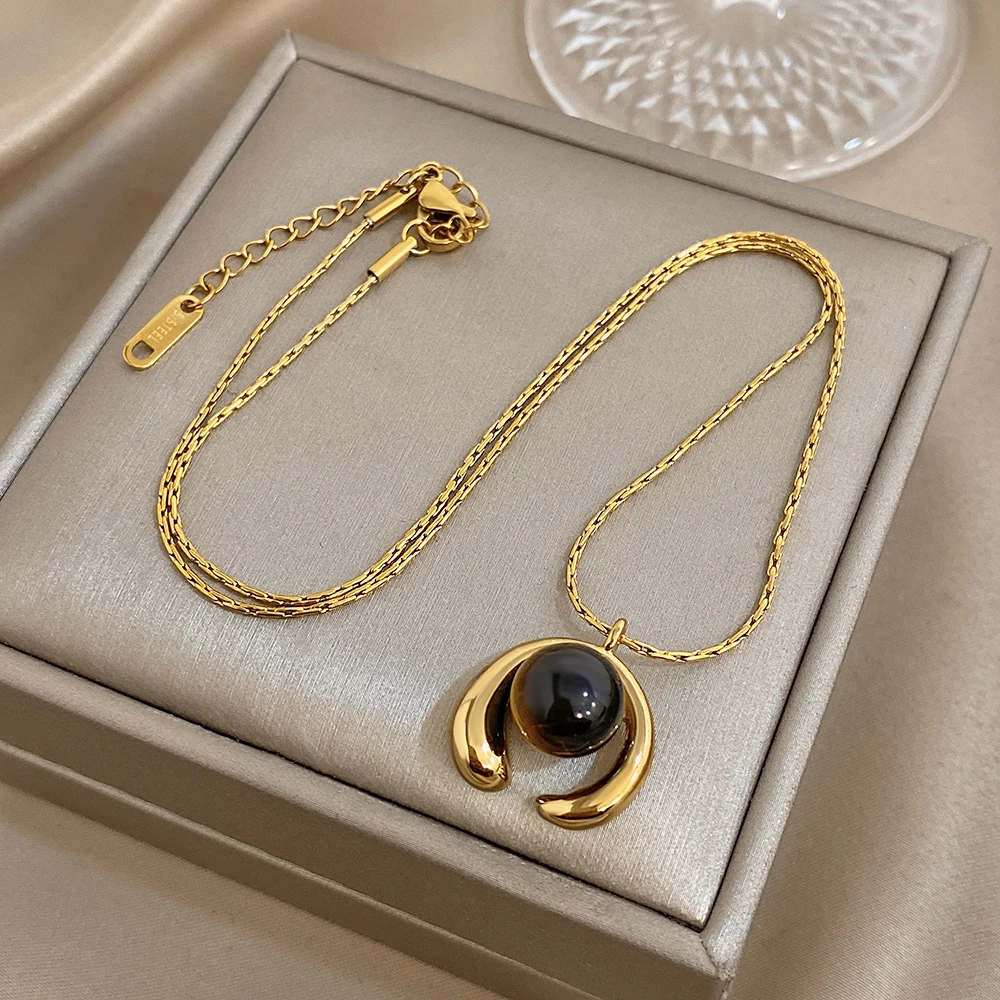 Greatera Plated Golden Obsidian Moon Arc Fine Snake Bone Chain Jewelry Trendy Stainless Steel Waterproof Popular Women Necklace