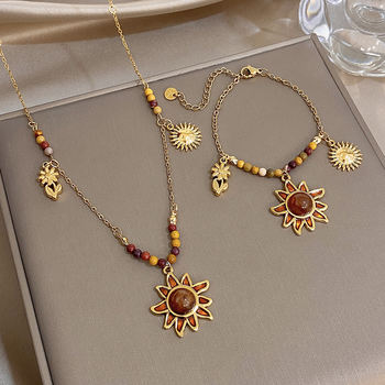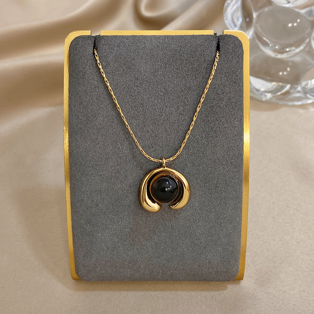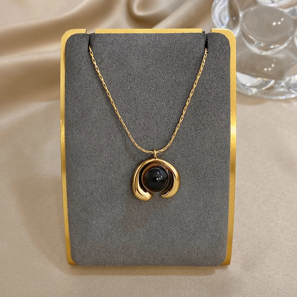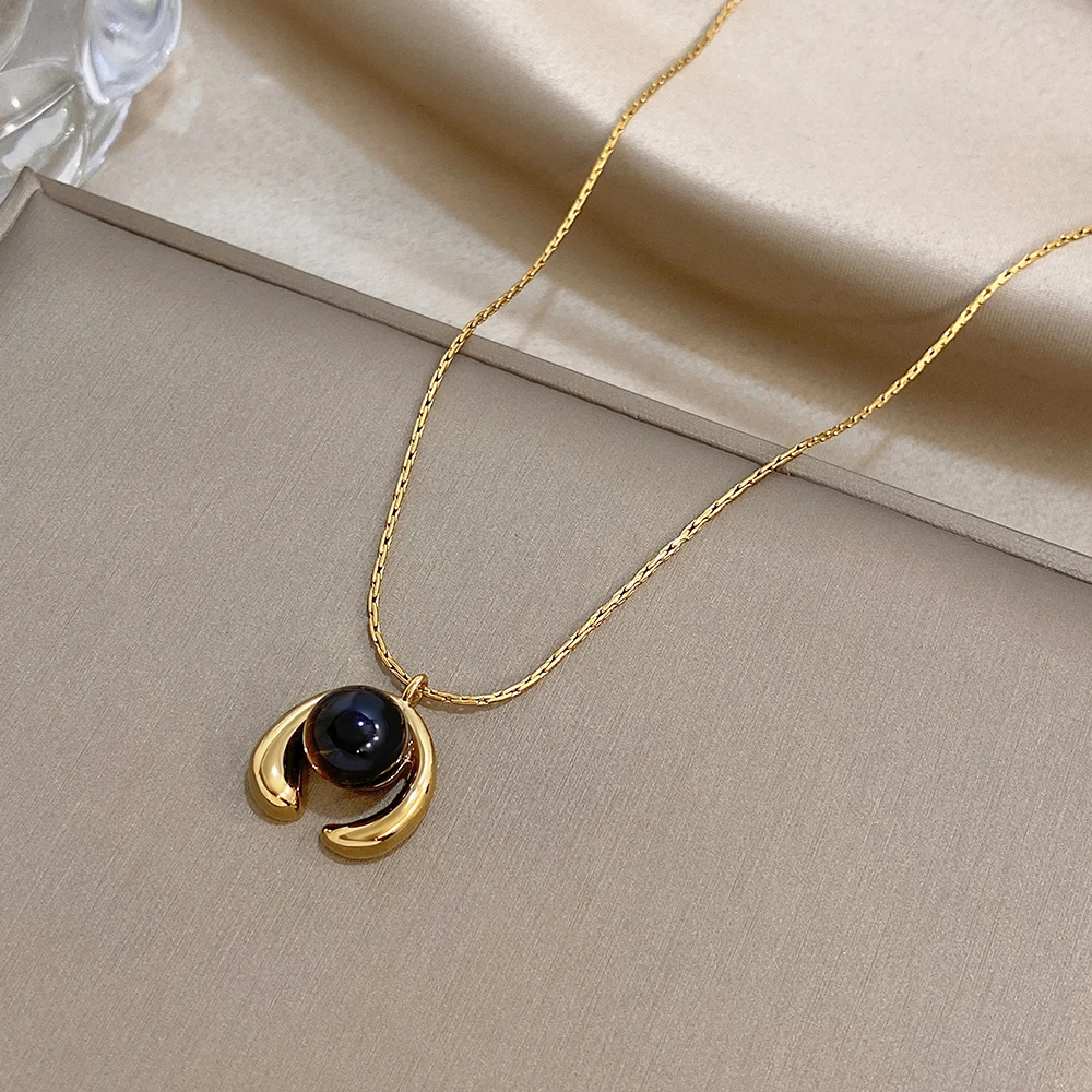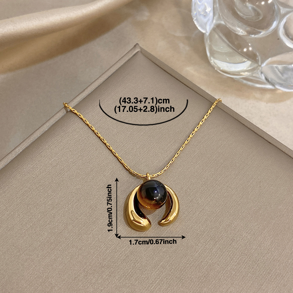 Greatera Plated Golden Obsidian Moon Arc Fine Snake Bone Chain Jewelry Trendy Stainless Steel Waterproof Popular Women Necklace
