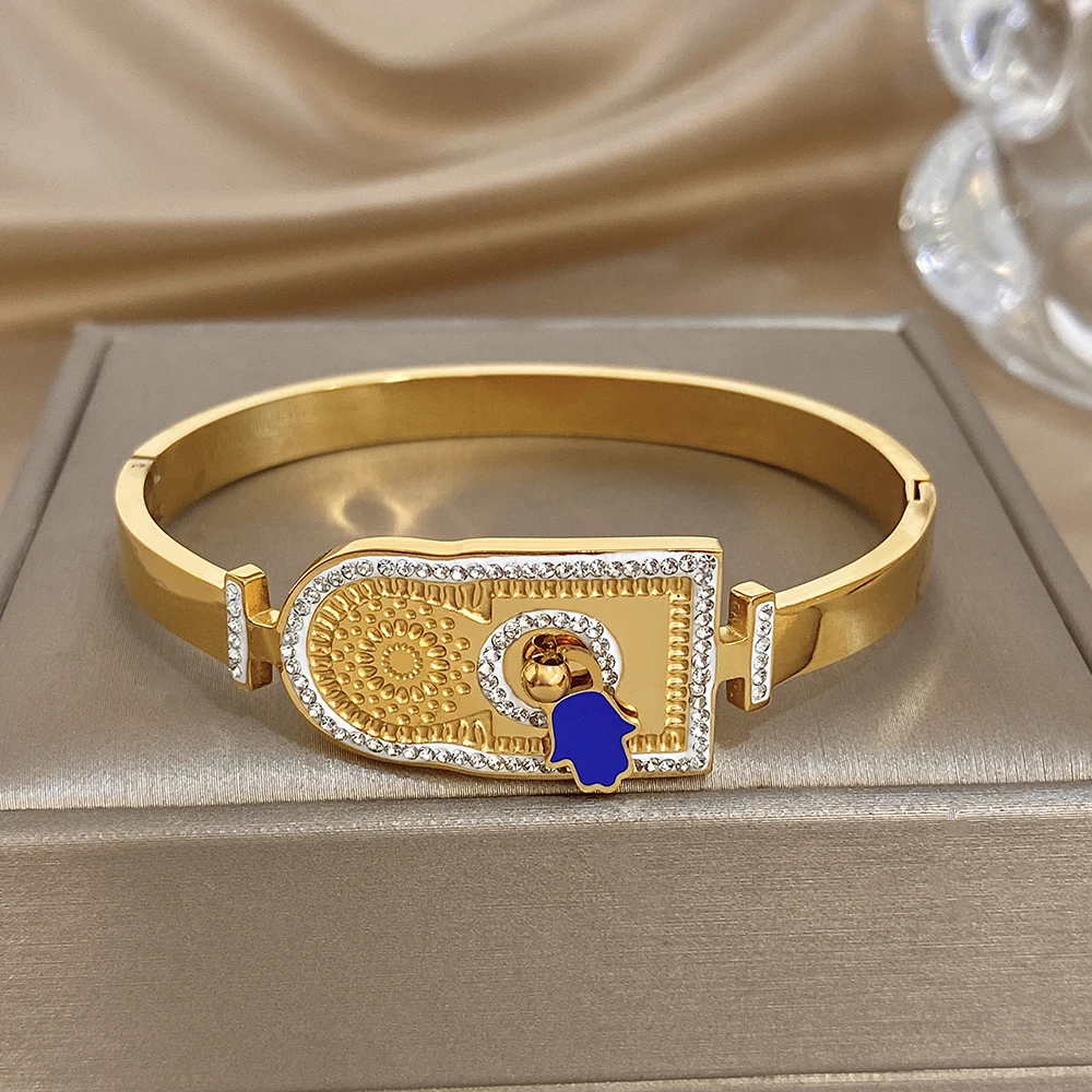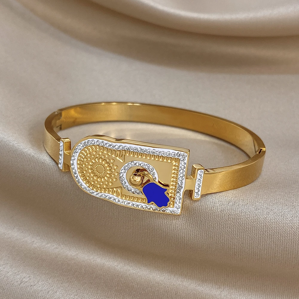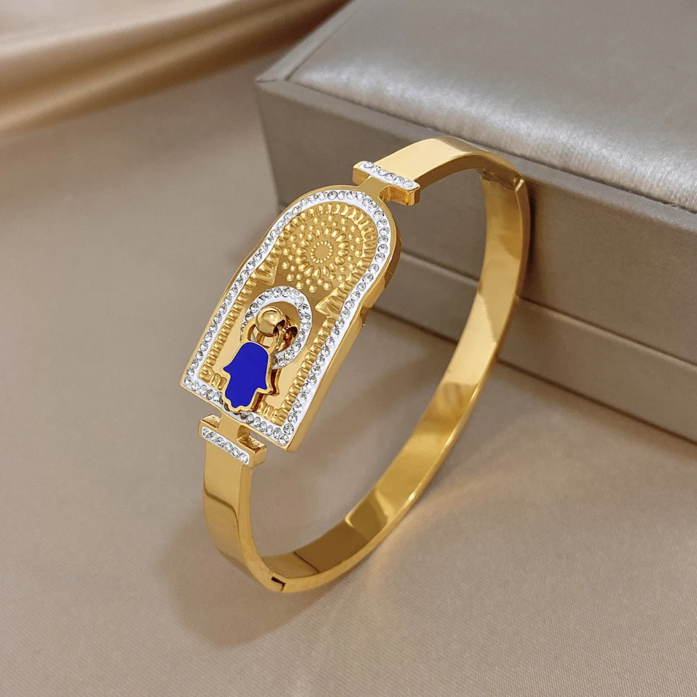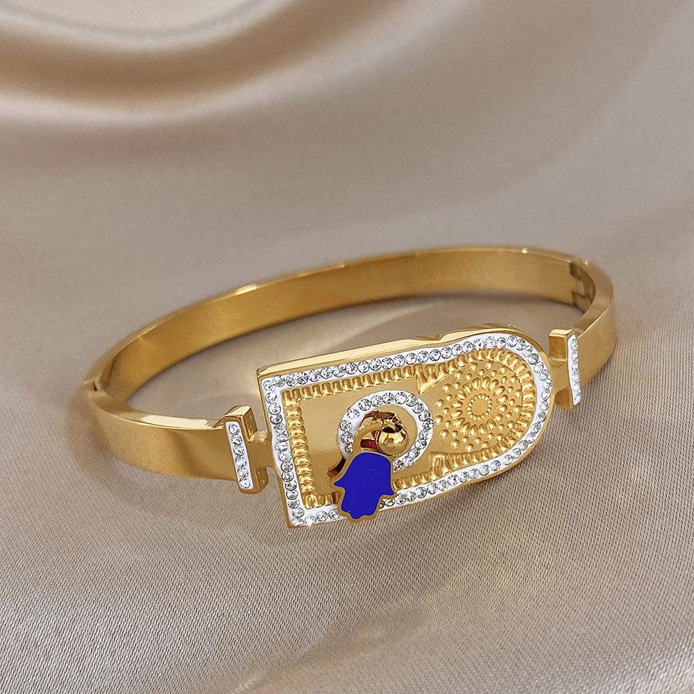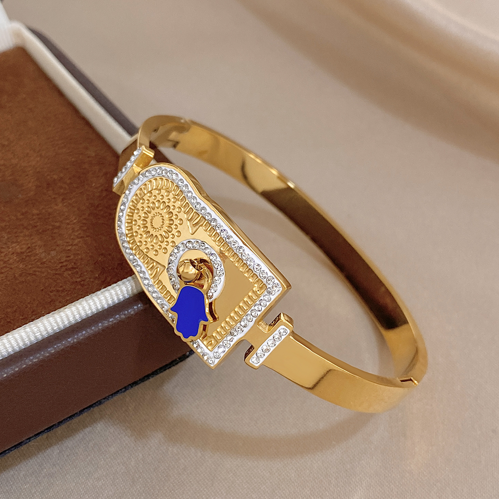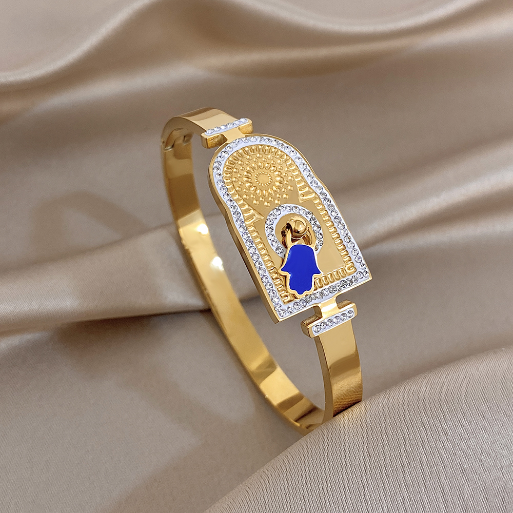 Greatera Rhinestone Blue Palm Shape Women’s Cuff Bracelets Creative Unique Popular Smooth-surface Design Bangle European America