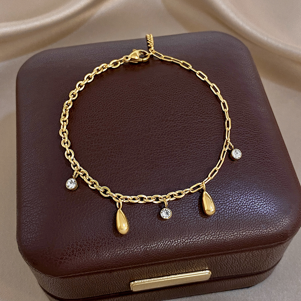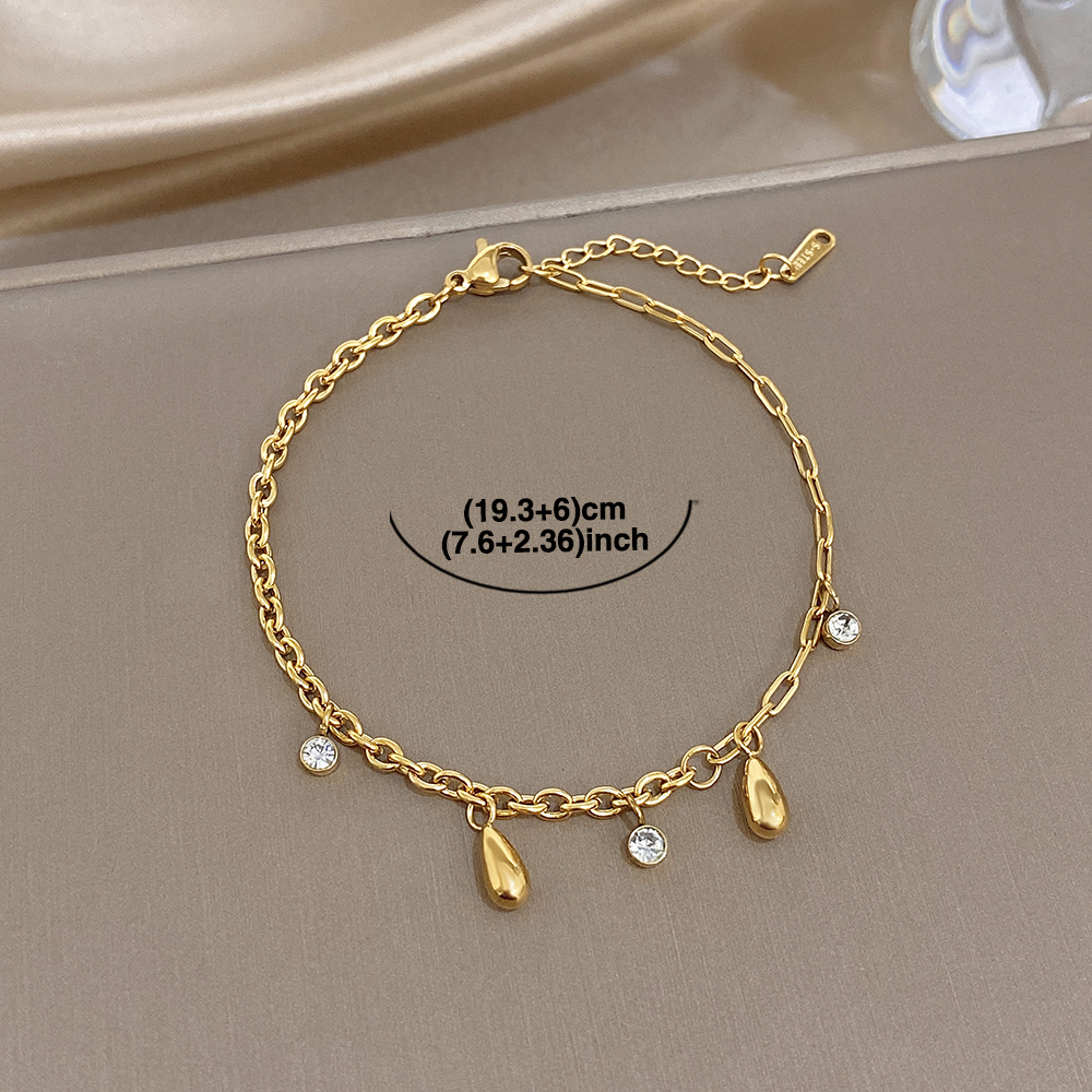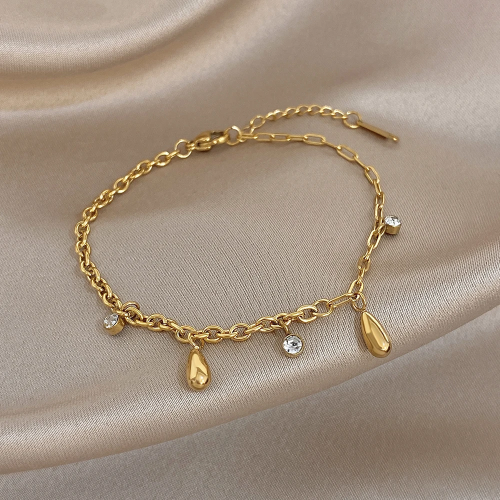 Greatera Small Gold Fine Chain Cubic Zircon Filled Water Drop Shape Bracelet Simple Temperament Stainless Steel Women’s Bangle