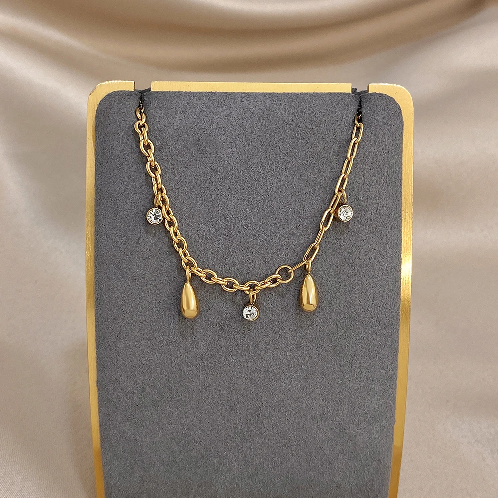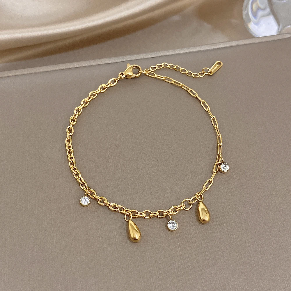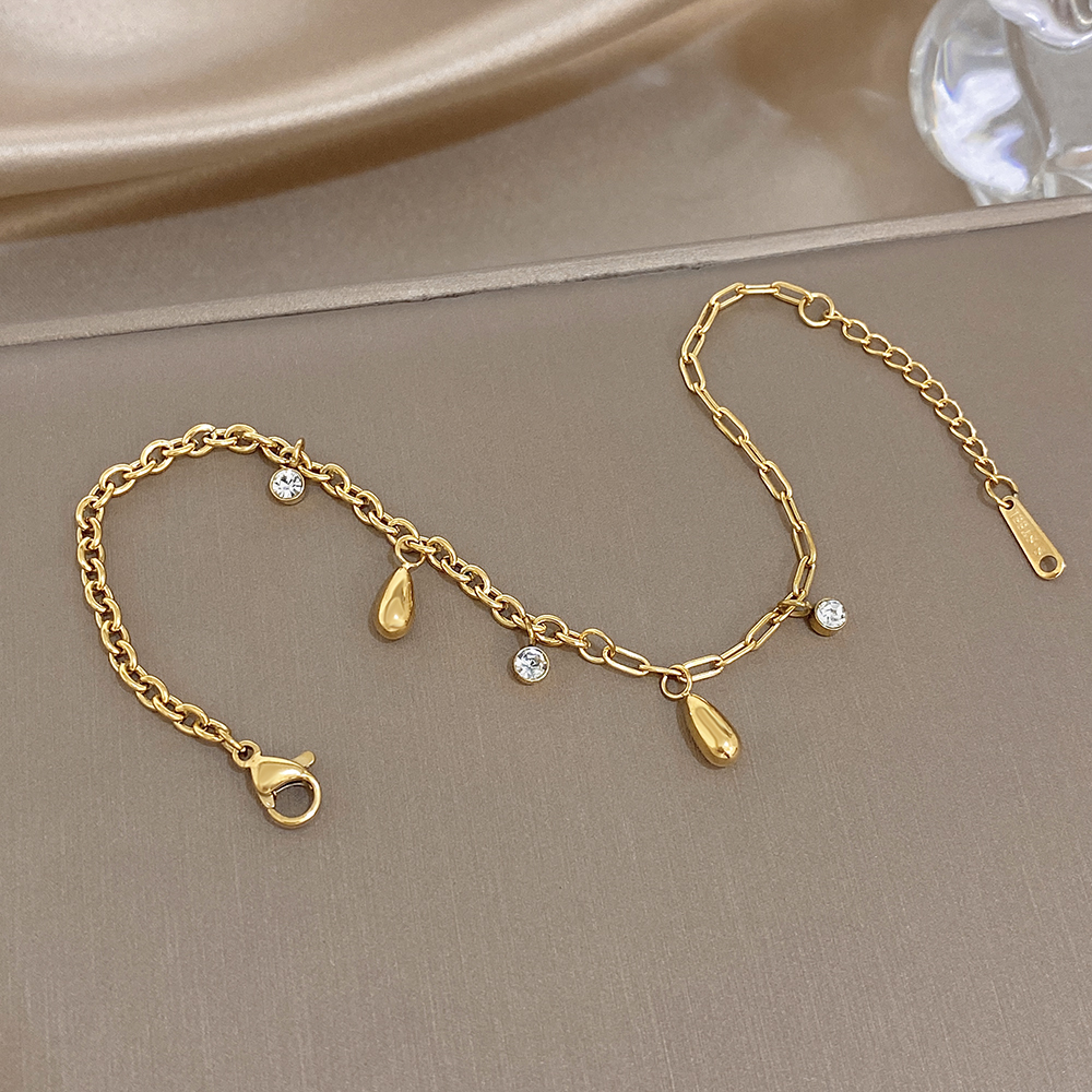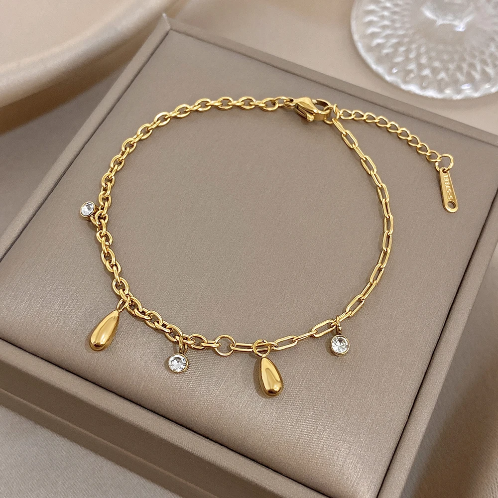 Greatera Small Gold Fine Chain Cubic Zircon Filled Water Drop Shape Bracelet Simple Temperament Stainless Steel Women’s Bangle
