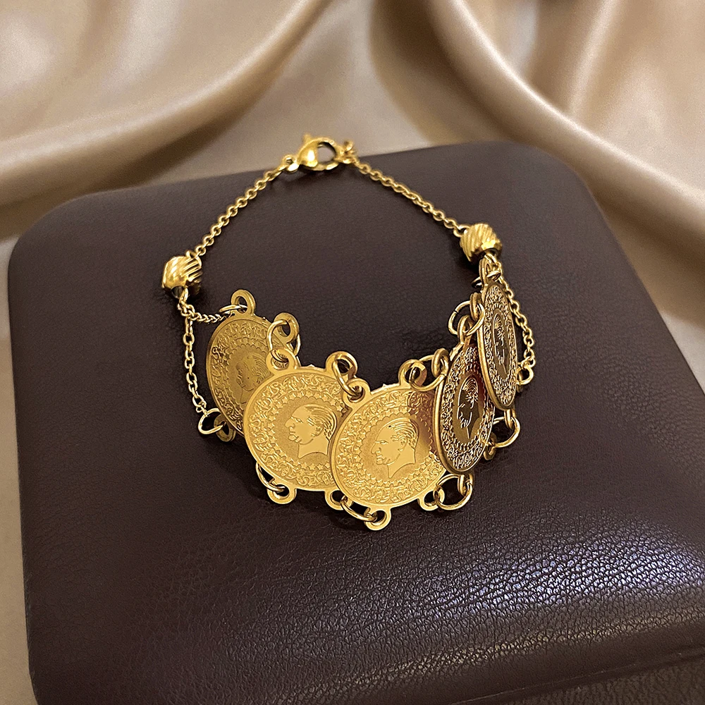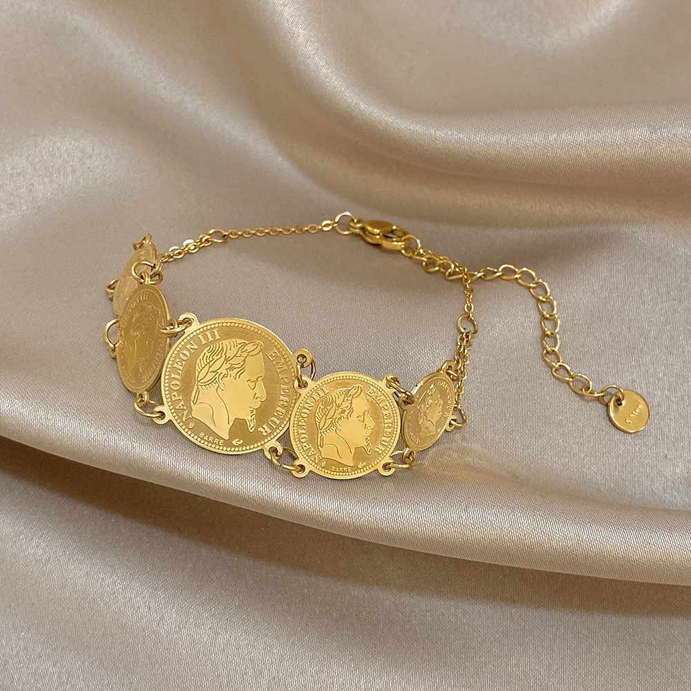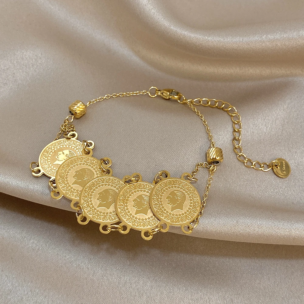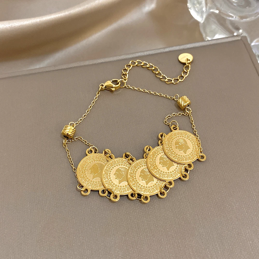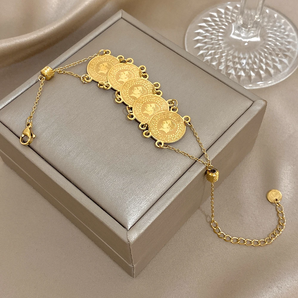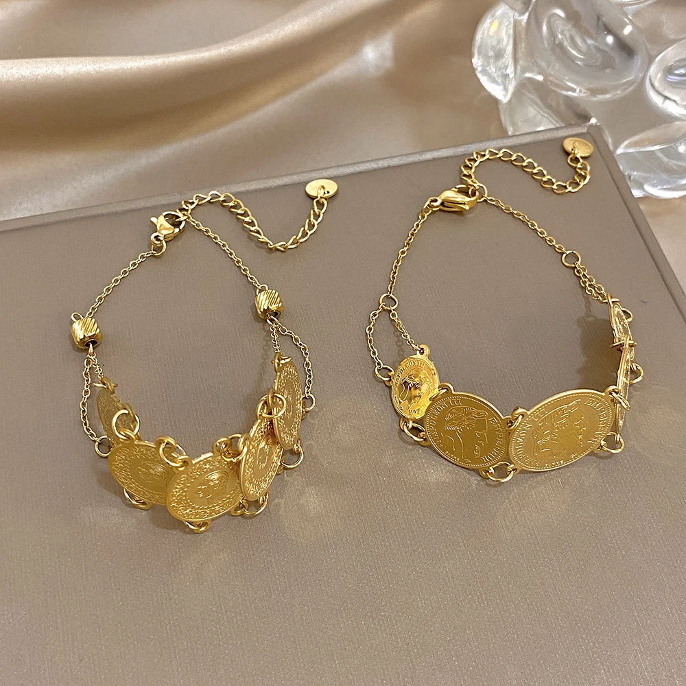 Greatera Stainless Steel Chain Bracelet Different Size Round Head Shape Waterproof Plated Gold Women’s Bangle European American
