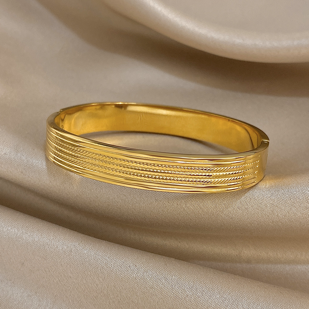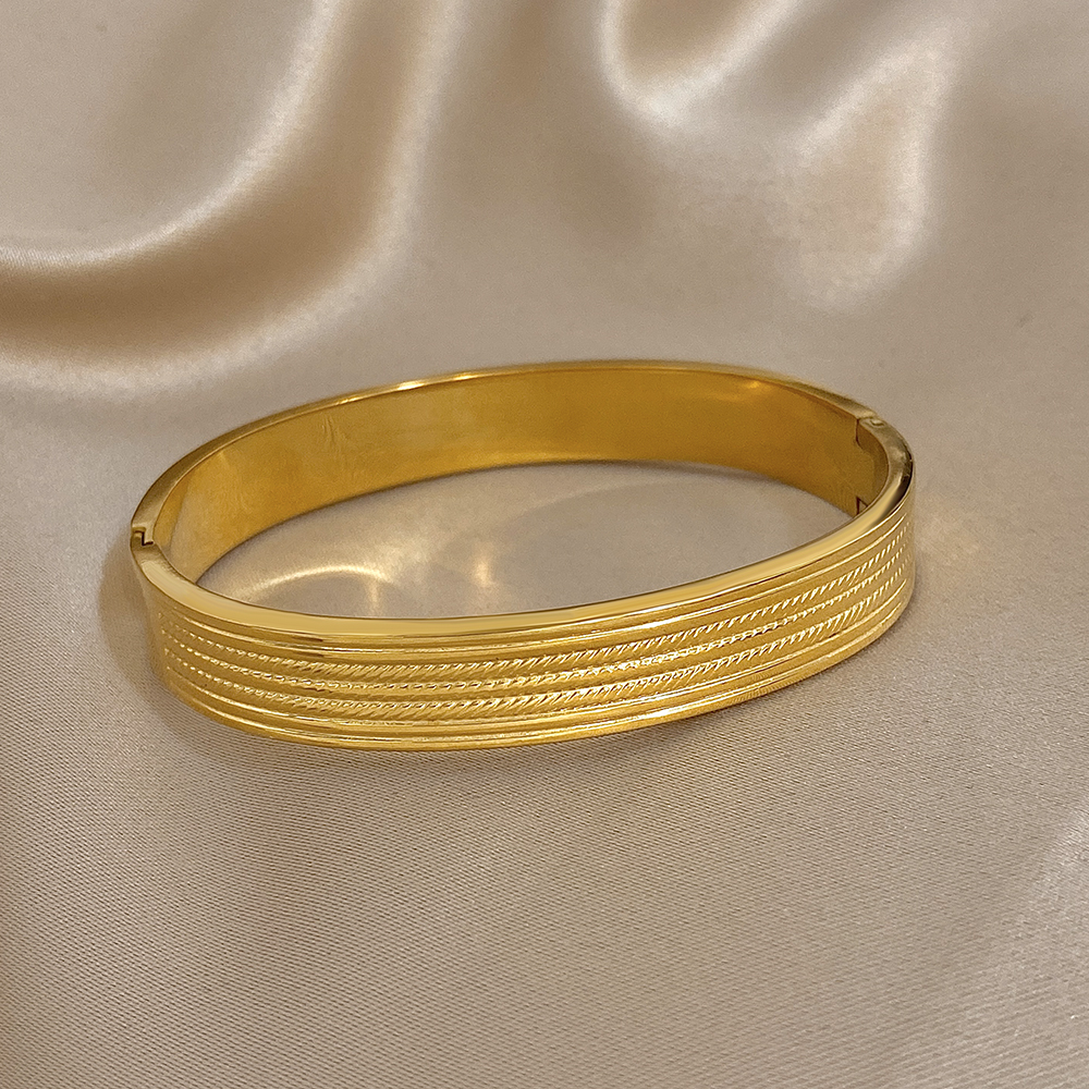 Greatera Stainless Steel Textured Cuff Bracelet For Women Gold Color Waterproof Light Luxury Simple Popular Bangle Jewelry Gift