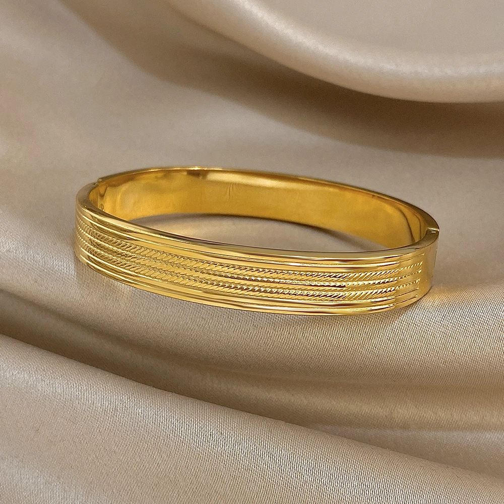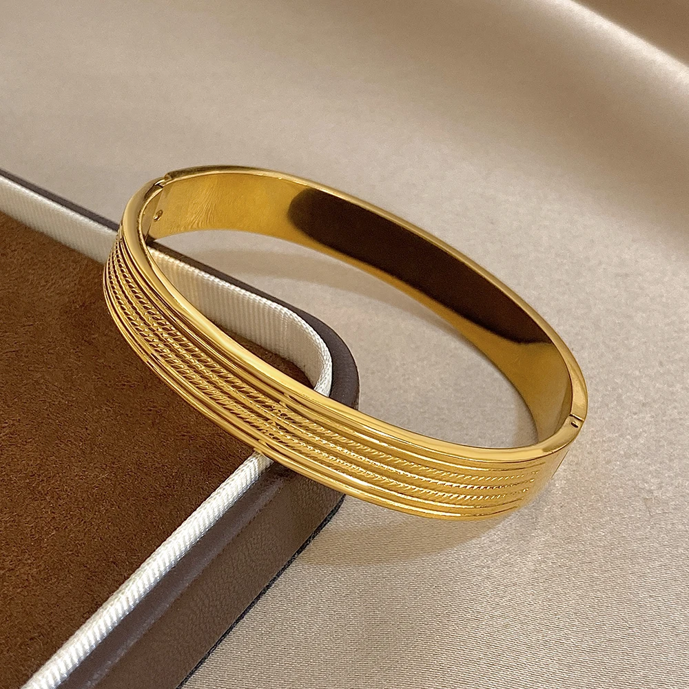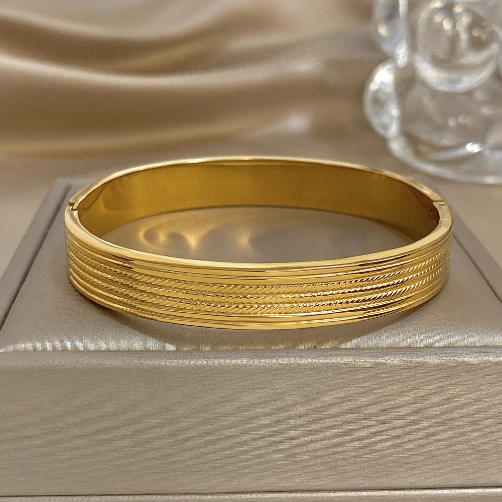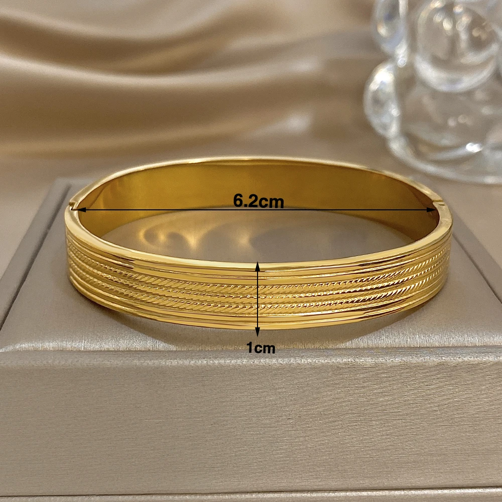 Greatera Stainless Steel Textured Cuff Bracelet For Women Gold Color Waterproof Light Luxury Simple Popular Bangle Jewelry Gift