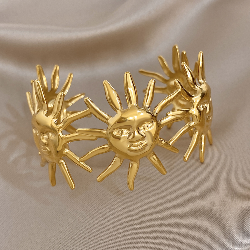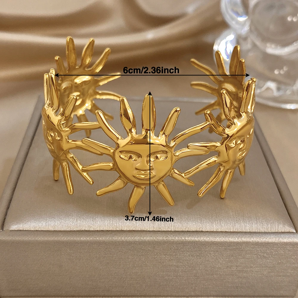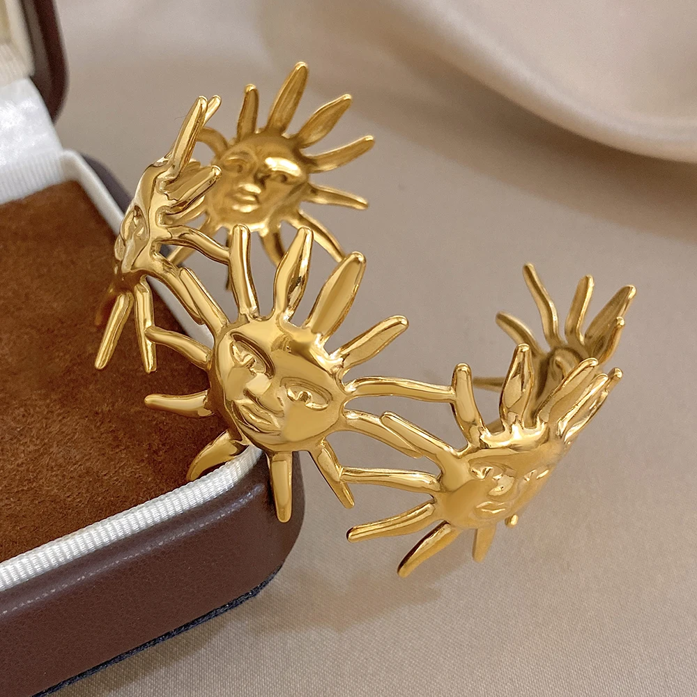 Greatera Sun Flower Face Open Bracelet European American Fashion Individual Design Sense Classic Style 18K Gold Women’s Bangles