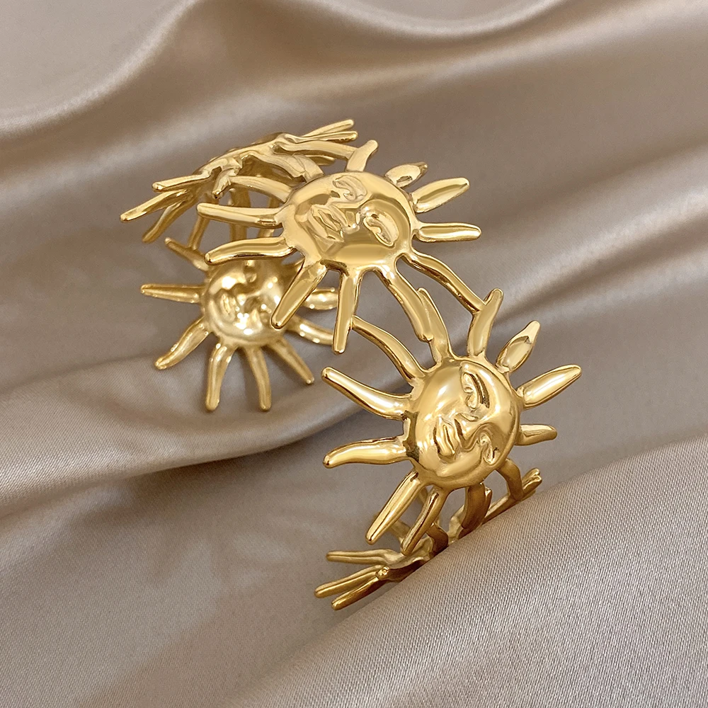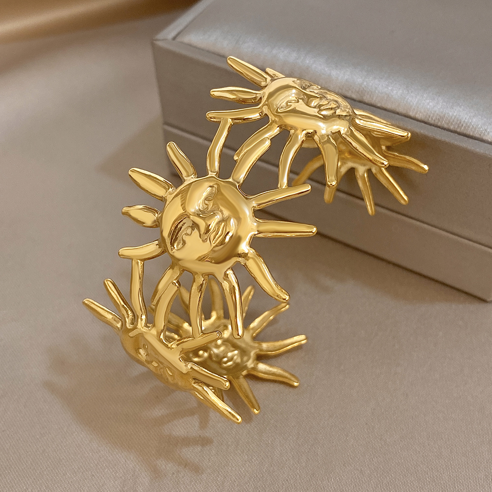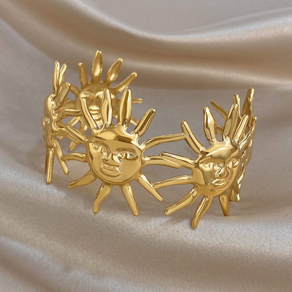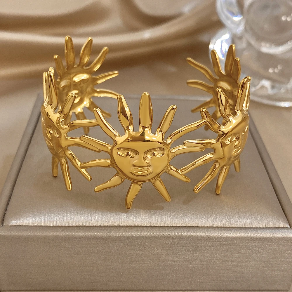 Greatera Sun Flower Face Open Bracelet European American Fashion Individual Design Sense Classic Style 18K Gold Women’s Bangles