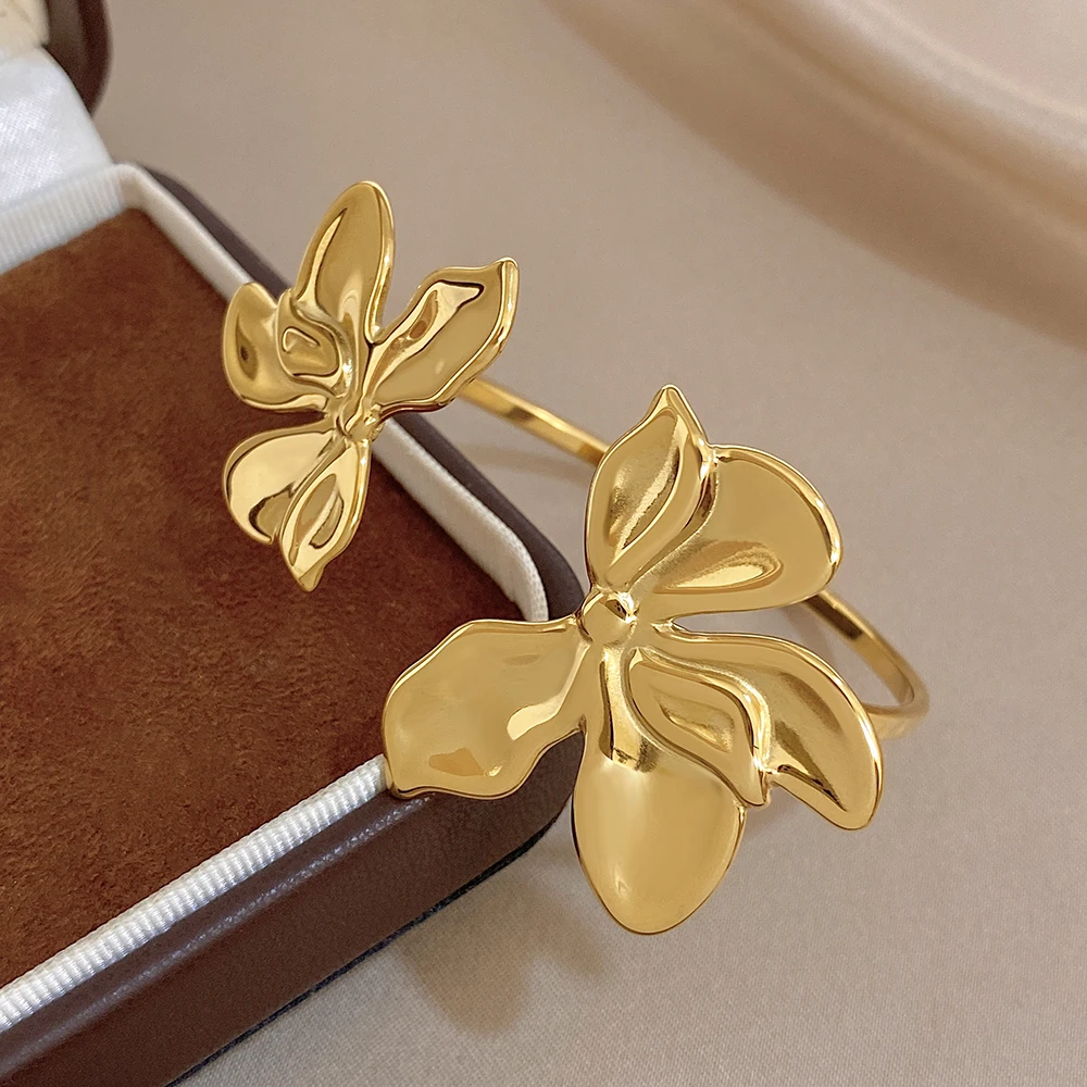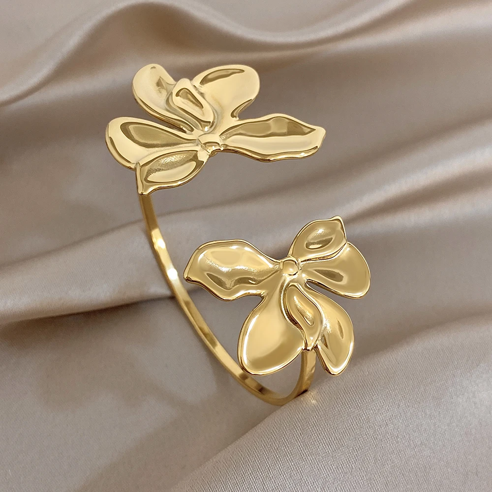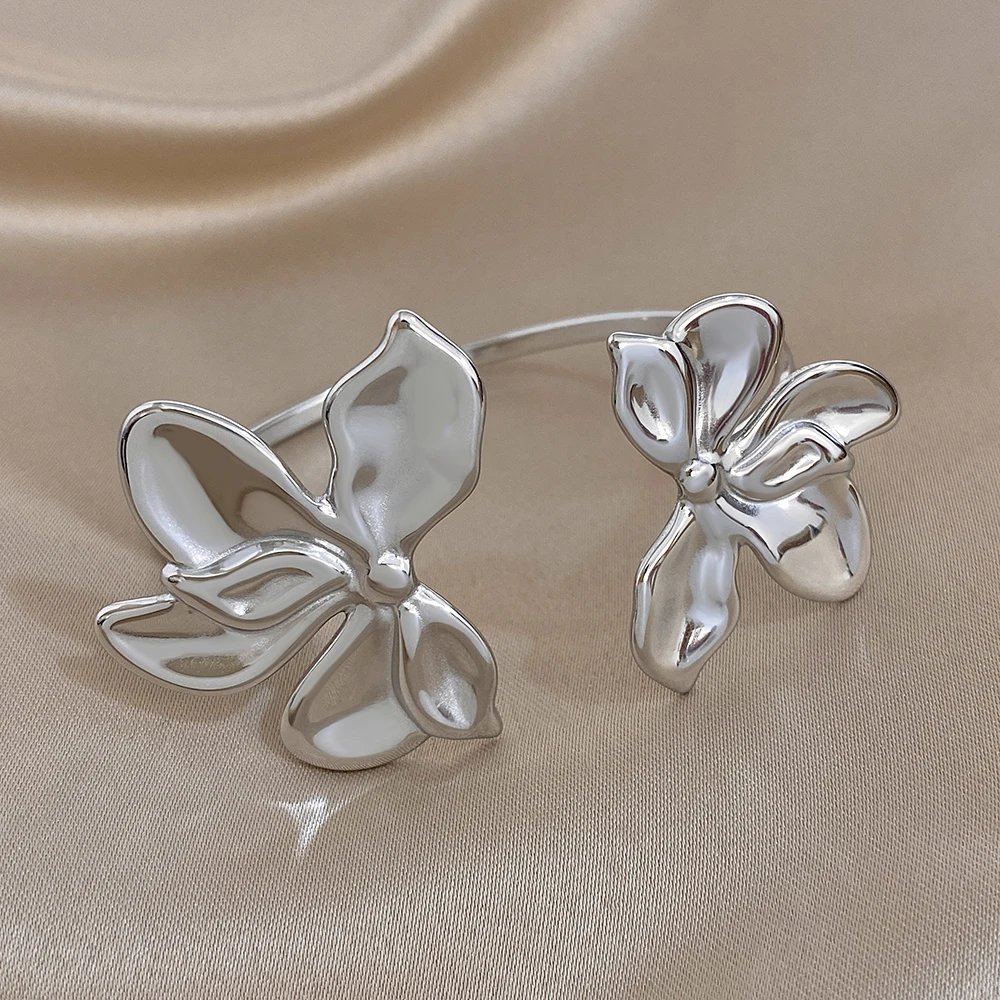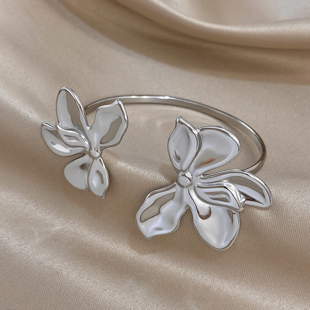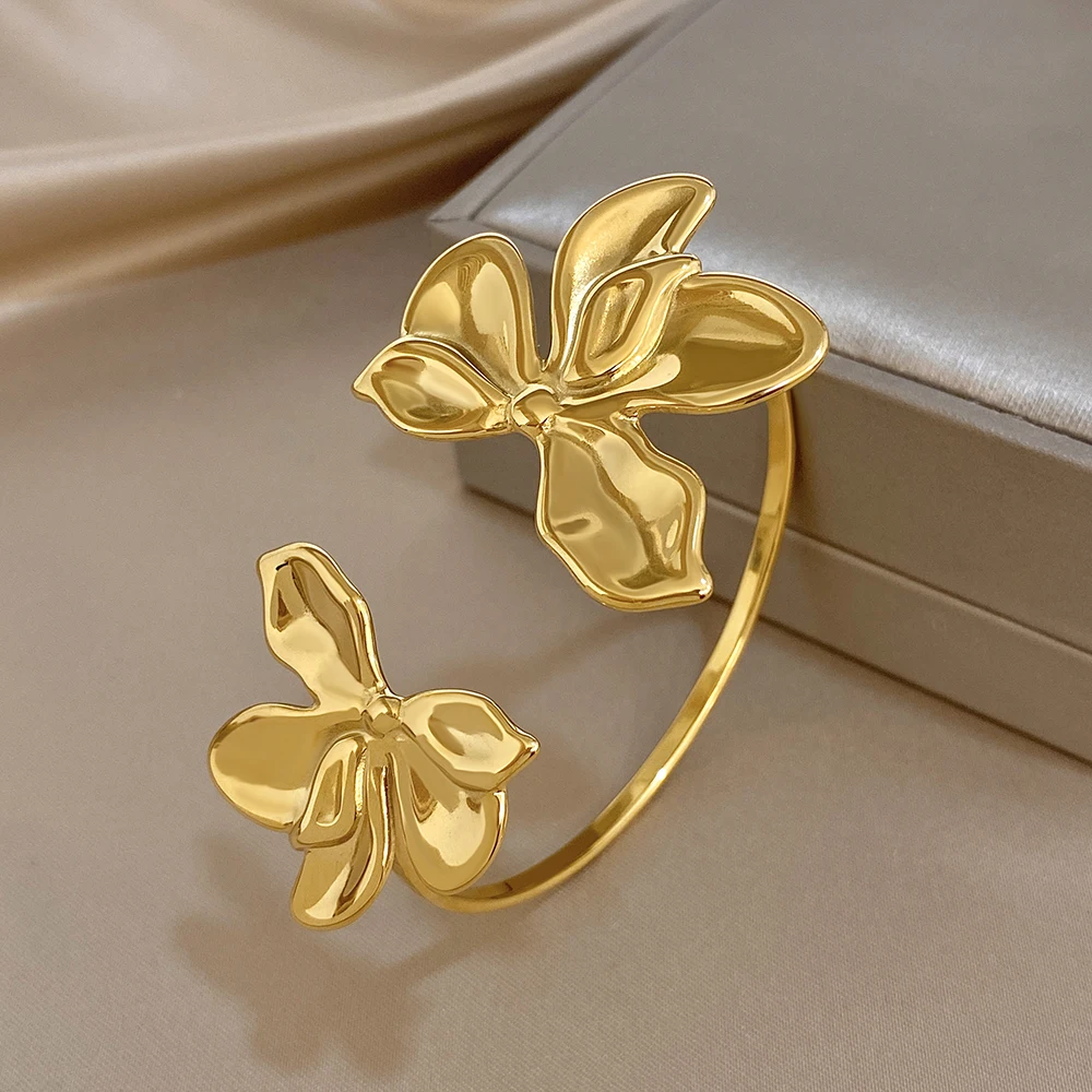 Greatera Three-dimensional Stainless Steel Flower Open Bracelet For Women Men Classic Waterproof Stainless Steel Wedding Jewelry