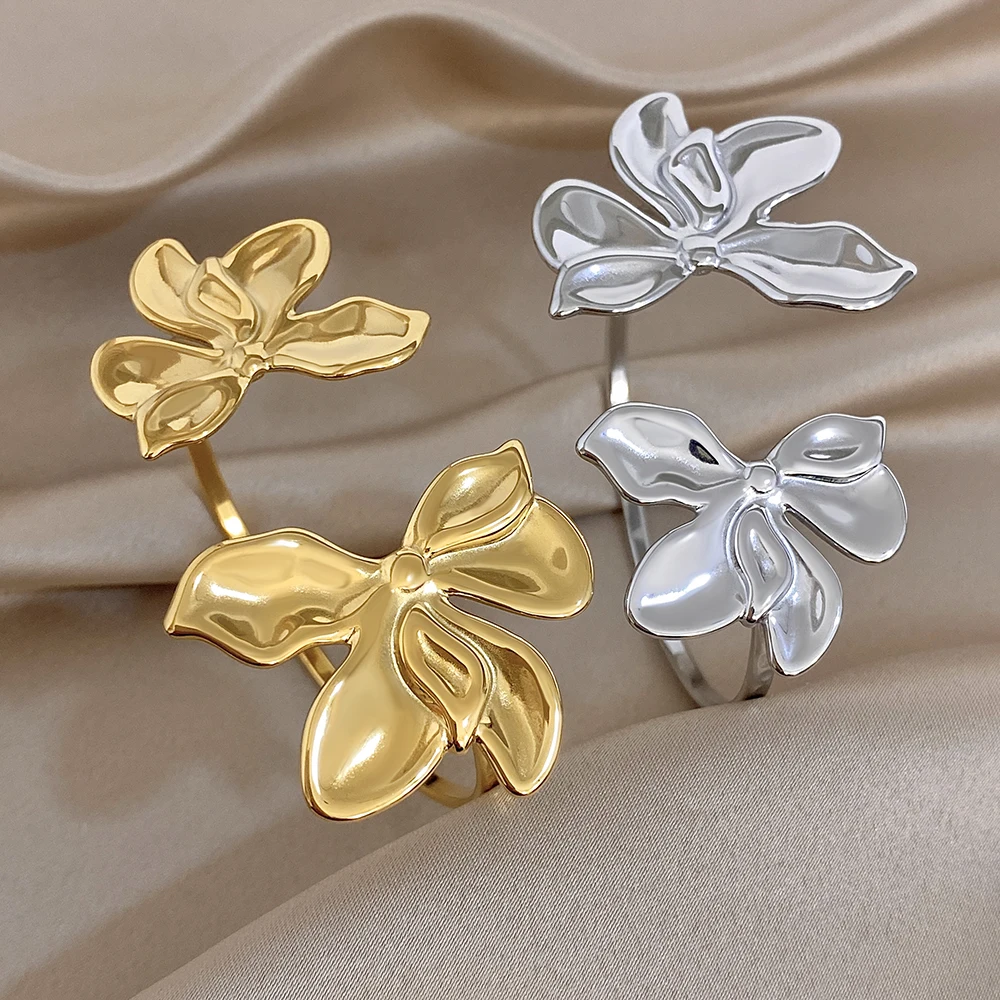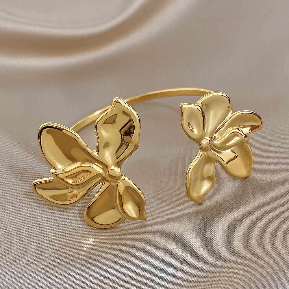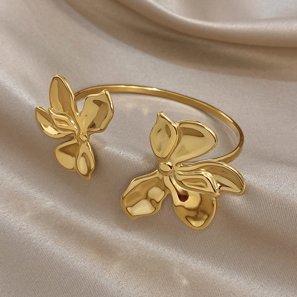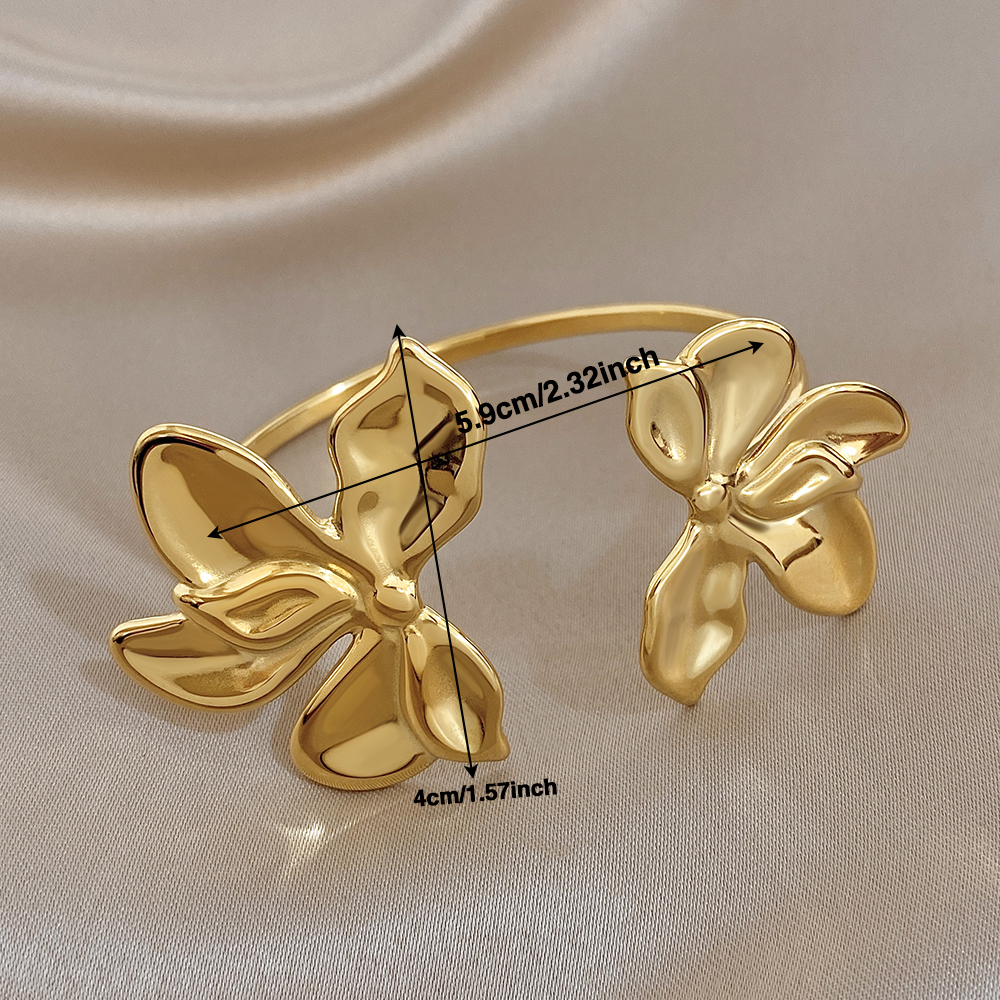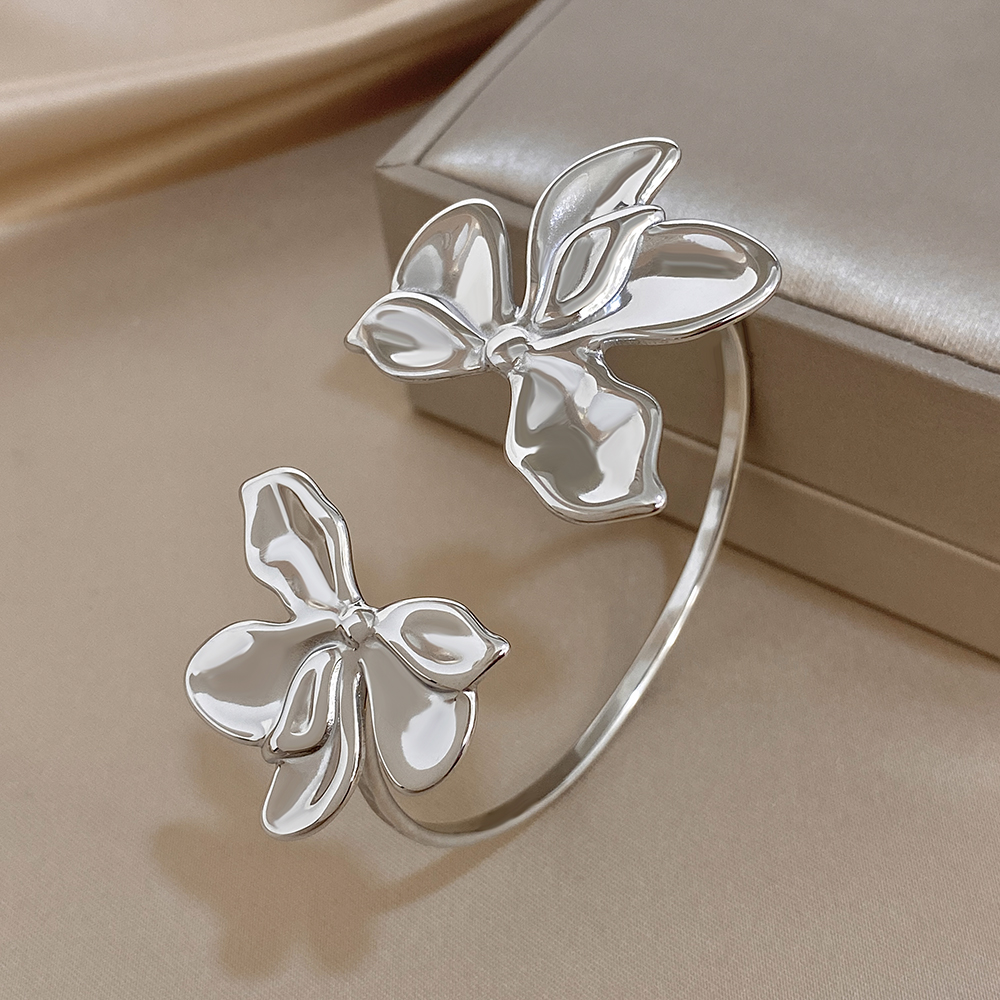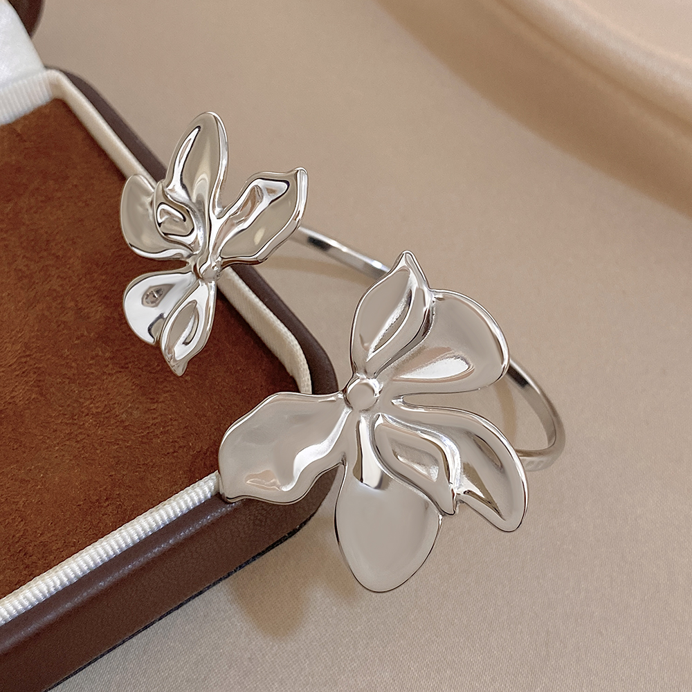 Greatera Three-dimensional Stainless Steel Flower Open Bracelet For Women Men Classic Waterproof Stainless Steel Wedding Jewelry