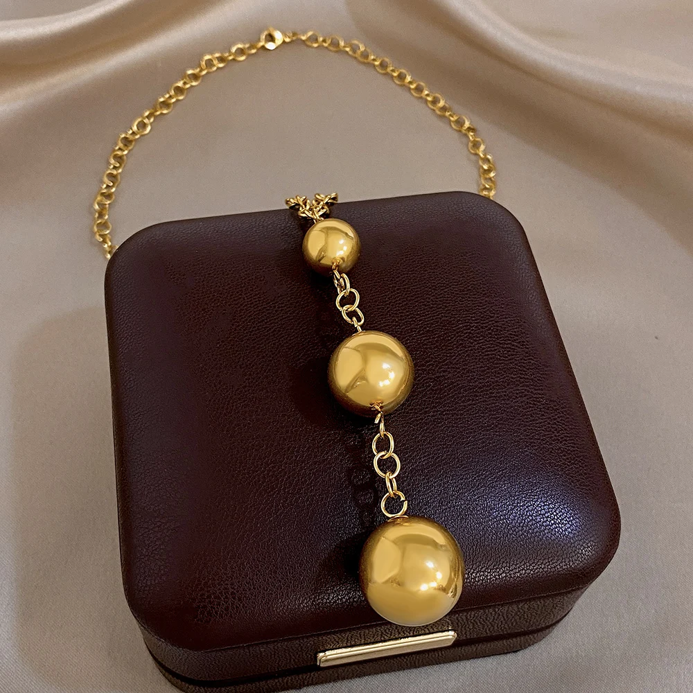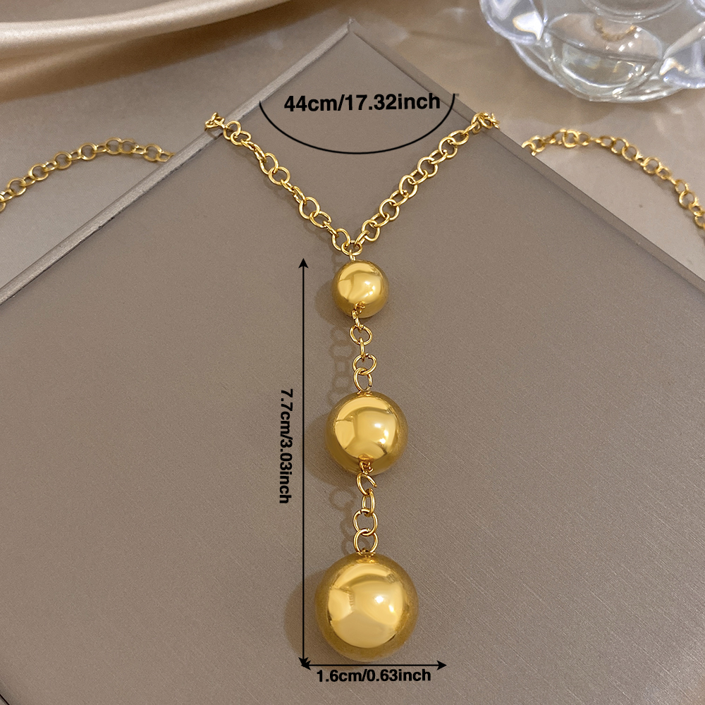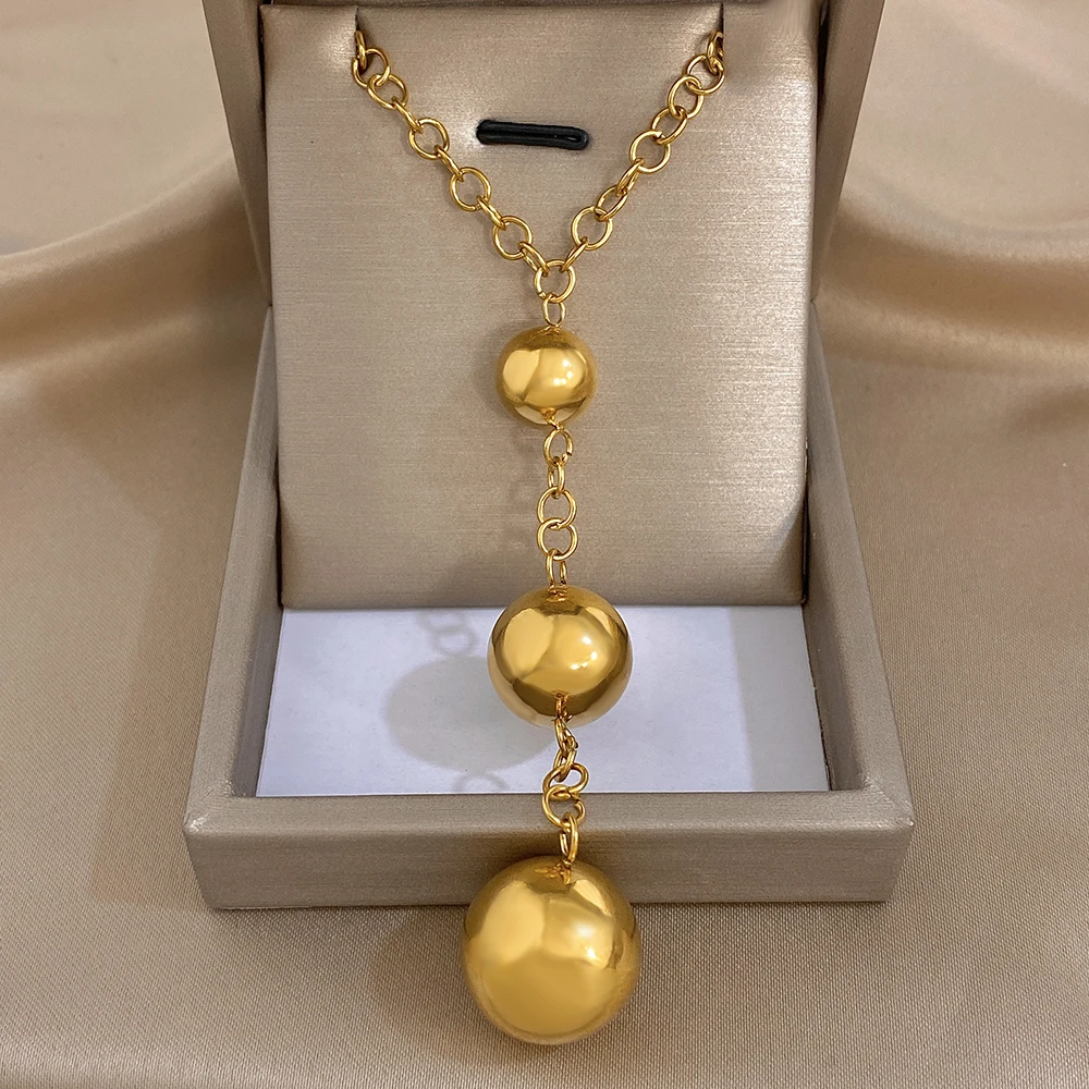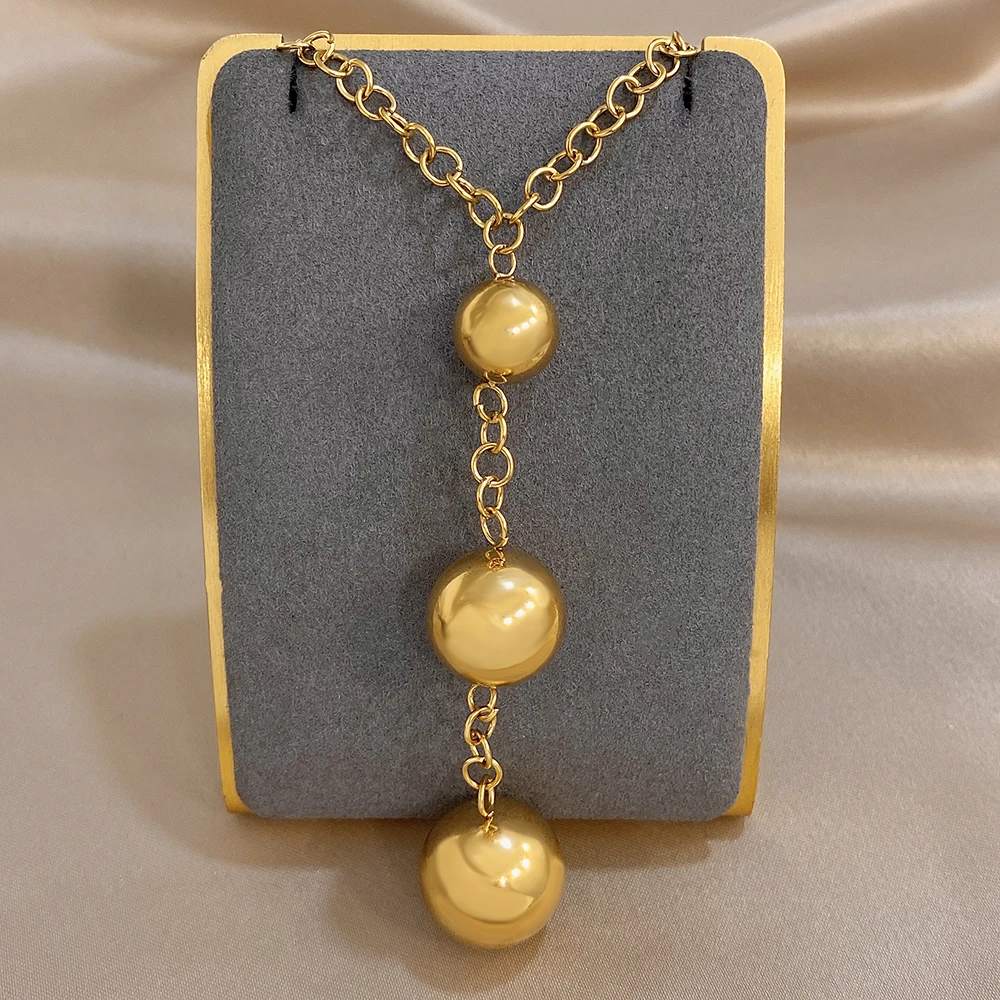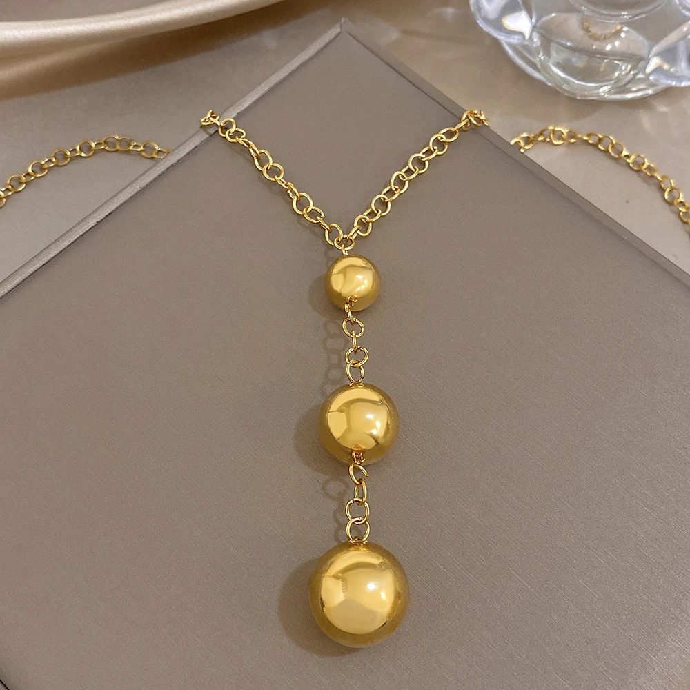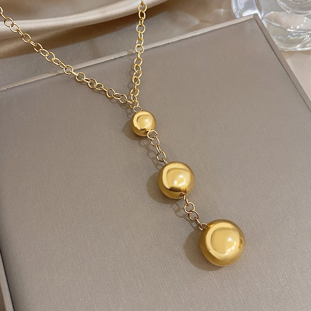 Greatera Three Gold Balls Pendant Necklaces Personality Smooth-surface Stainless Steel Charm Women’s Collarbone Chain Jewelry