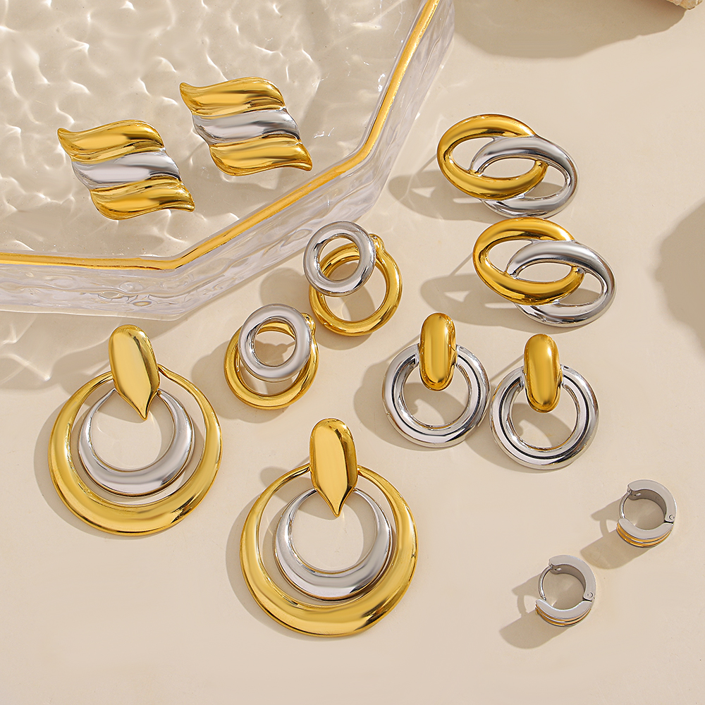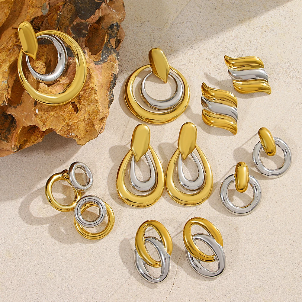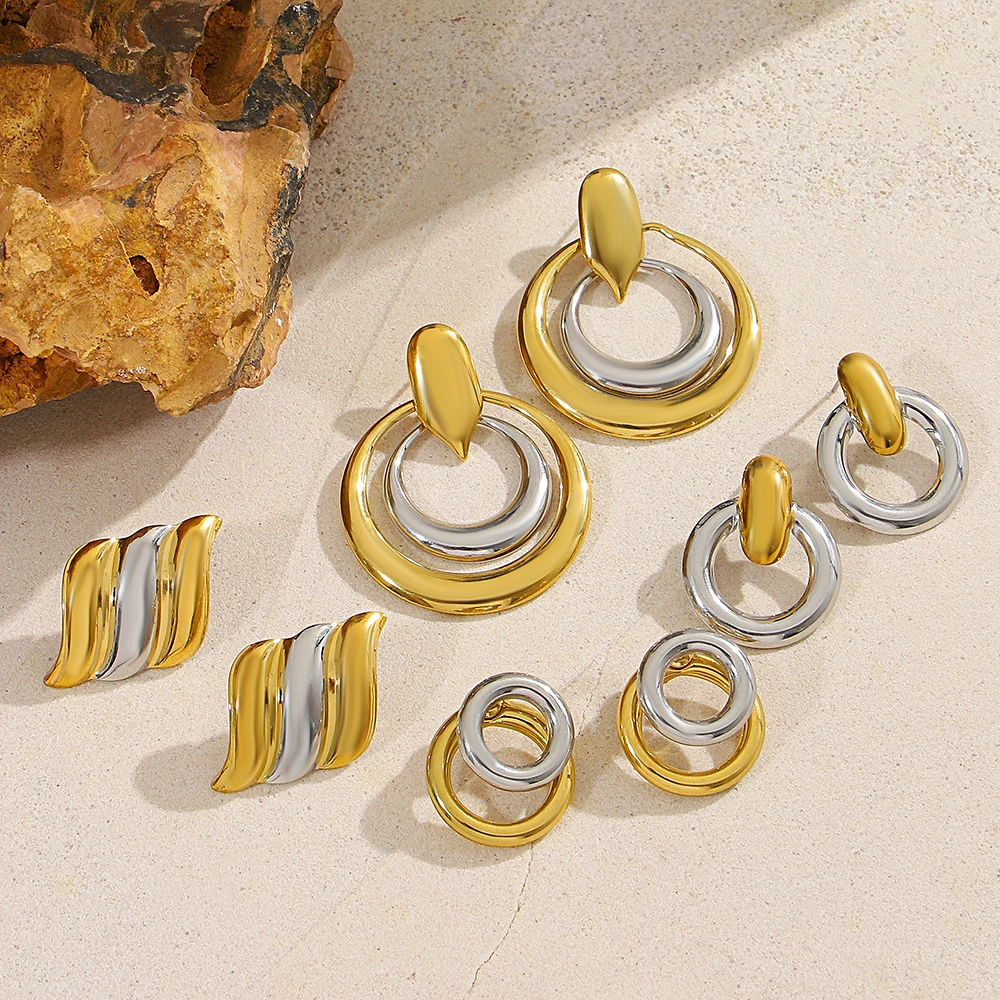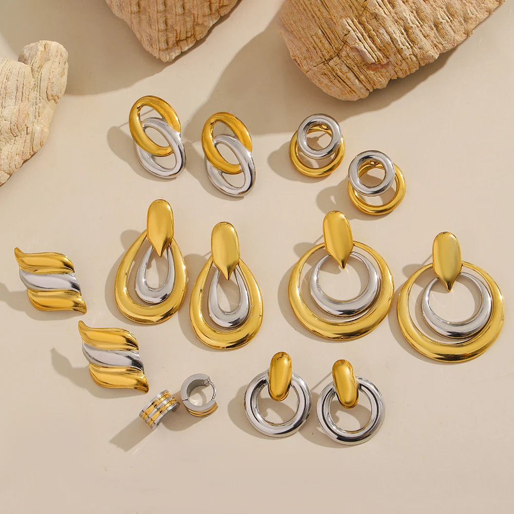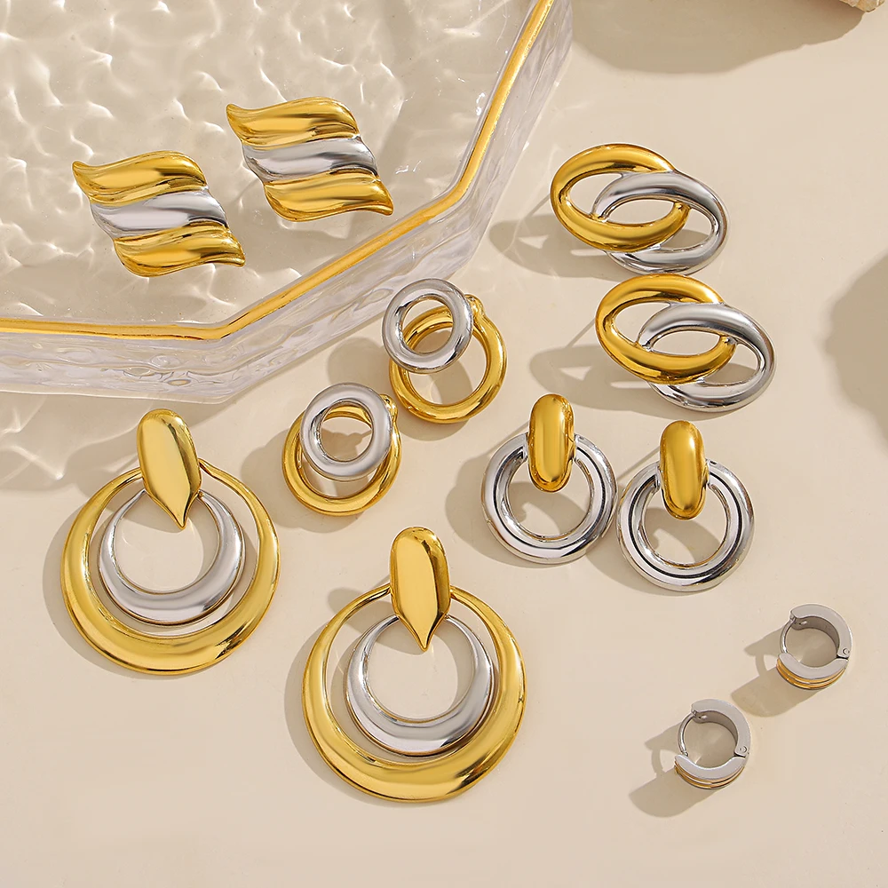 Greatera Two Tone Series Plated Gold Earrings For Women Classic Personality Stainless Steel Waterproof Hollow Out Jewelry Gifts