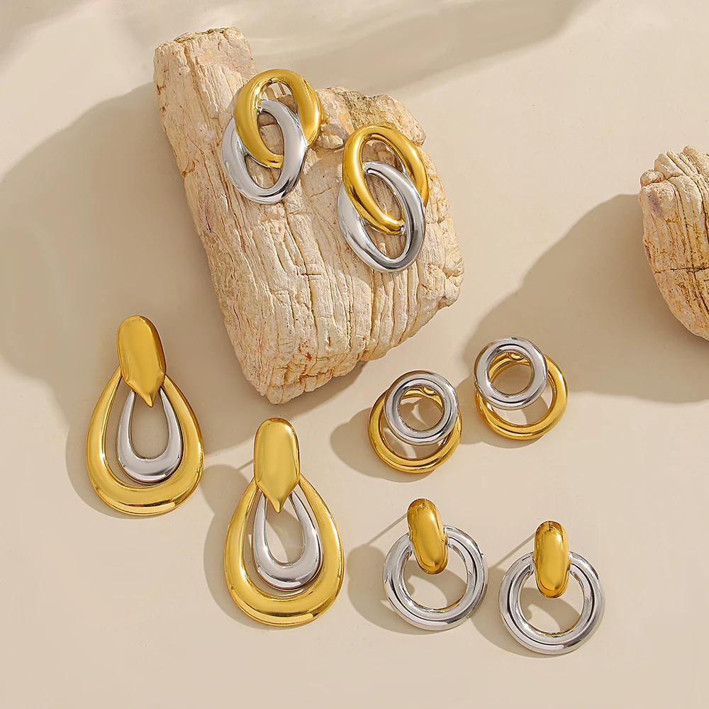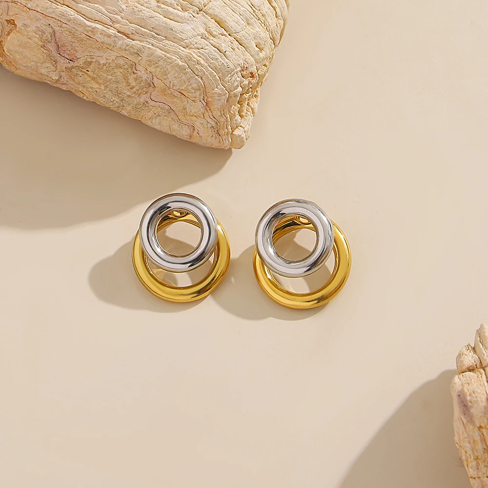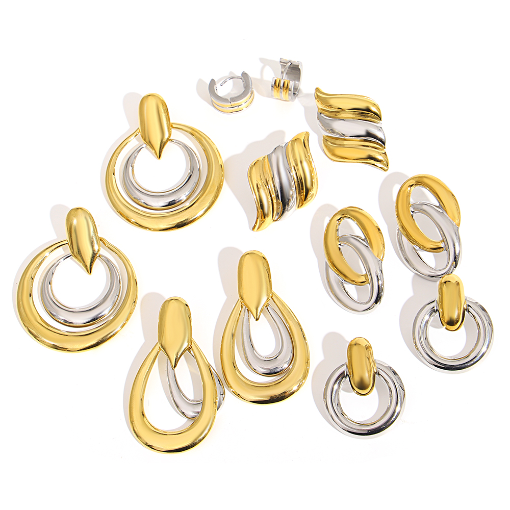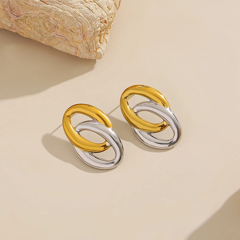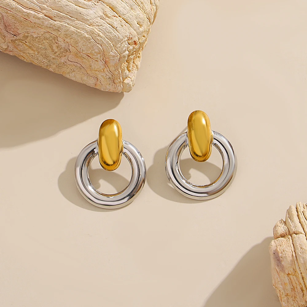 Greatera Two Tone Series Plated Gold Earrings For Women Classic Personality Stainless Steel Waterproof Hollow Out Jewelry Gifts