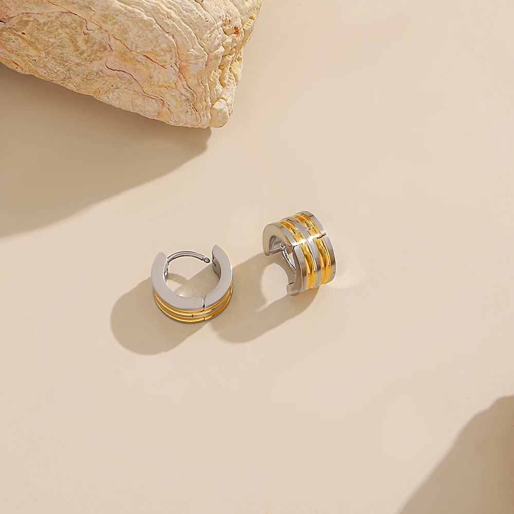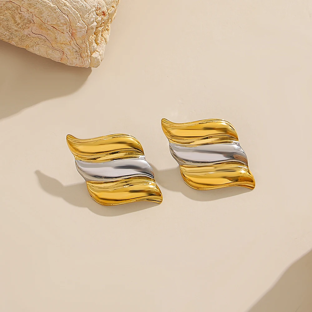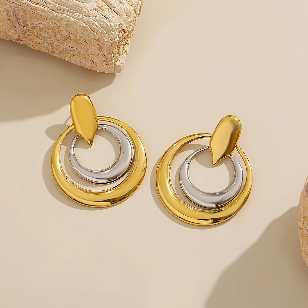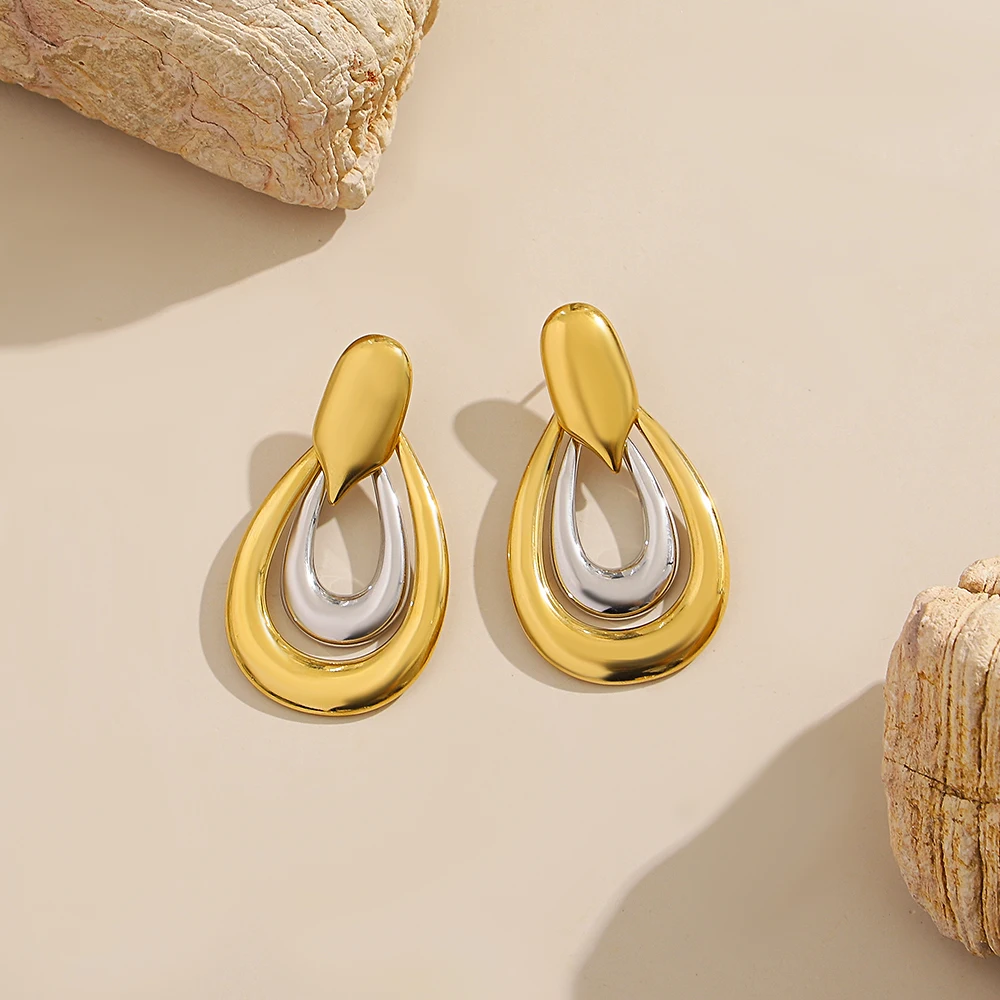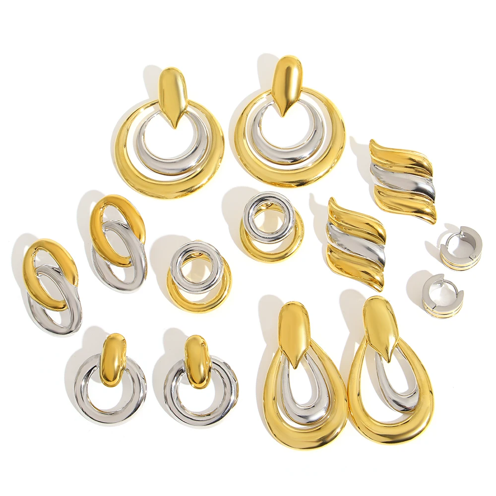 Greatera Two Tone Series Plated Gold Earrings For Women Classic Personality Stainless Steel Waterproof Hollow Out Jewelry Gifts