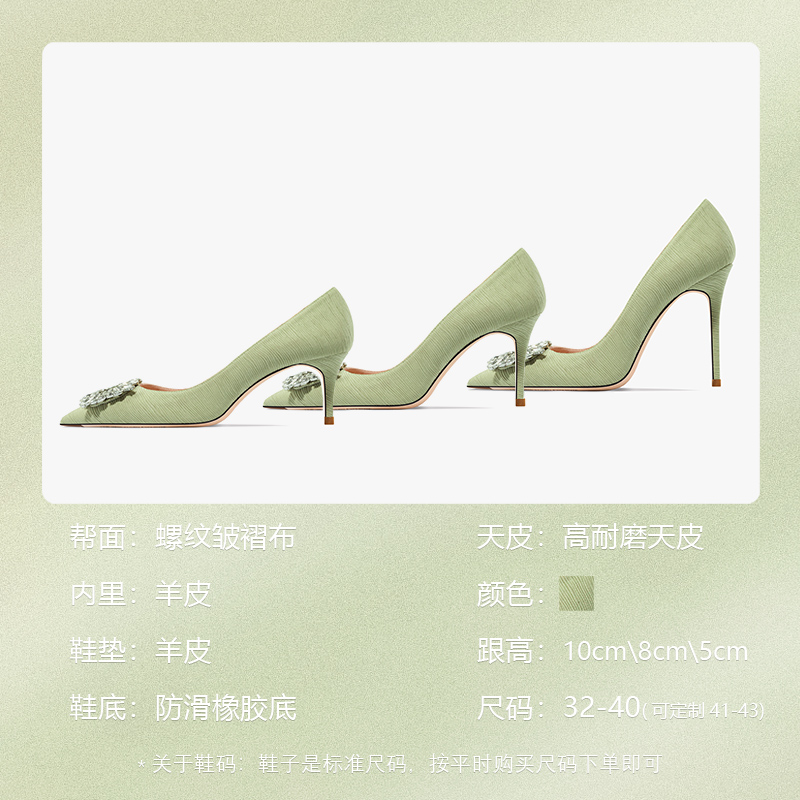 green luxury women’s shoes Rhinestone Woman Pumps Star Style High Heels Shoes Fashion Pointed Buckle Ladies Prom Party Shoes