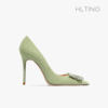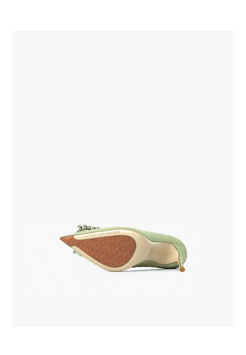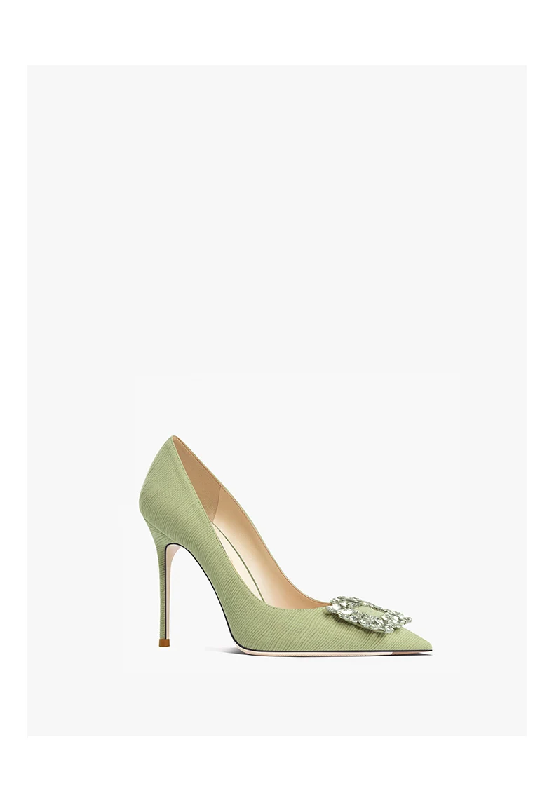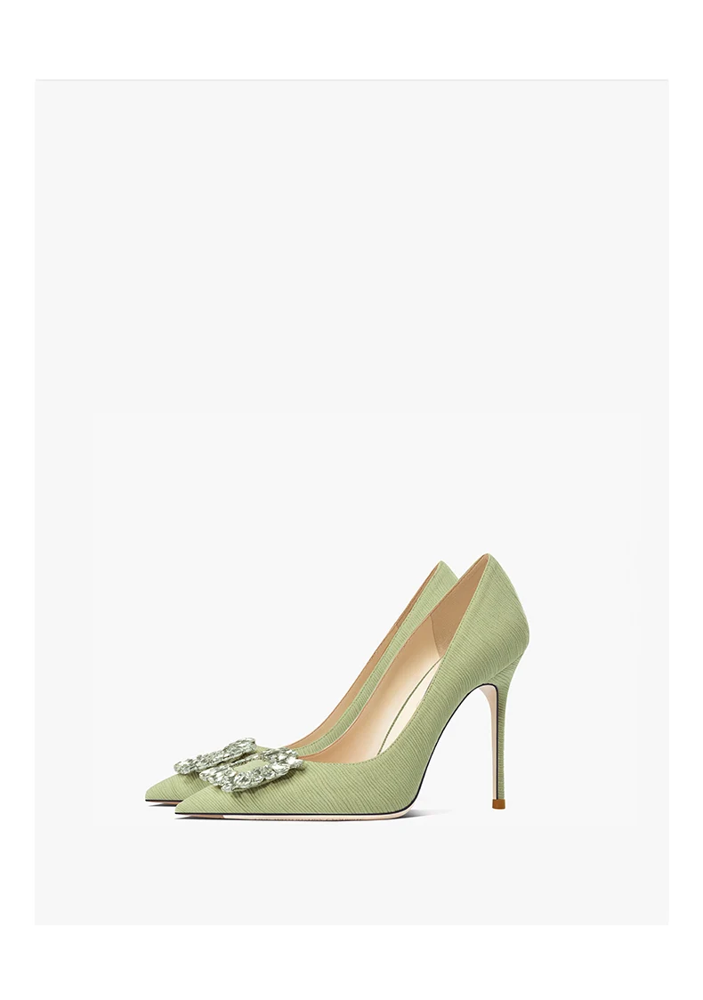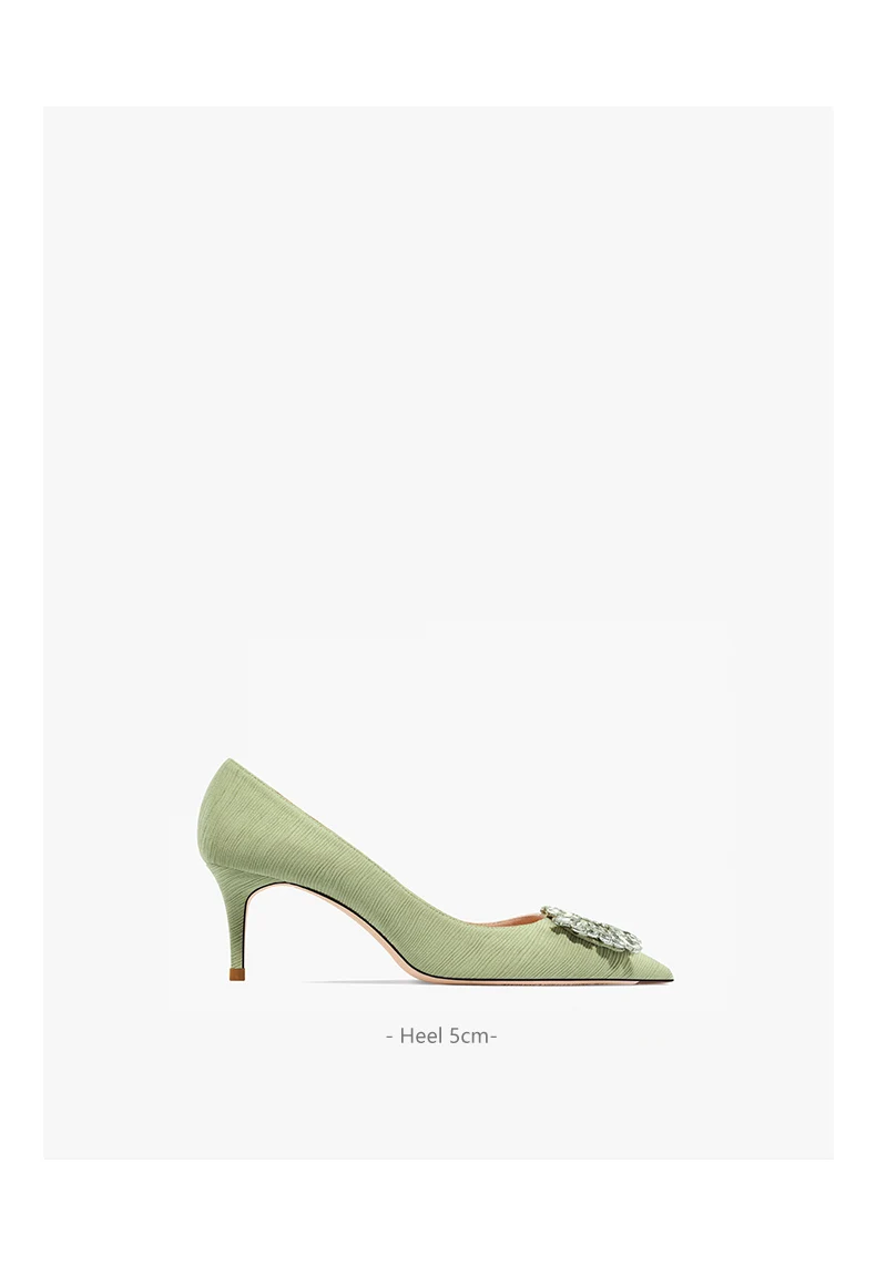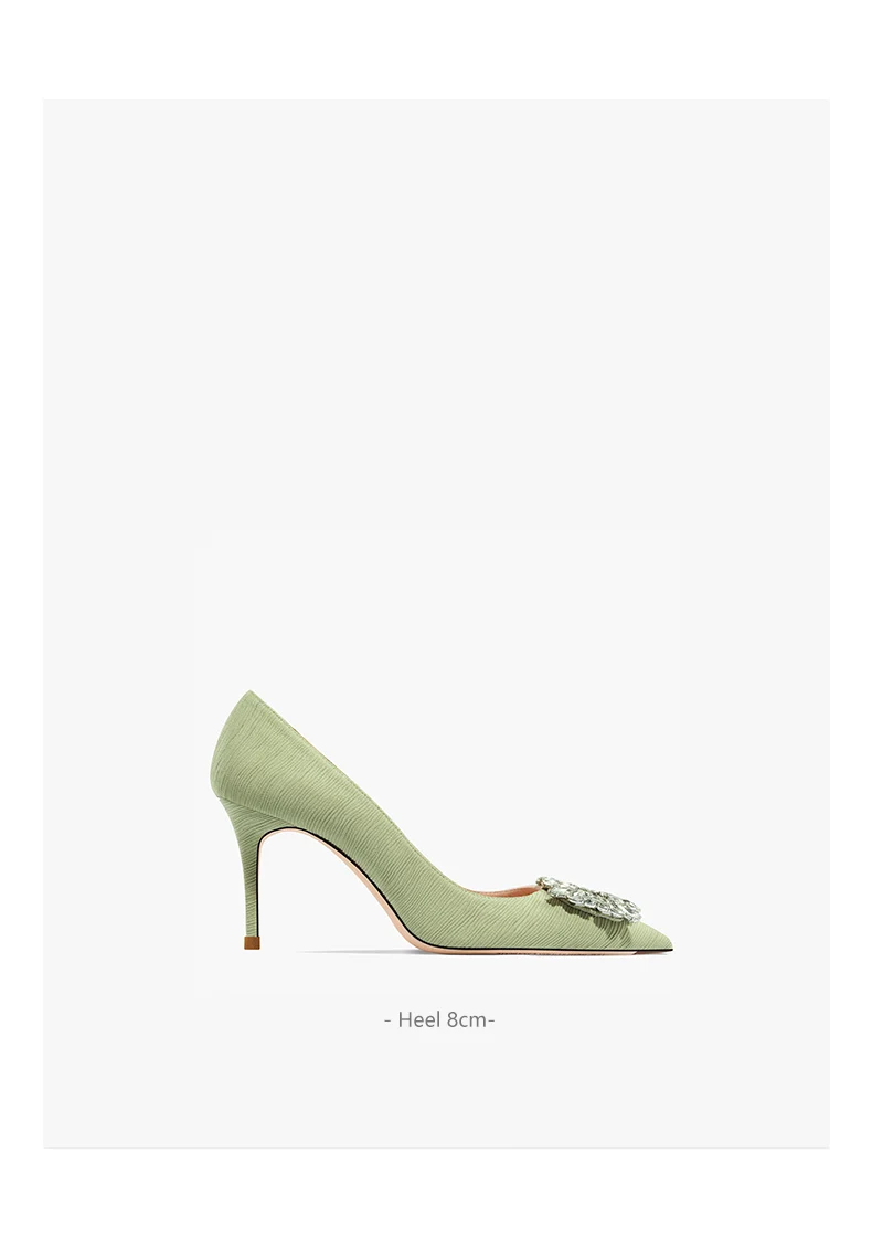 green luxury women’s shoes Rhinestone Woman Pumps Star Style High Heels Shoes Fashion Pointed Buckle Ladies Prom Party Shoes