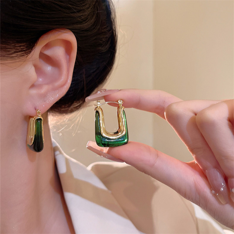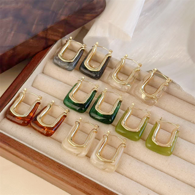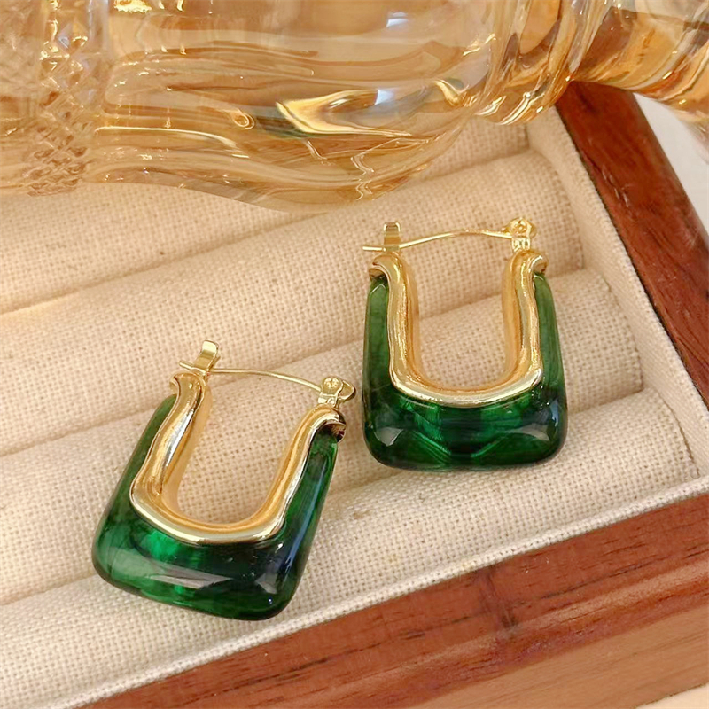 Green Pink U Shape Transparent Resin Earrings for Women Girls Geometric Irregular Stud Earring Party Daily Temperament Jewelry