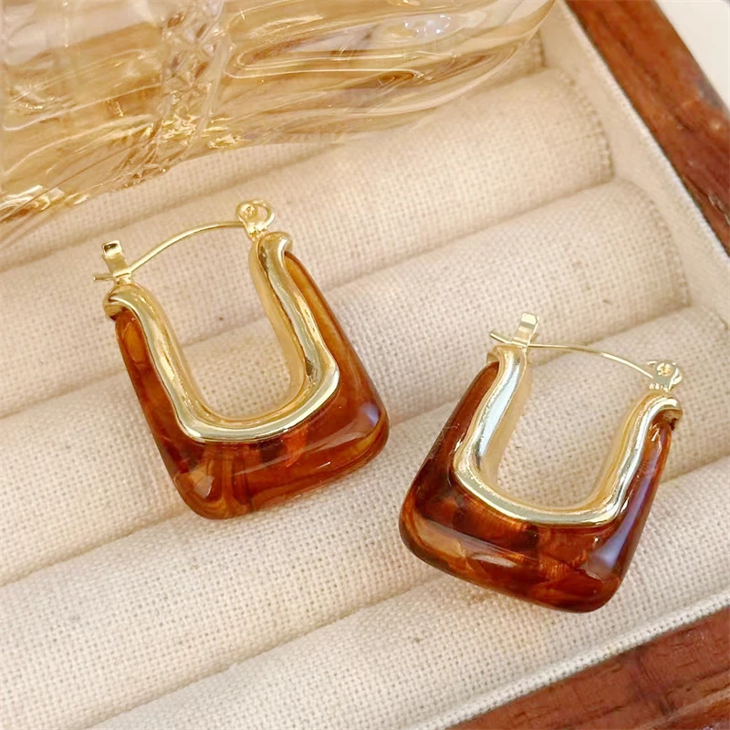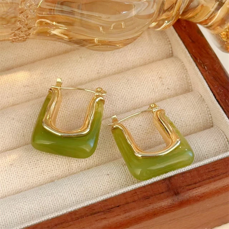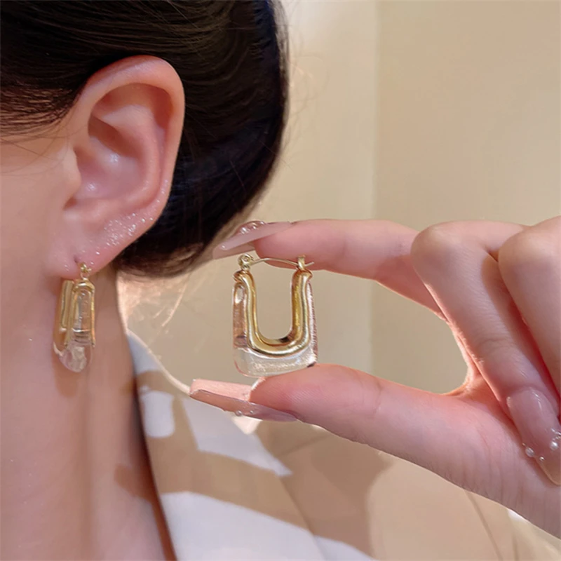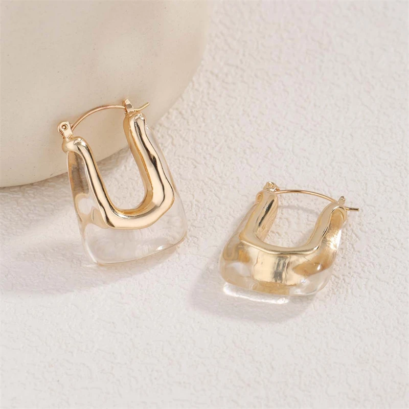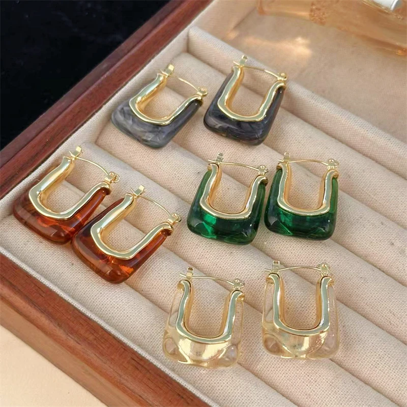 Green Pink U Shape Transparent Resin Earrings for Women Girls Geometric Irregular Stud Earring Party Daily Temperament Jewelry