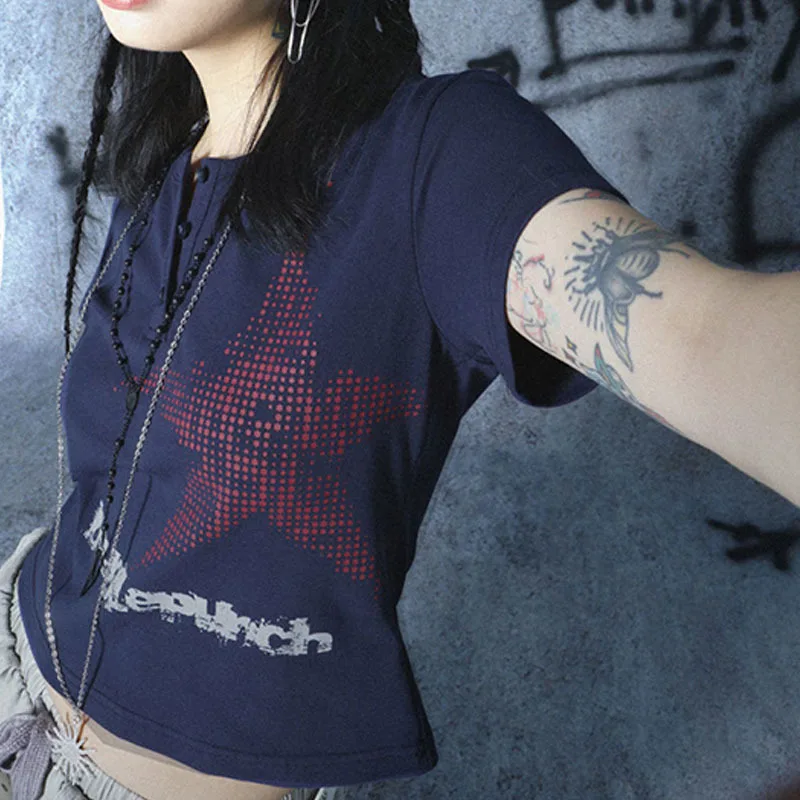 Harajuku Crop Top Japanese Style Star Pattern Round Neck Short Sleeve T Shirts Graphic Tee y2k Women Clothes Streetwear