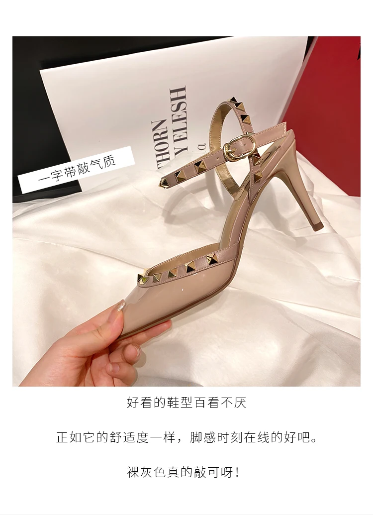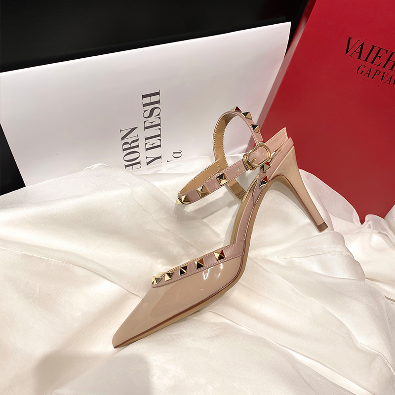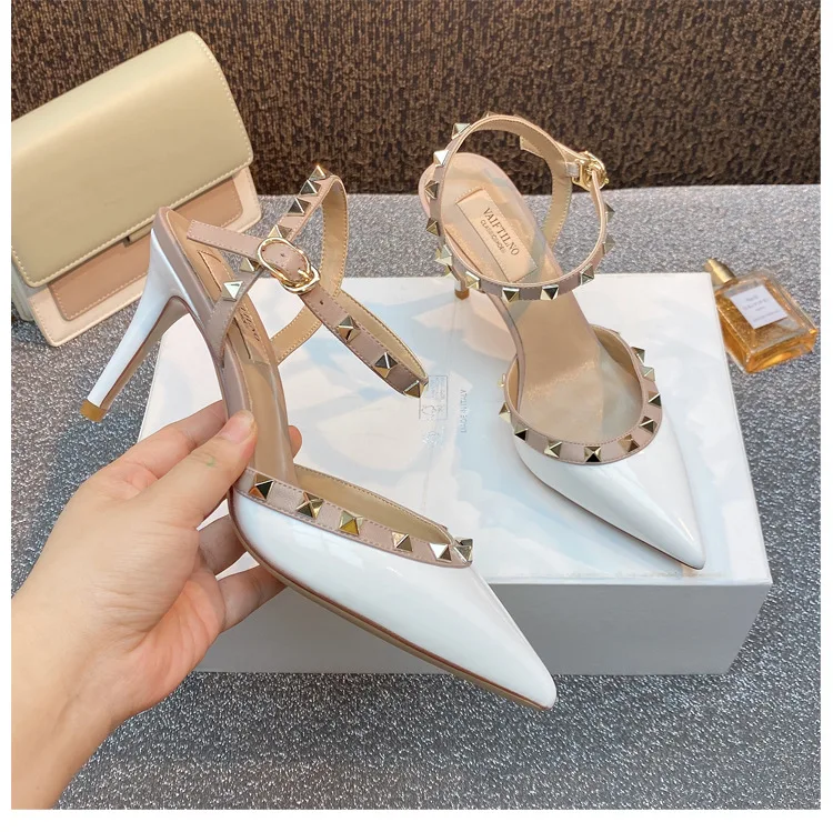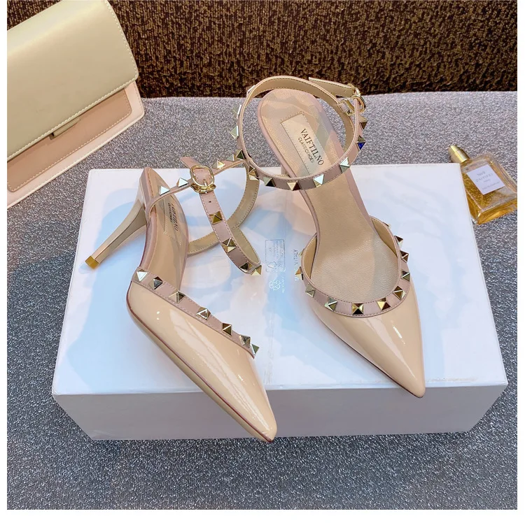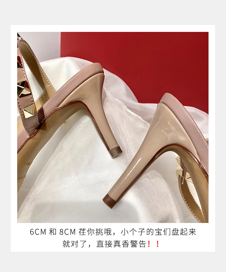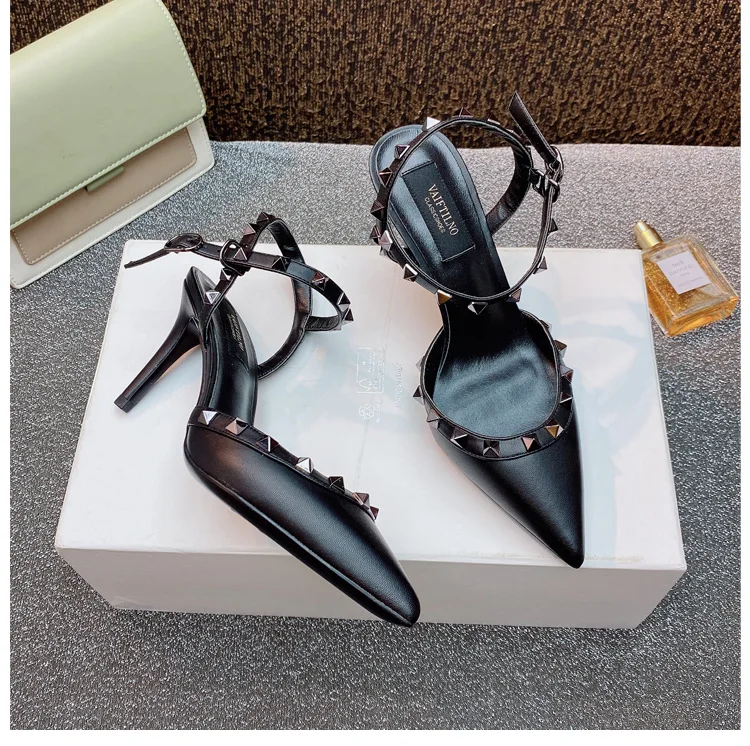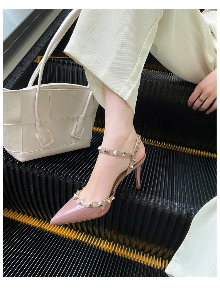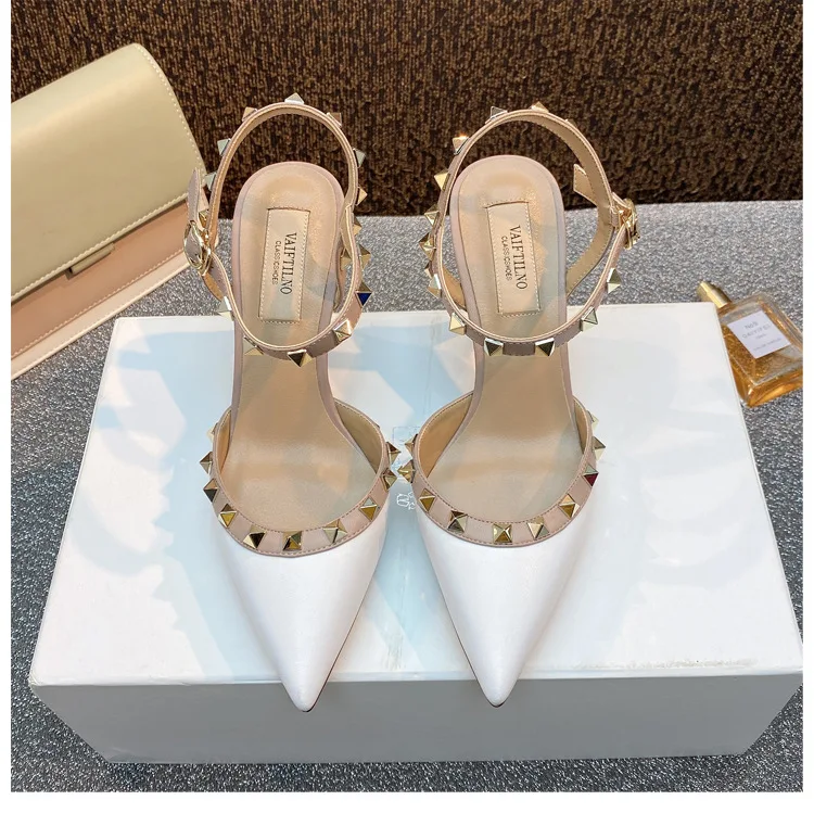 heeled sandals Summer 2025 shoes women luxury Brand Ankle Strap Slingbacks Rivets High Heels Shoes Female ladies Prom Shoes