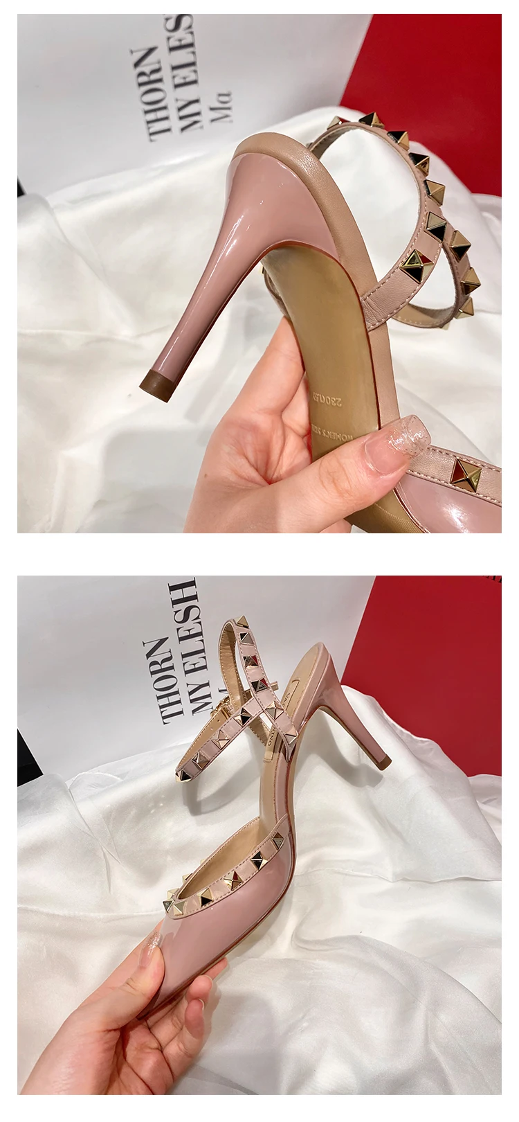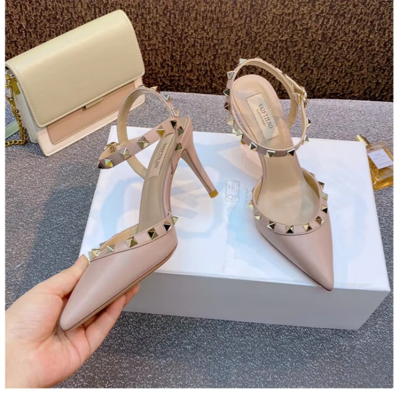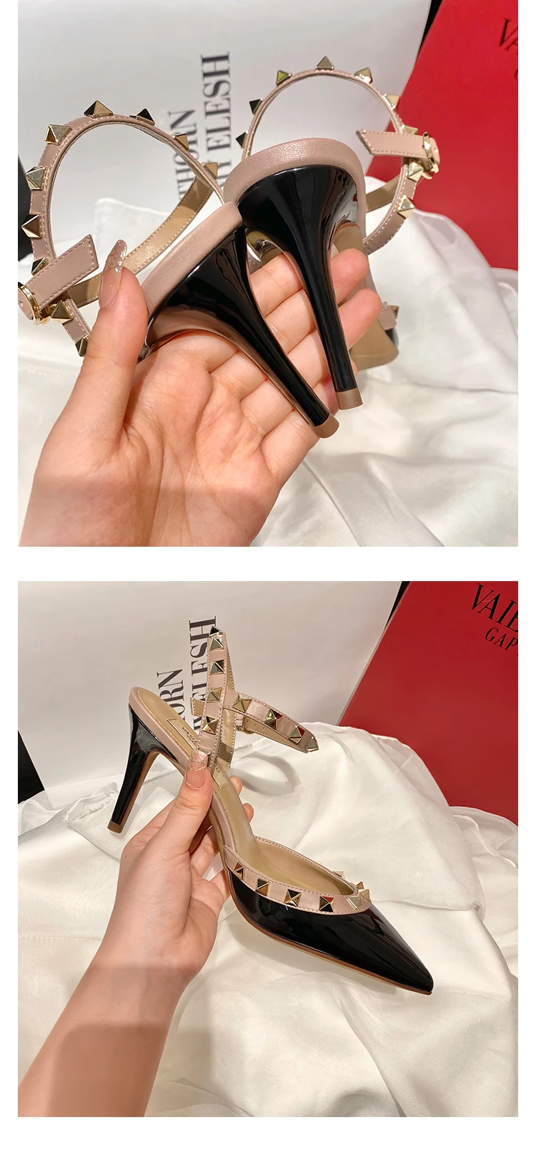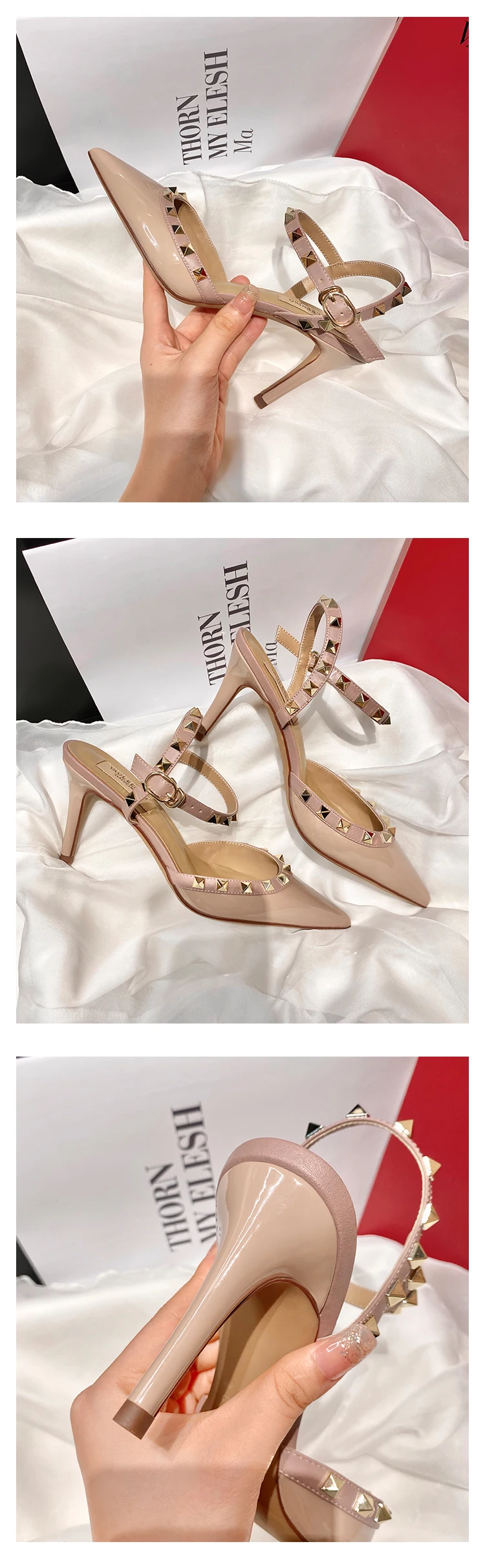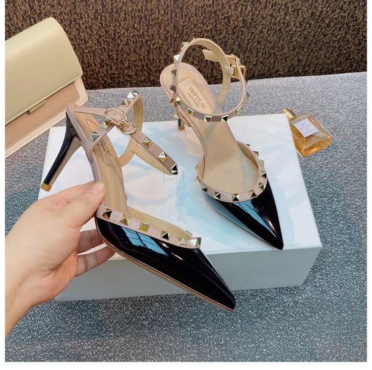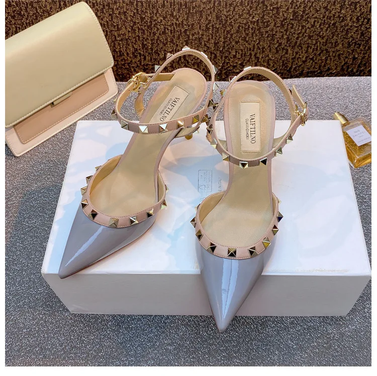 heeled sandals Summer 2025 shoes women luxury Brand Ankle Strap Slingbacks Rivets High Heels Shoes Female ladies Prom Shoes