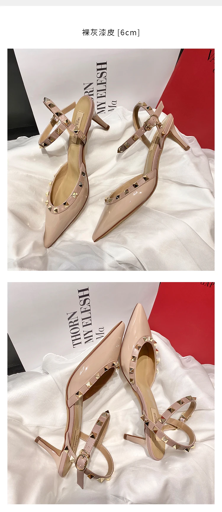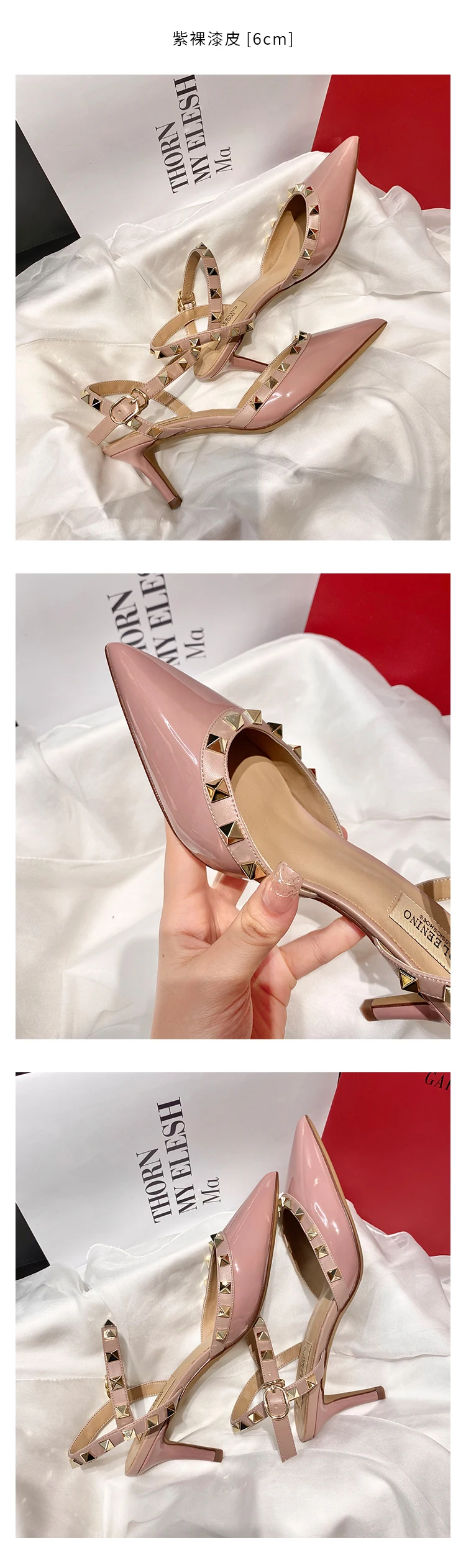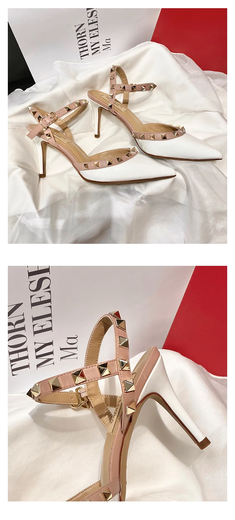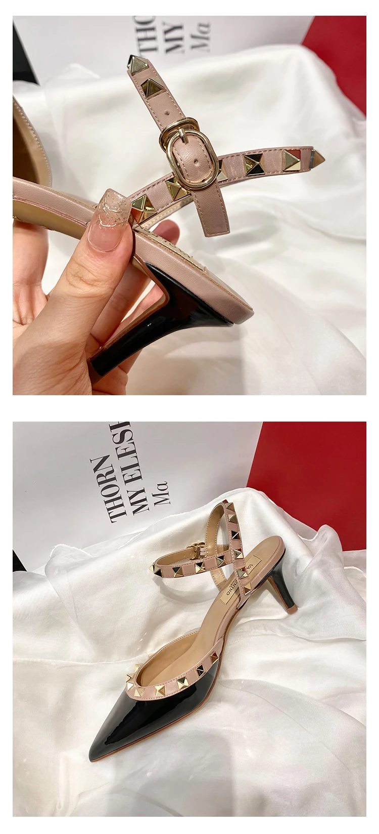 heeled sandals Summer 2025 shoes women luxury Brand Ankle Strap Slingbacks Rivets High Heels Shoes Female ladies Prom Shoes