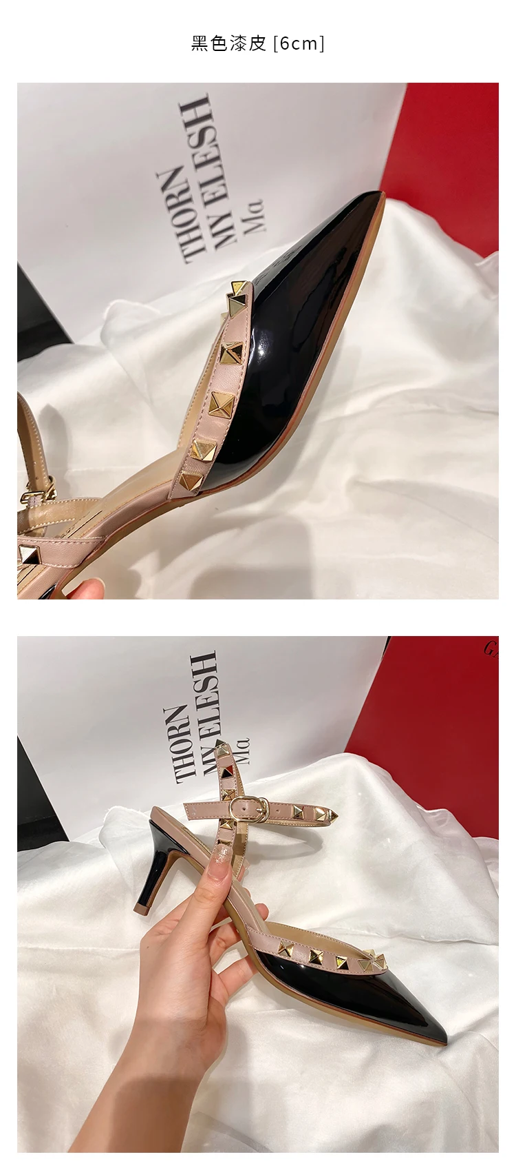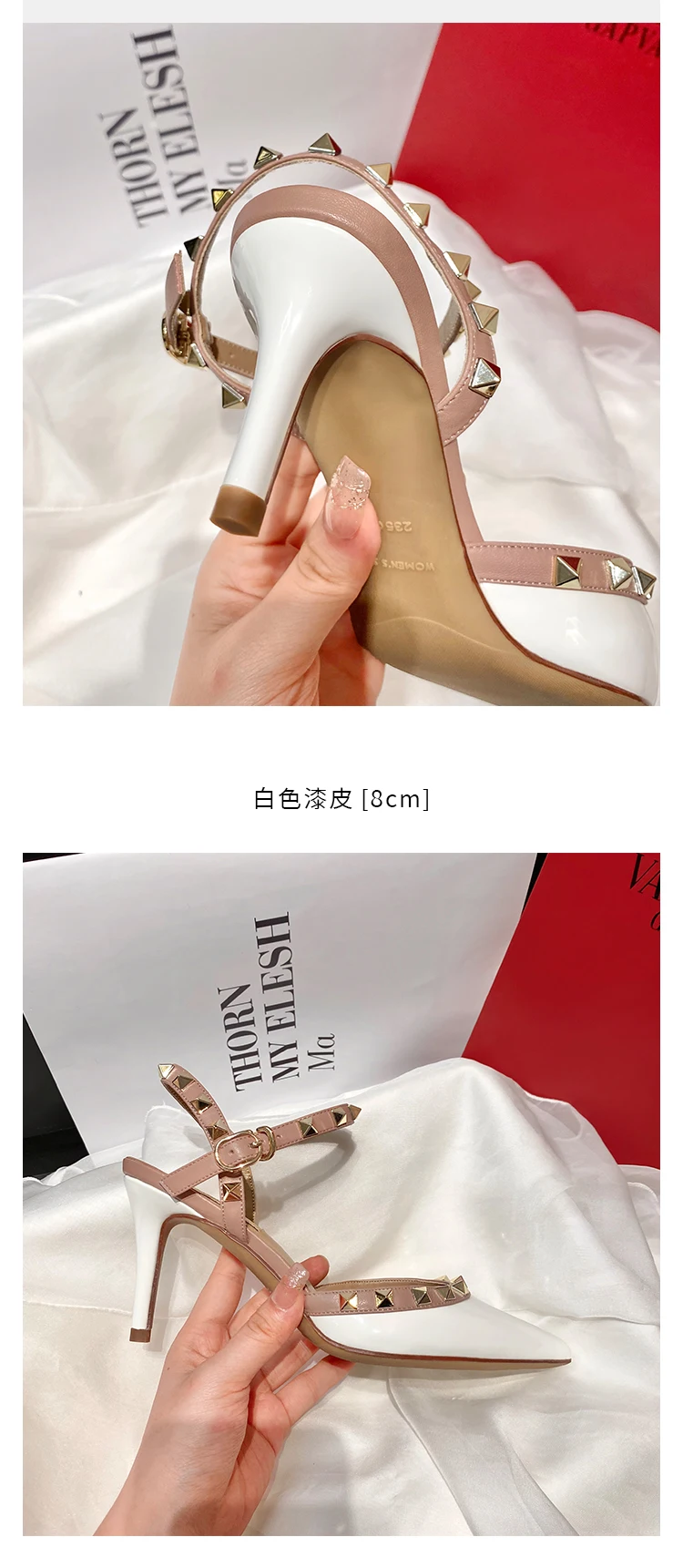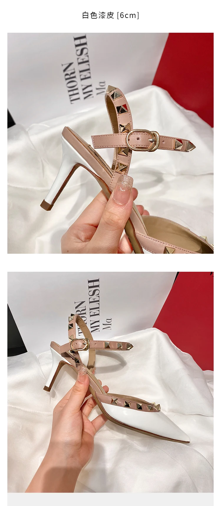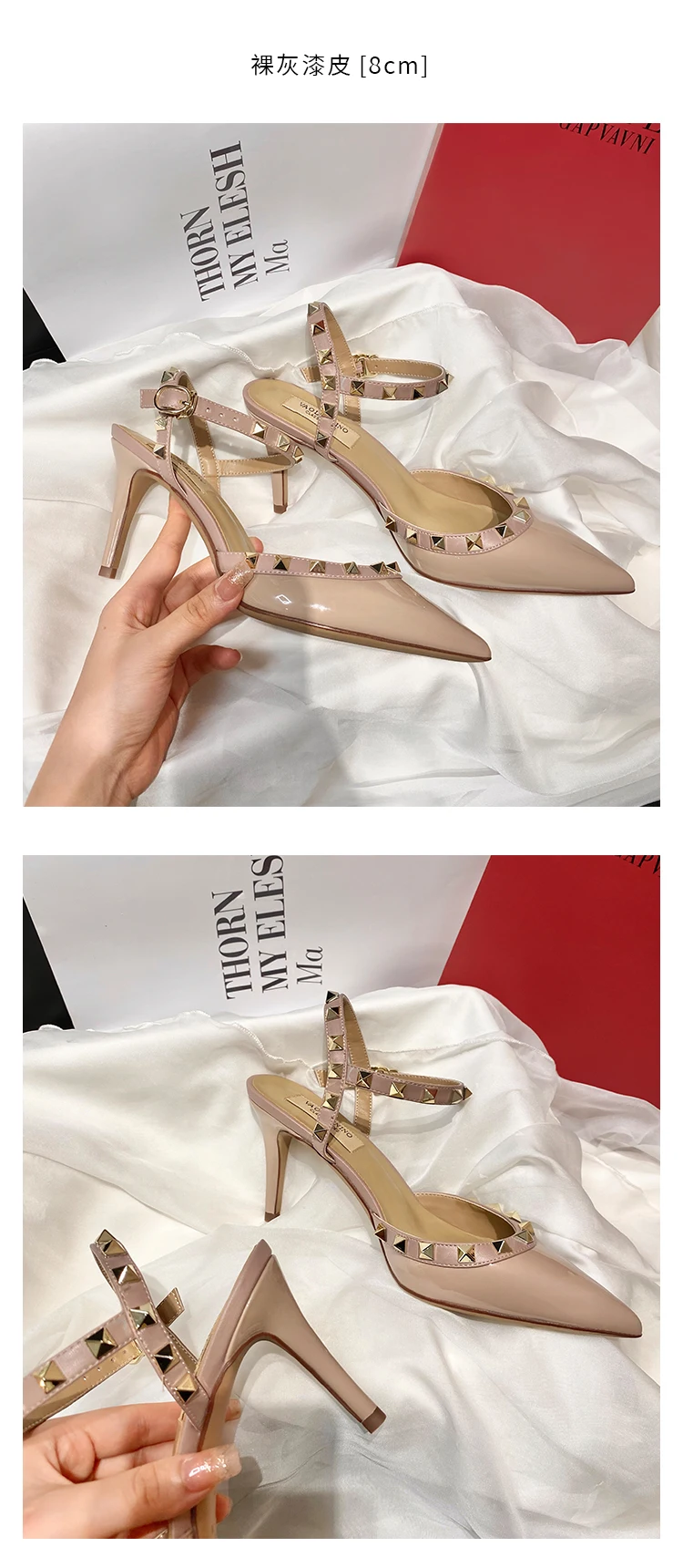 heeled sandals Summer 2025 shoes women luxury Brand Ankle Strap Slingbacks Rivets High Heels Shoes Female ladies Prom Shoes