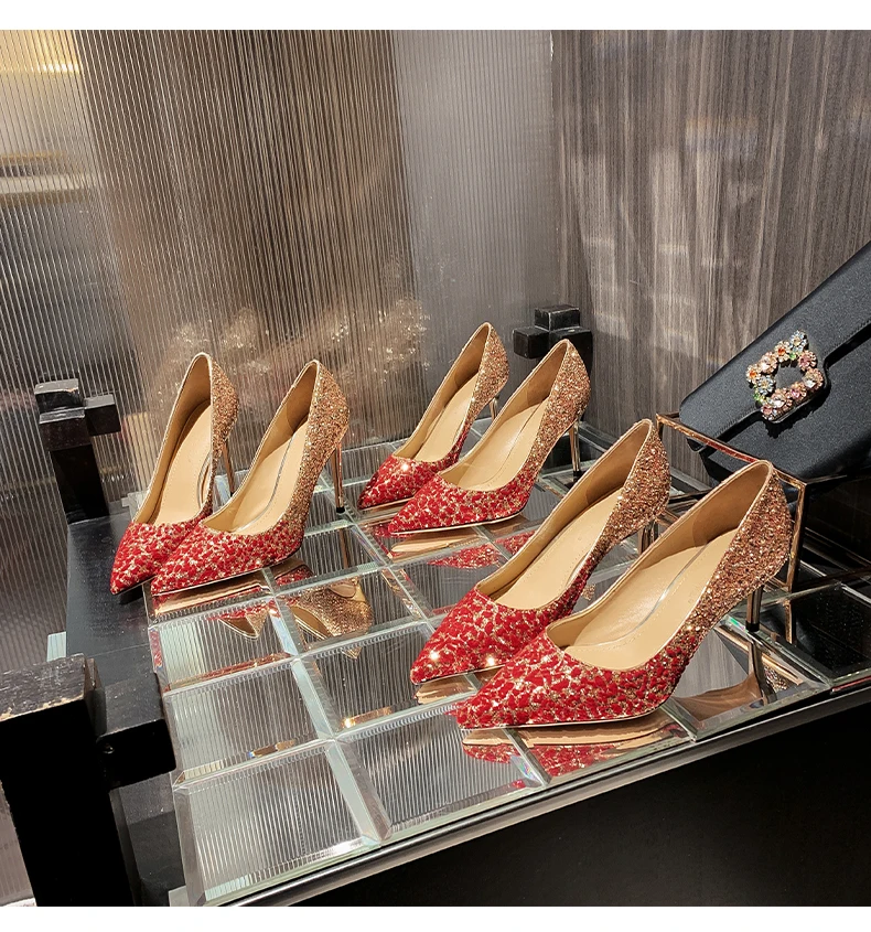 Heels for women luxury women’s High Heels Pointed Toe Glitter Red Designer Pumps Wedding Bridal Valentine Ladies shoes Women