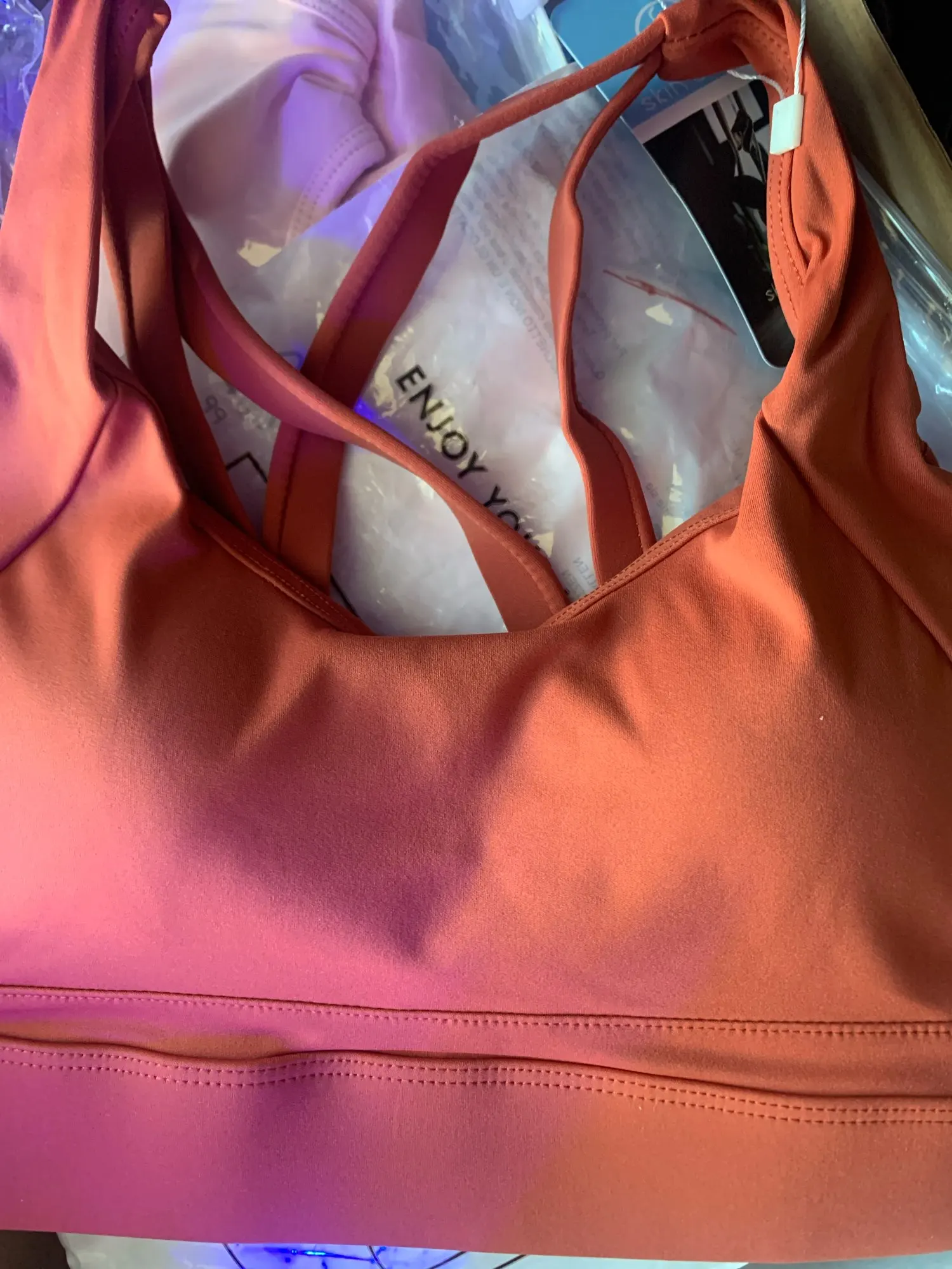 This took almost 4 months to come, (ordered back since may, and it’s september) but i guess it was worth the wait. The sports bra is padded, and cute design.