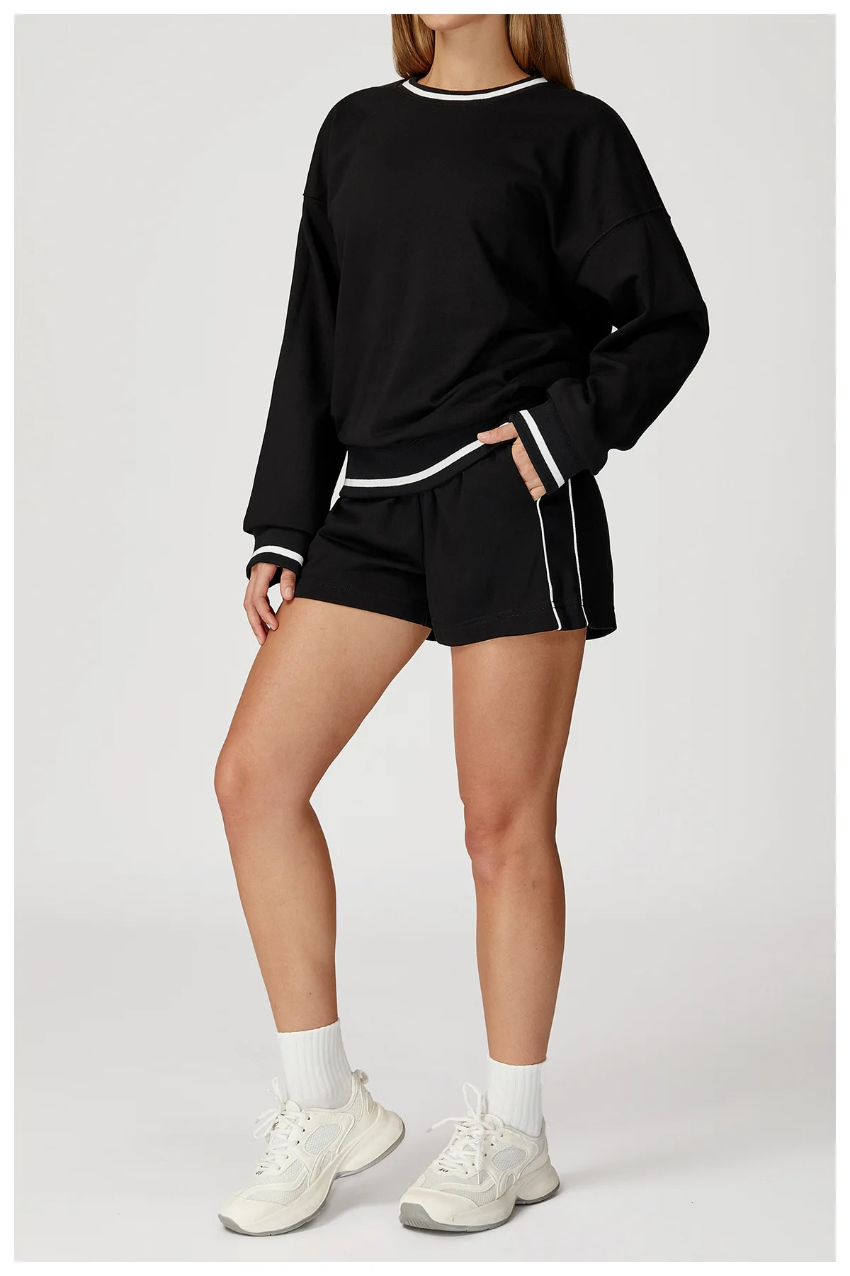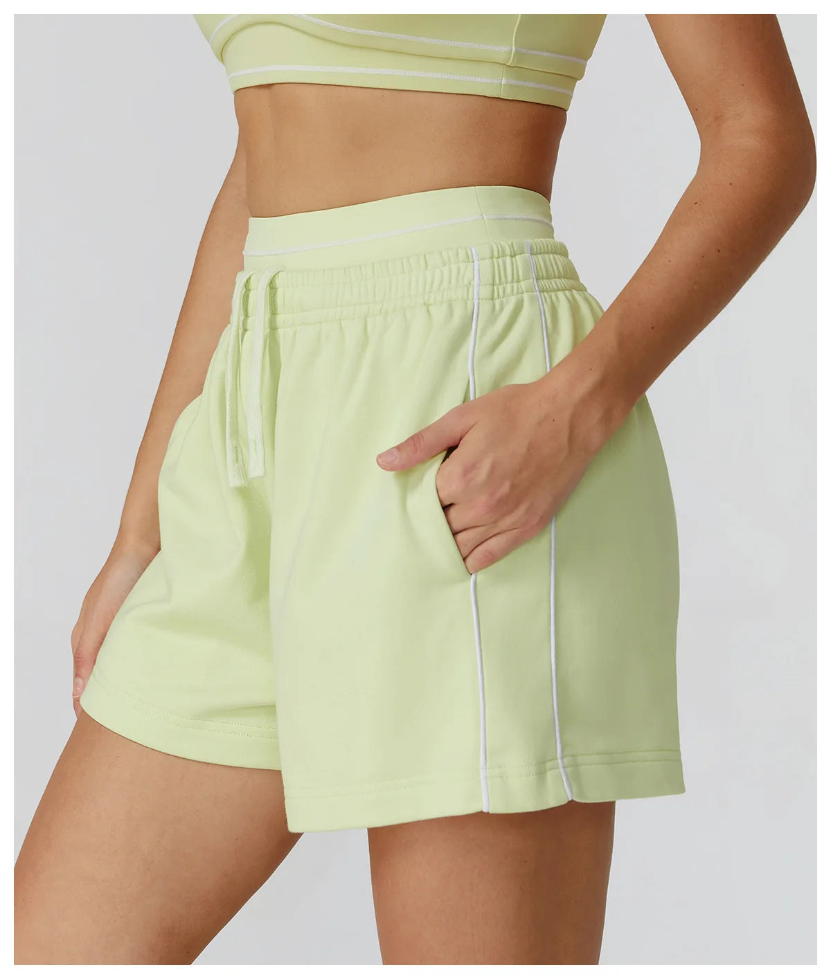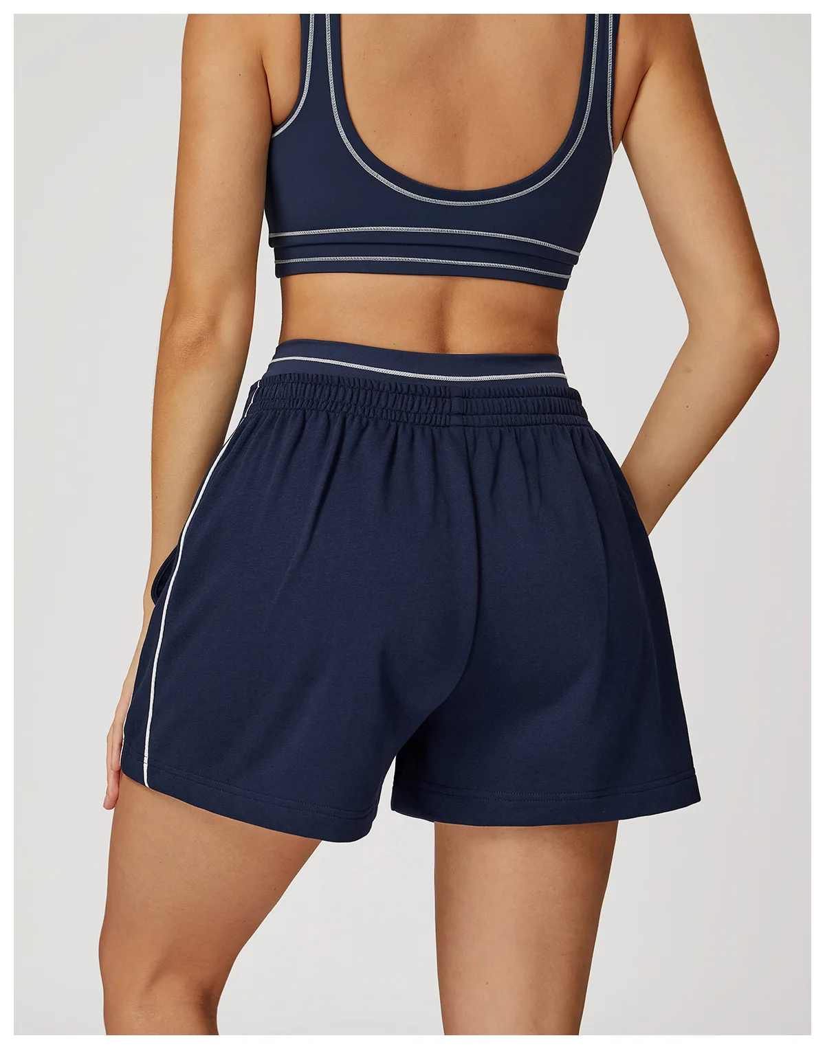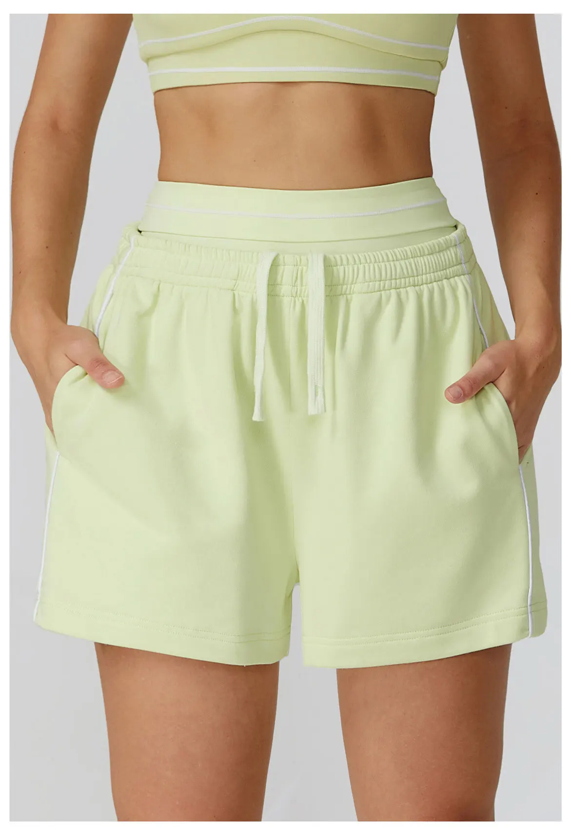 High Waisted Loose Straight Leg Pocket Sweatpants Color Blocking Sports Shorts for Women Outdoor Fitness Running Yoga Shorts