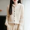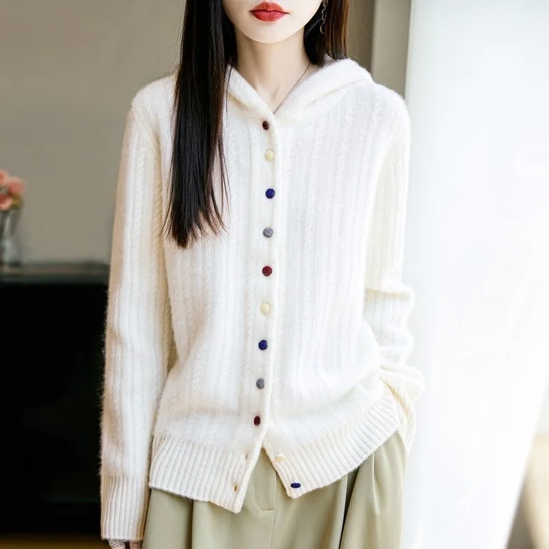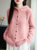 Hooded Cardigans Women 100% Wool Casual Autumn Winter Thick Warm Soft Korean Fashion Outerwear Knitted Single Breasted Sweater