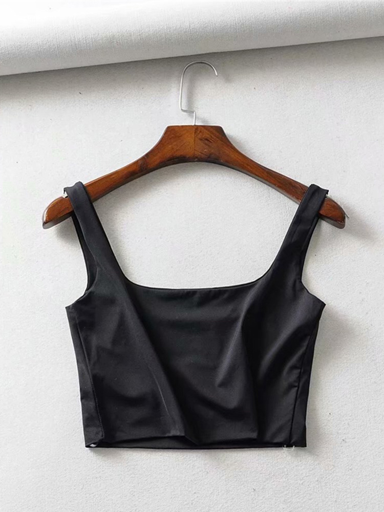 Hot Sale 2023 Summer Women Sexy Sleeveless Tops Fashion Short Square Collar Tank Tops 4 Colors