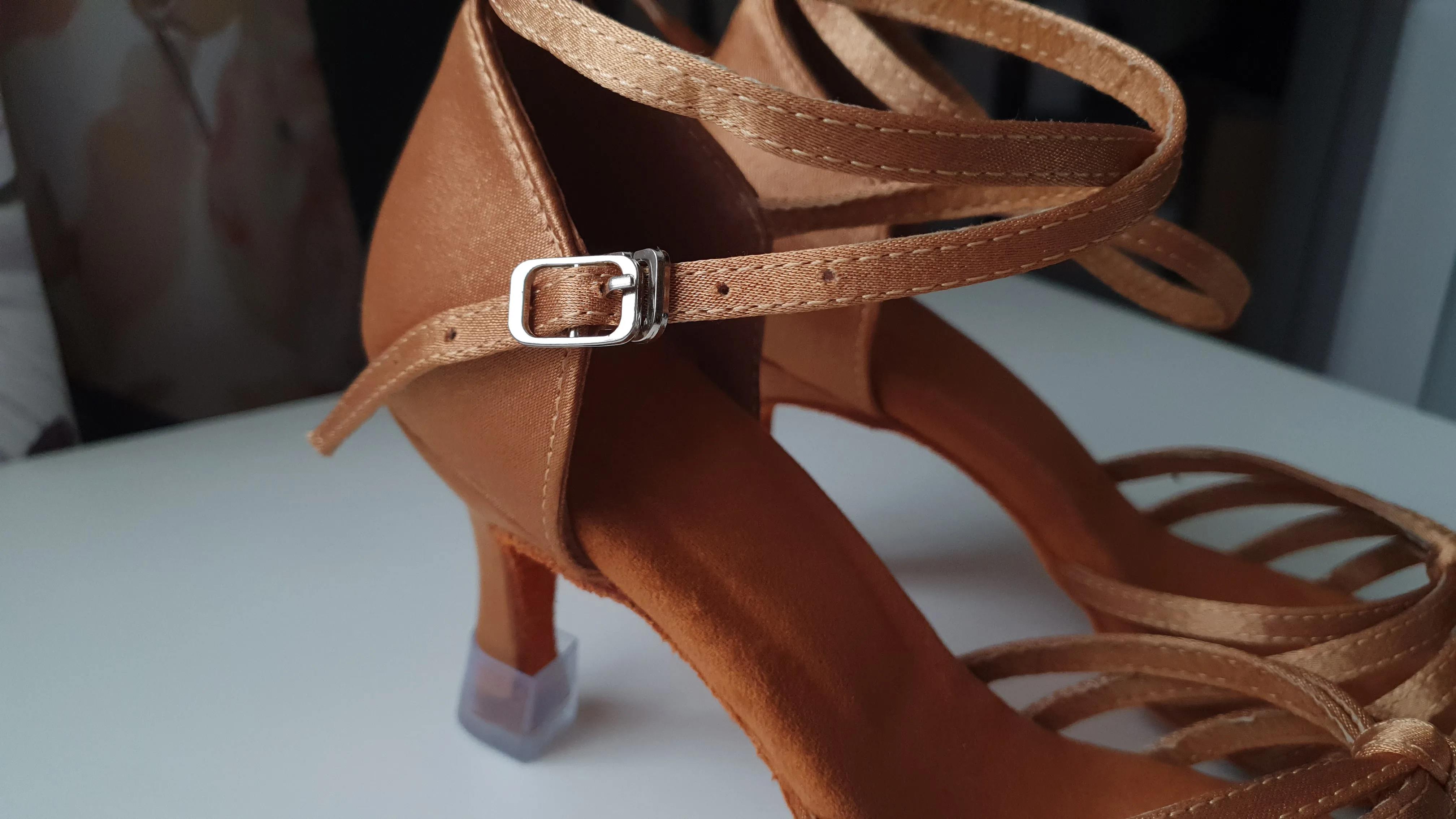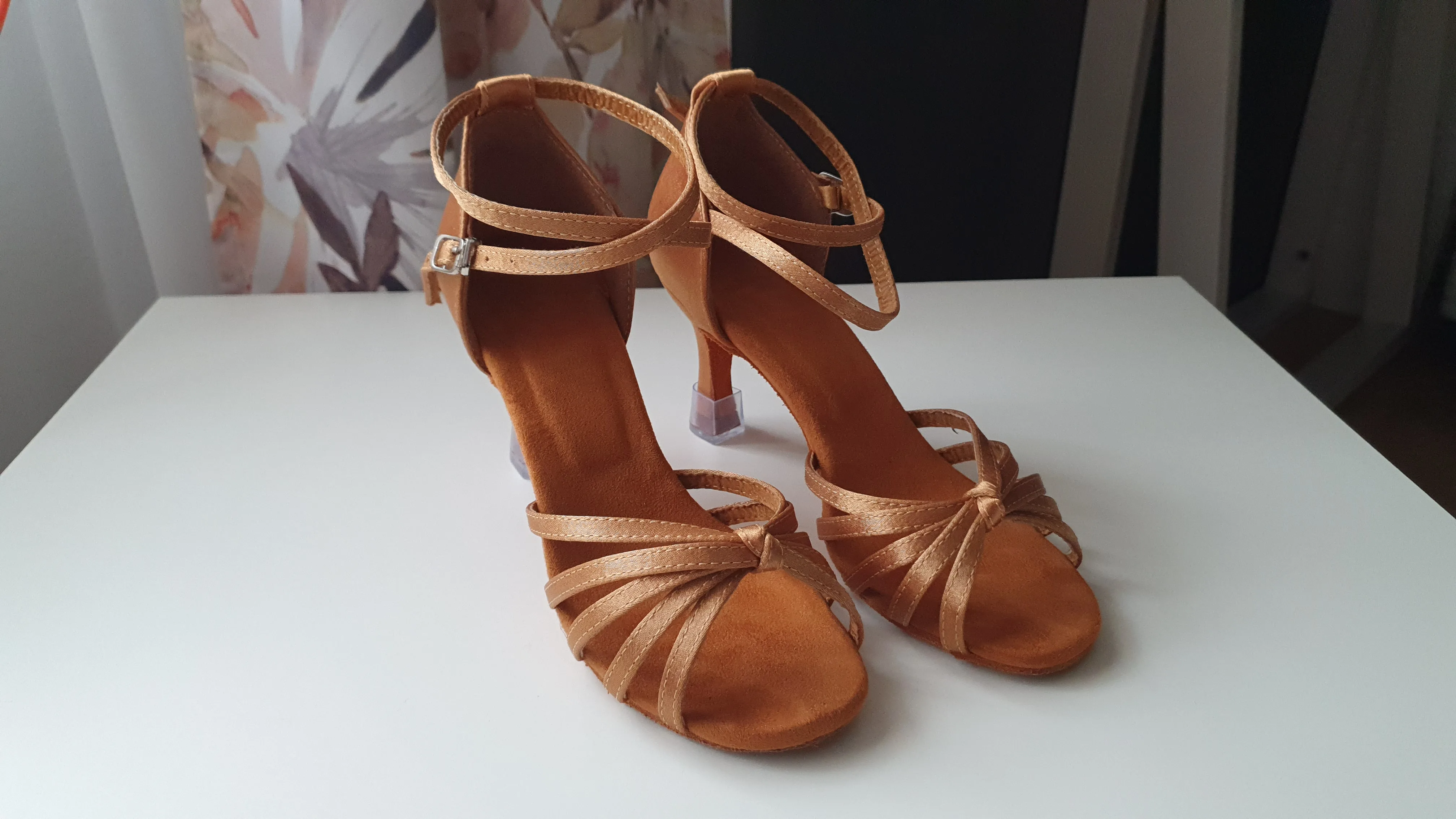 The shoes are exactly as in the picture, the quality of workmanship is very high. They don't resist much more expensive dance shoes. The size is consistent with the given table. However, it is worth paying attention to the thickness of the foot - the shoes are narrow enough. Very fast delivery from this seller (shipment the next day)!