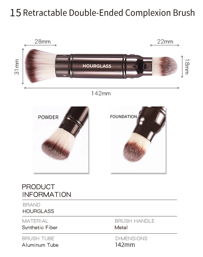 Hourglass Makeup Brush- No.15 Retractable Double-Ended Complexion Brush Soft Fiber Hair Fashion Design Single Face Brush