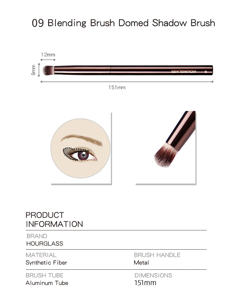 Hourglass Makeup Brush- No.9 Domed Shadow Brush Soft Fiber Hair Blending Eyeshadow Fashion Design Single Eye Brush