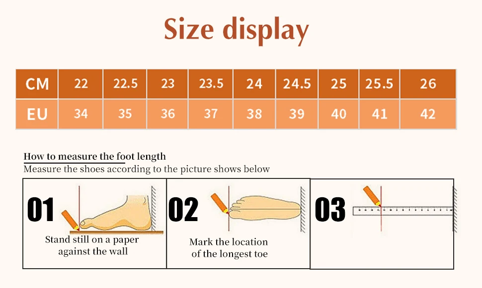Size Tip:Please Measure your feet length before place the order, then refer to the size chart to choose the size according to your feet length.