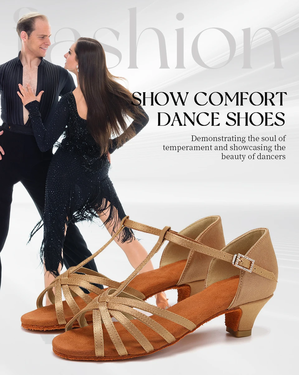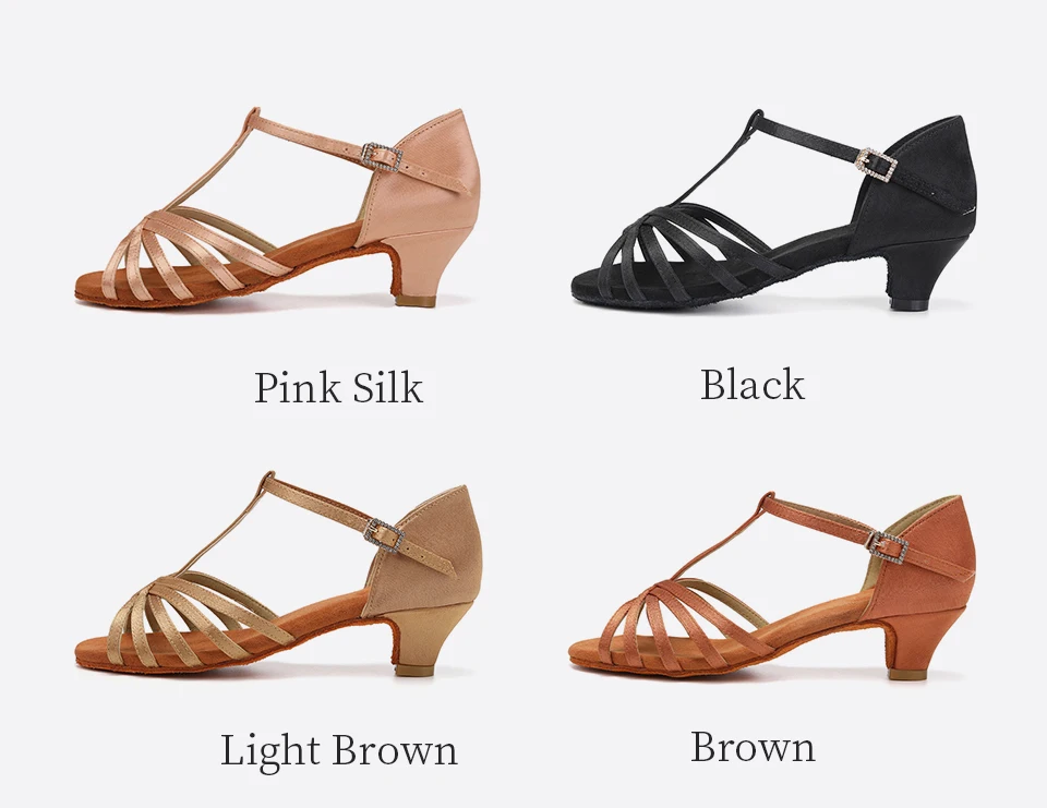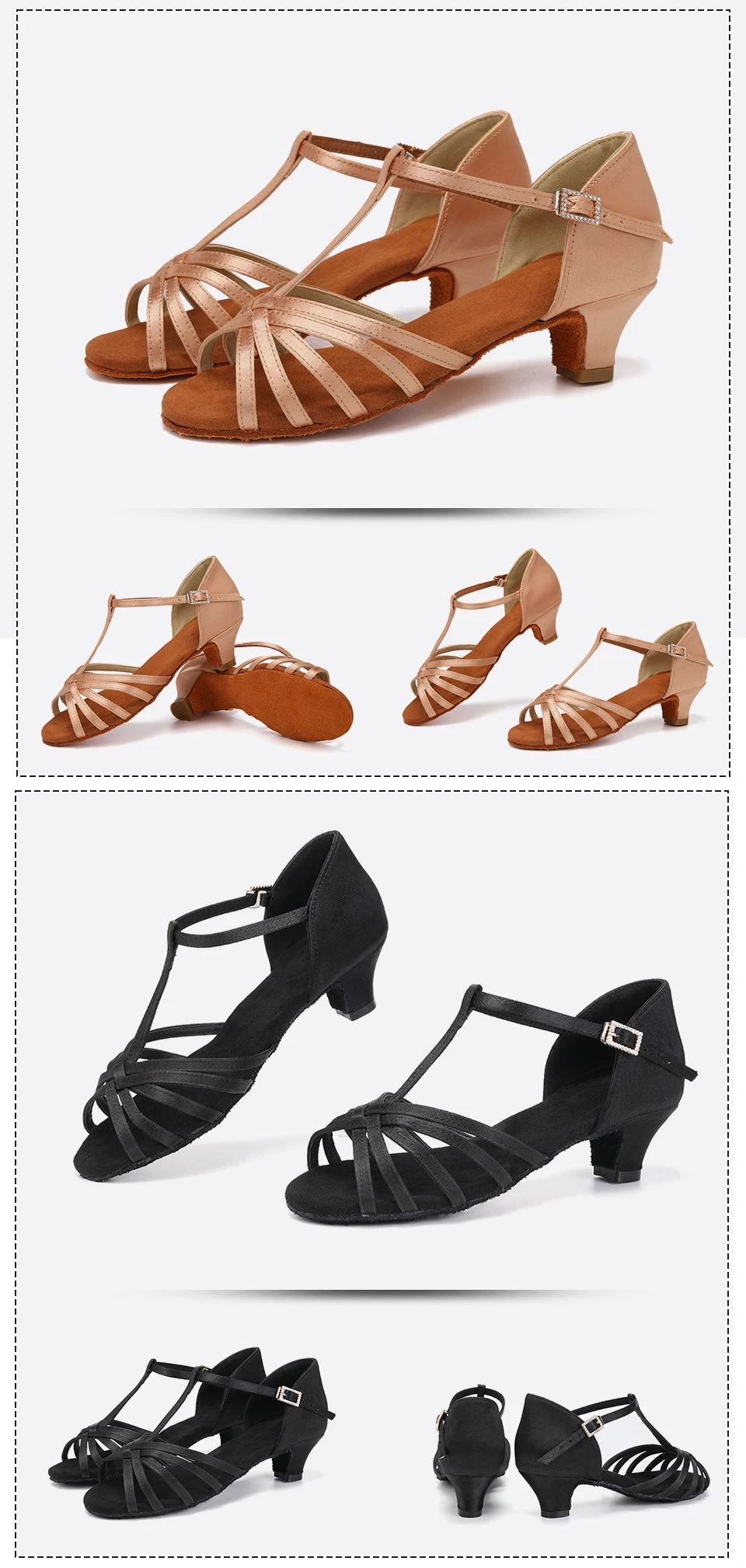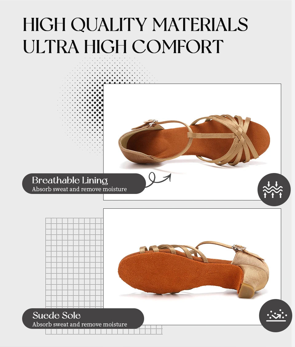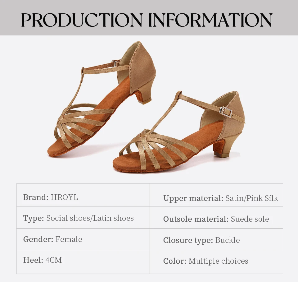 HROYL Ballroom Dance Shoes for Girls Women’s T-belt Latin Dance Shoes Elegant Waltz Samba Tango Soft Low Heel Sandals