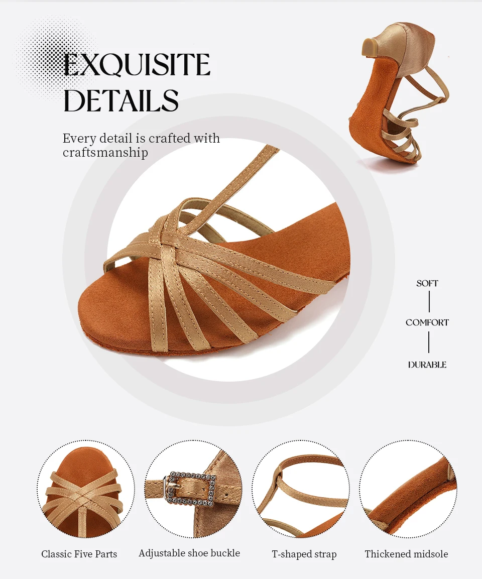 This Ballroom dance shoes have a thin suede sole that allows the shoes to glide across the floor with just the right amount of grip. Dance shoes are also flexible.The suede sole gives you the right amount of slip and traction so that you can feel more balanced and have more control when turning and moving around the dance floor.
