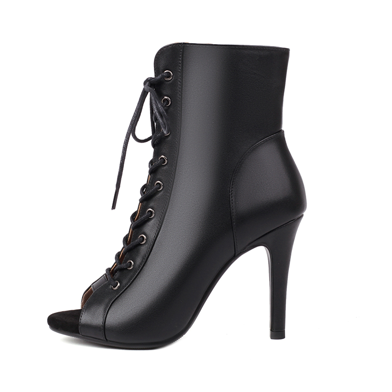 HROYL Ballroom Dance Shoes Woman Lace-up Fish Mouth Dance Sandals Women Summer Stiletto Short Boots Latin Jazz Dance High Heels
